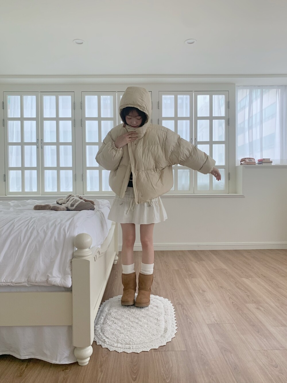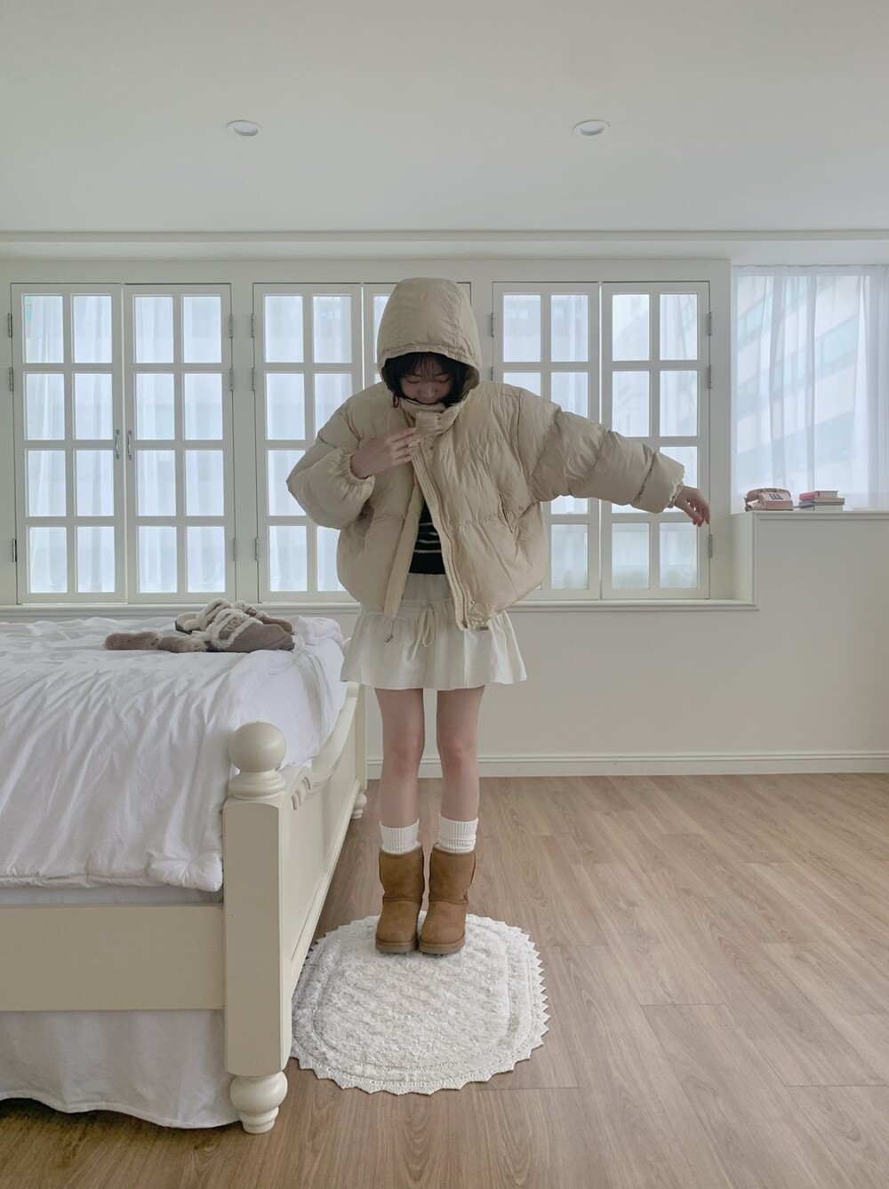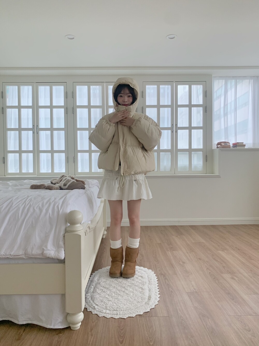 귀엽고 사랑스러운 스타일의 후드 푸퍼 패딩을 소개해요 ♡