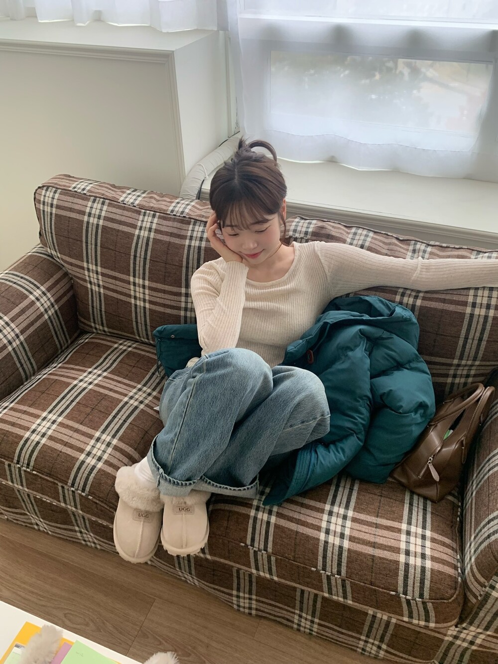 (성숙한 느낌의 코디는 *브라운/블랙컬러* 를 확인해보시고, 한 층 데일리하고 캐주얼한 코디로는 *버터/청록* 컬러를 확인해보세요!)