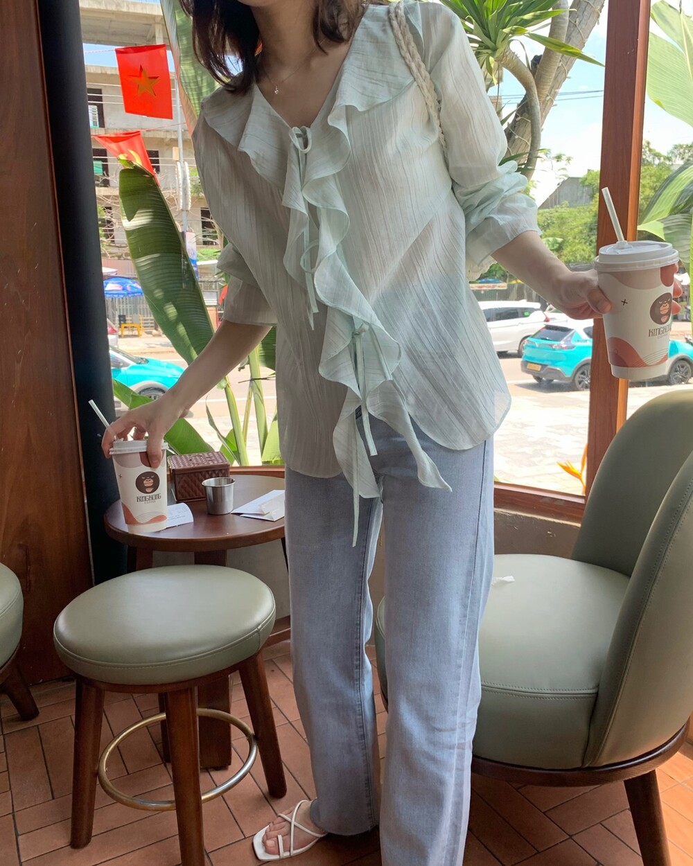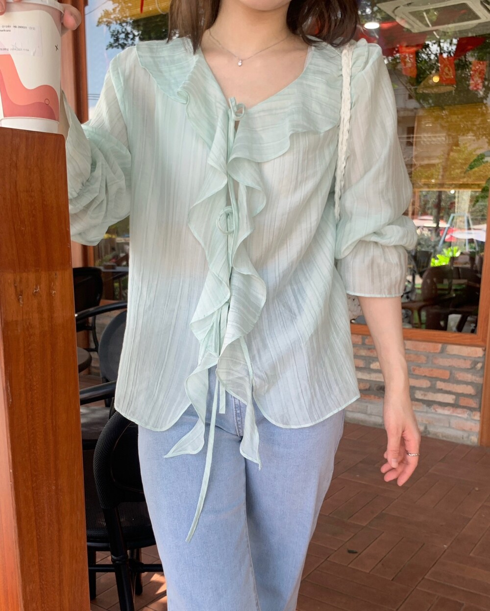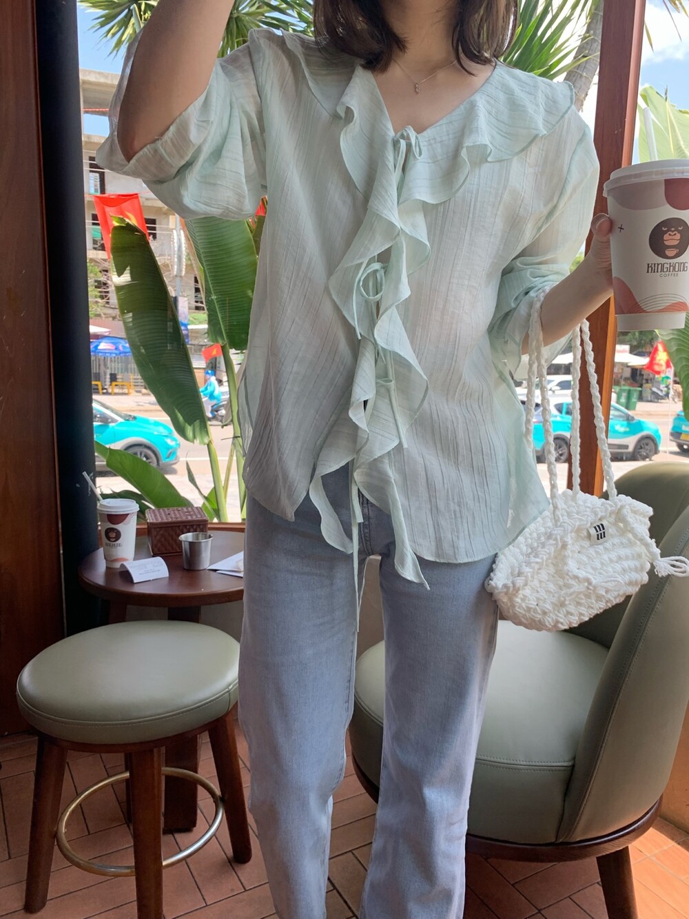 쾌적하고 시원하게 착용하실 수 있는 러플 블라우스인데요 (๓´˘`๓)♡