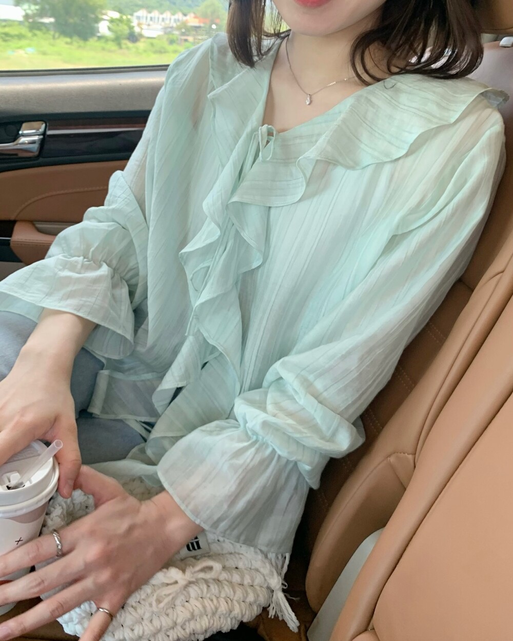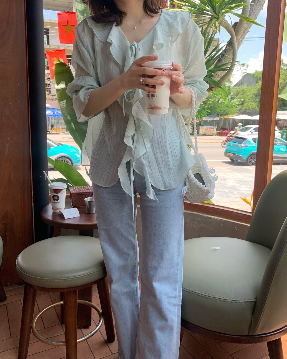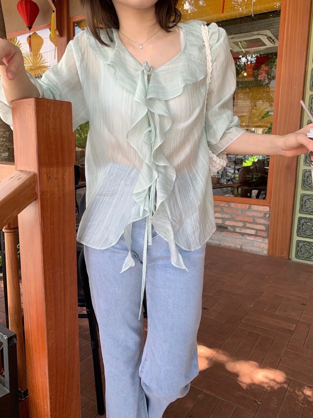쾌적하고 시원하게 착용하실 수 있는 러플 블라우스인데요 (๓´˘`๓)♡