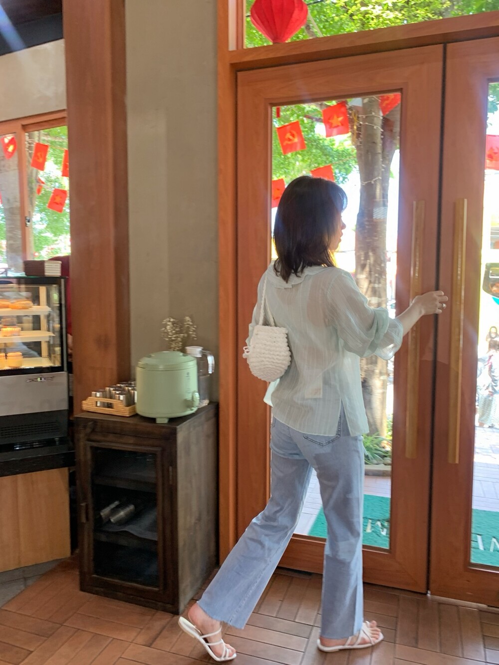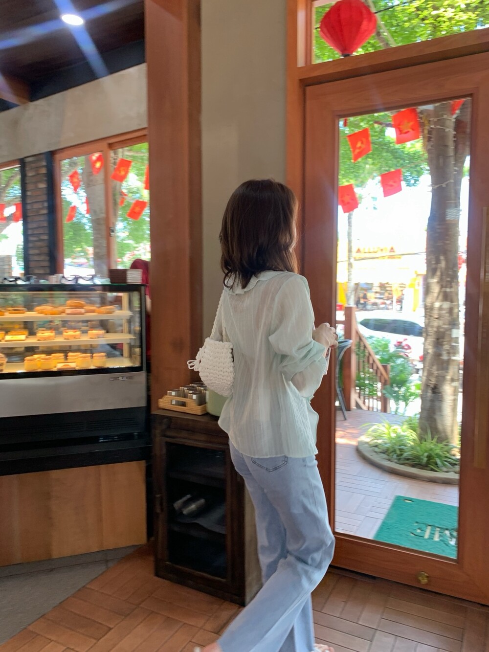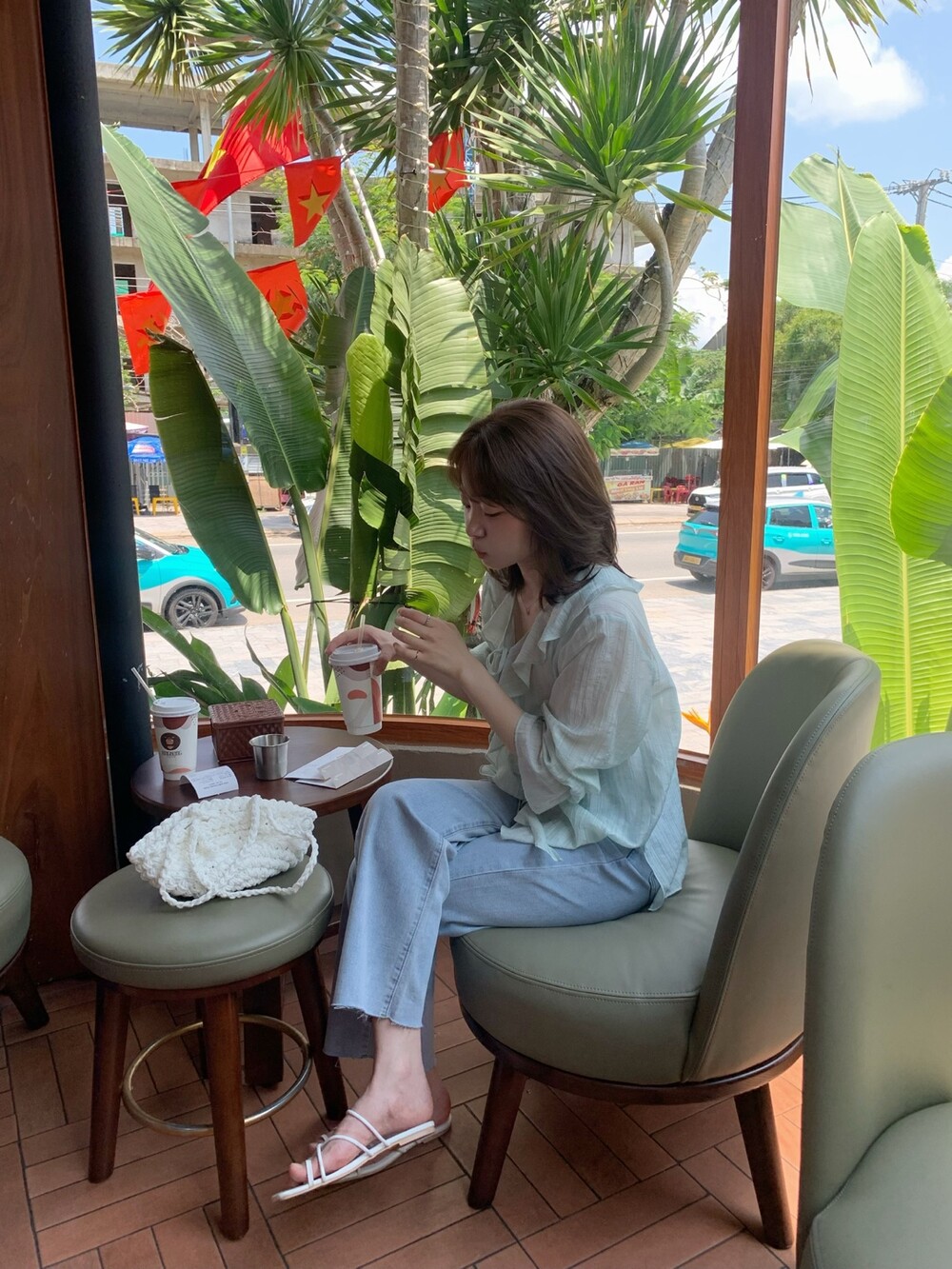 여름철 살안타템은 주로 린넨 긴팔/가디건 혹은 니트류가 많은데