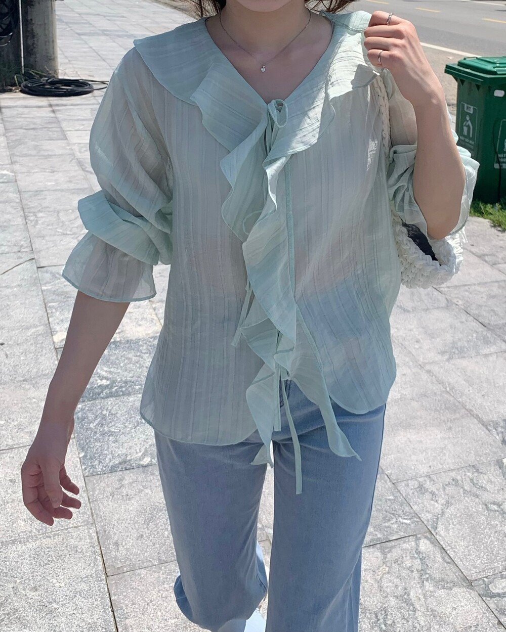 바람결 같이 살랑이는 실루엣의 썸머 프릴 블라우스를 소개해요!