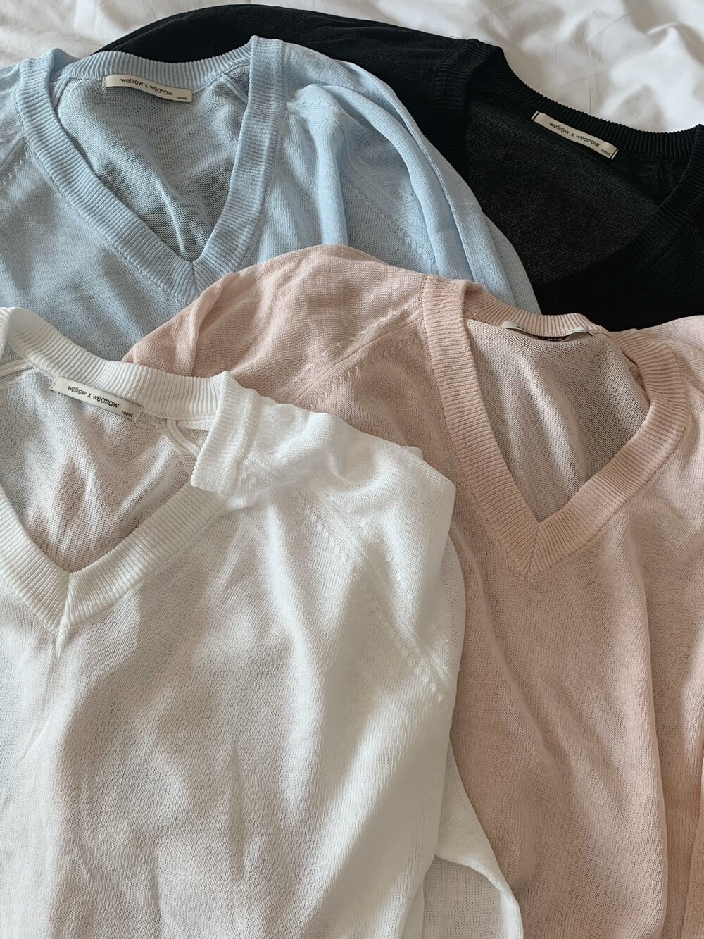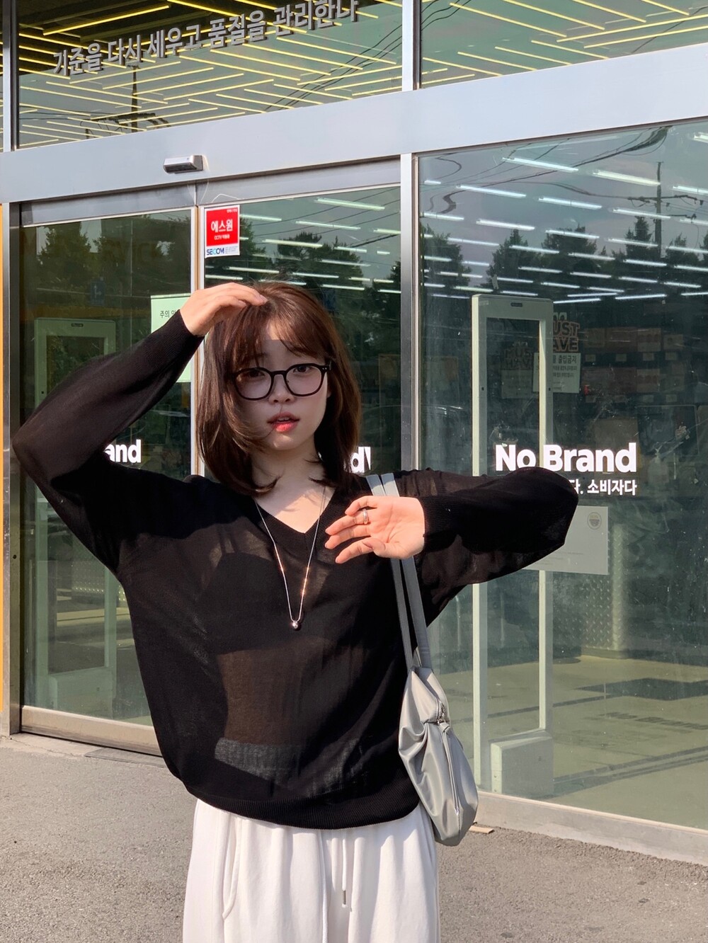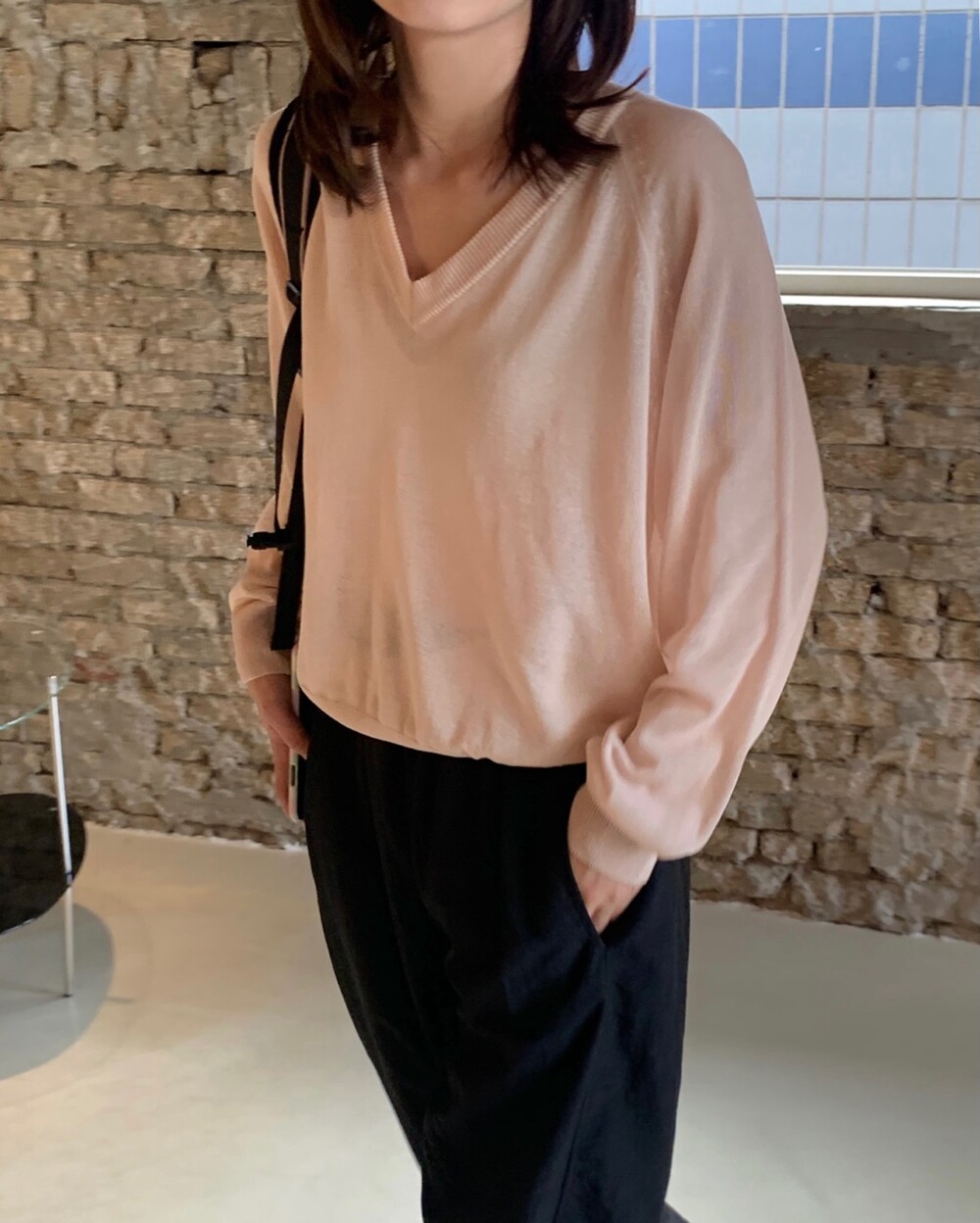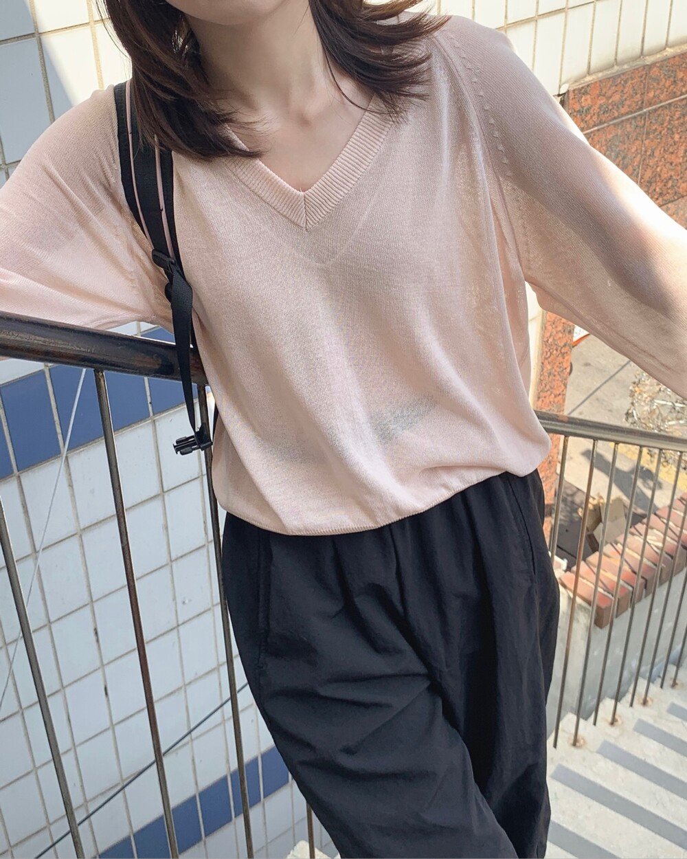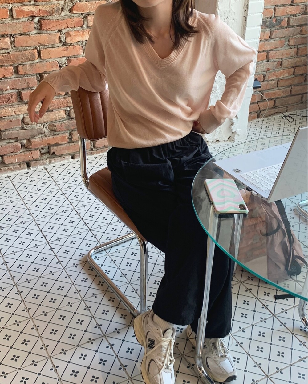 적당한 브이넥으로 시원하게 터 준 넥라인 덕분에, 니트라고 해도 절대