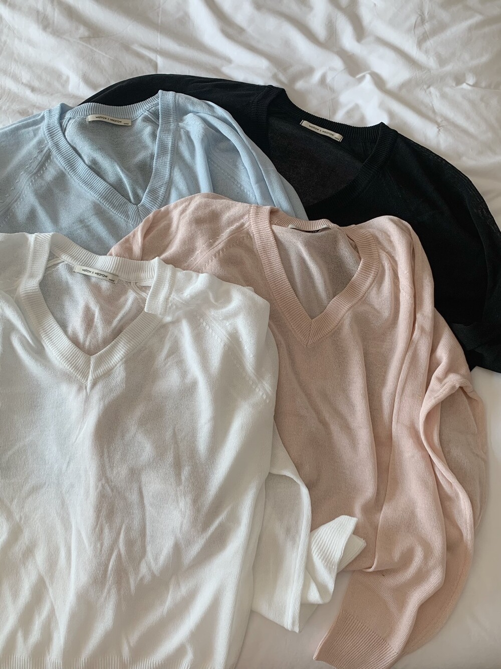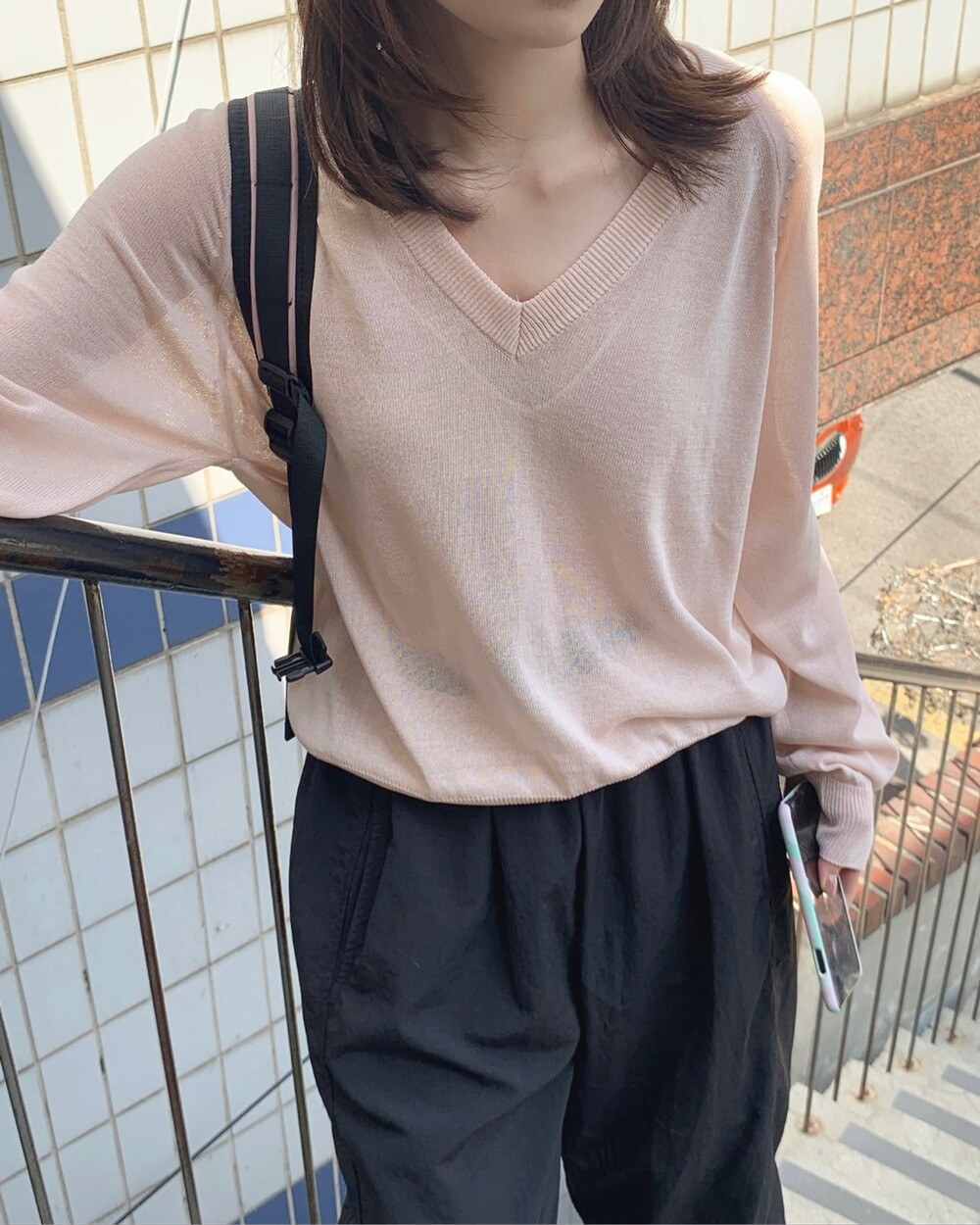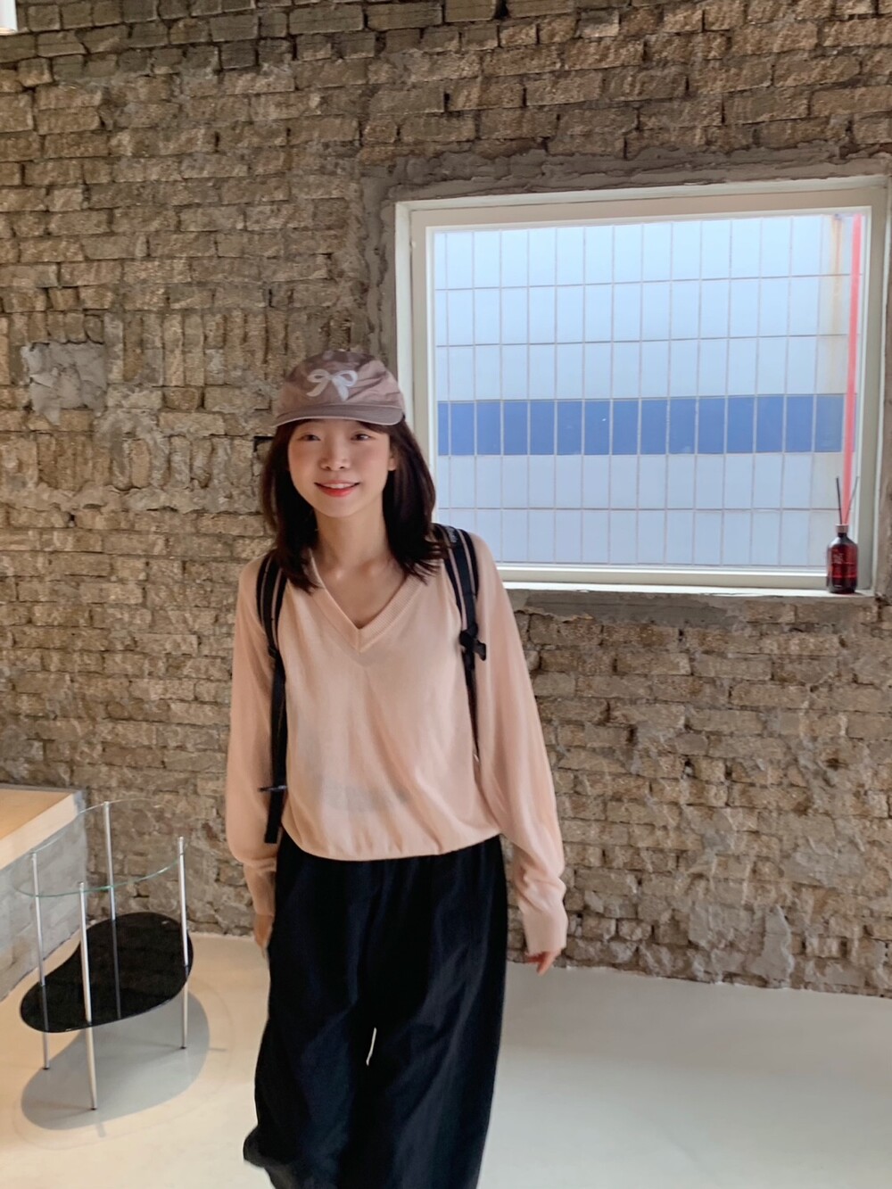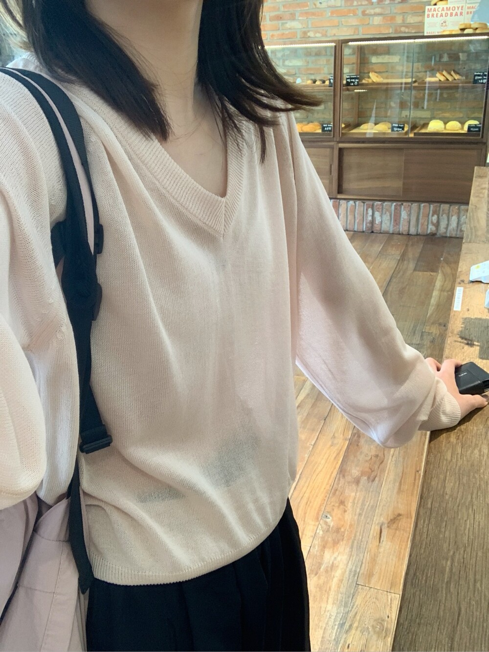 적당한 브이넥으로 시원하게 터 준 넥라인 덕분에, 니트라고 해도 절대