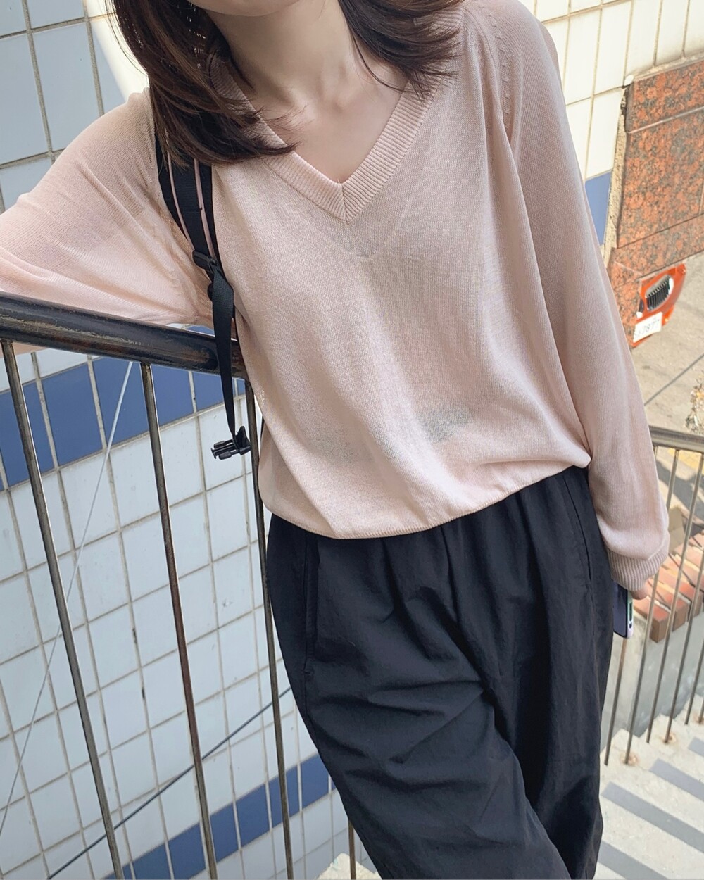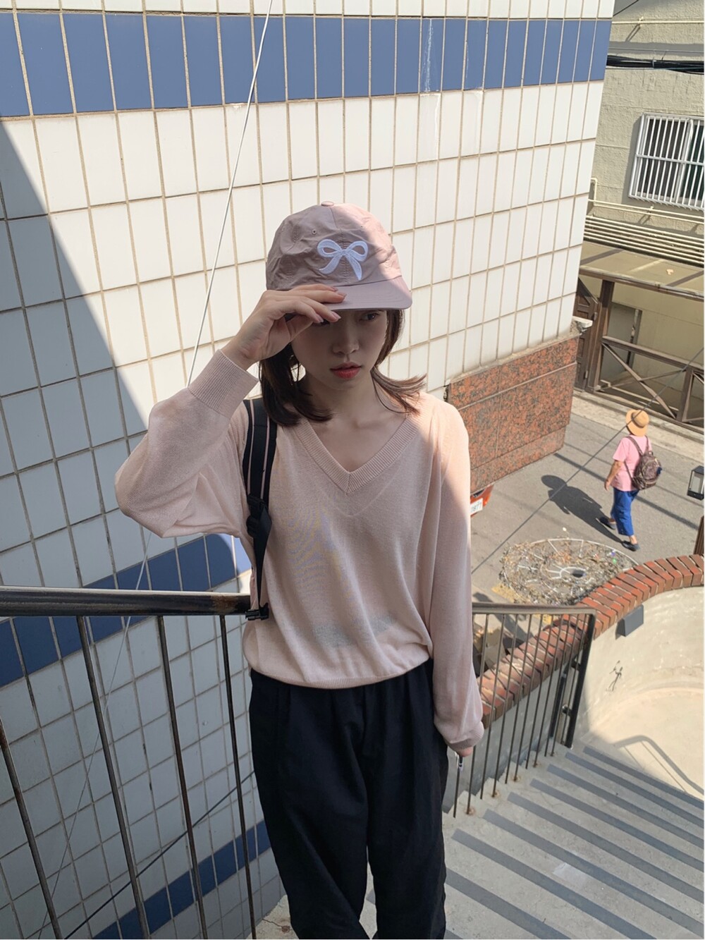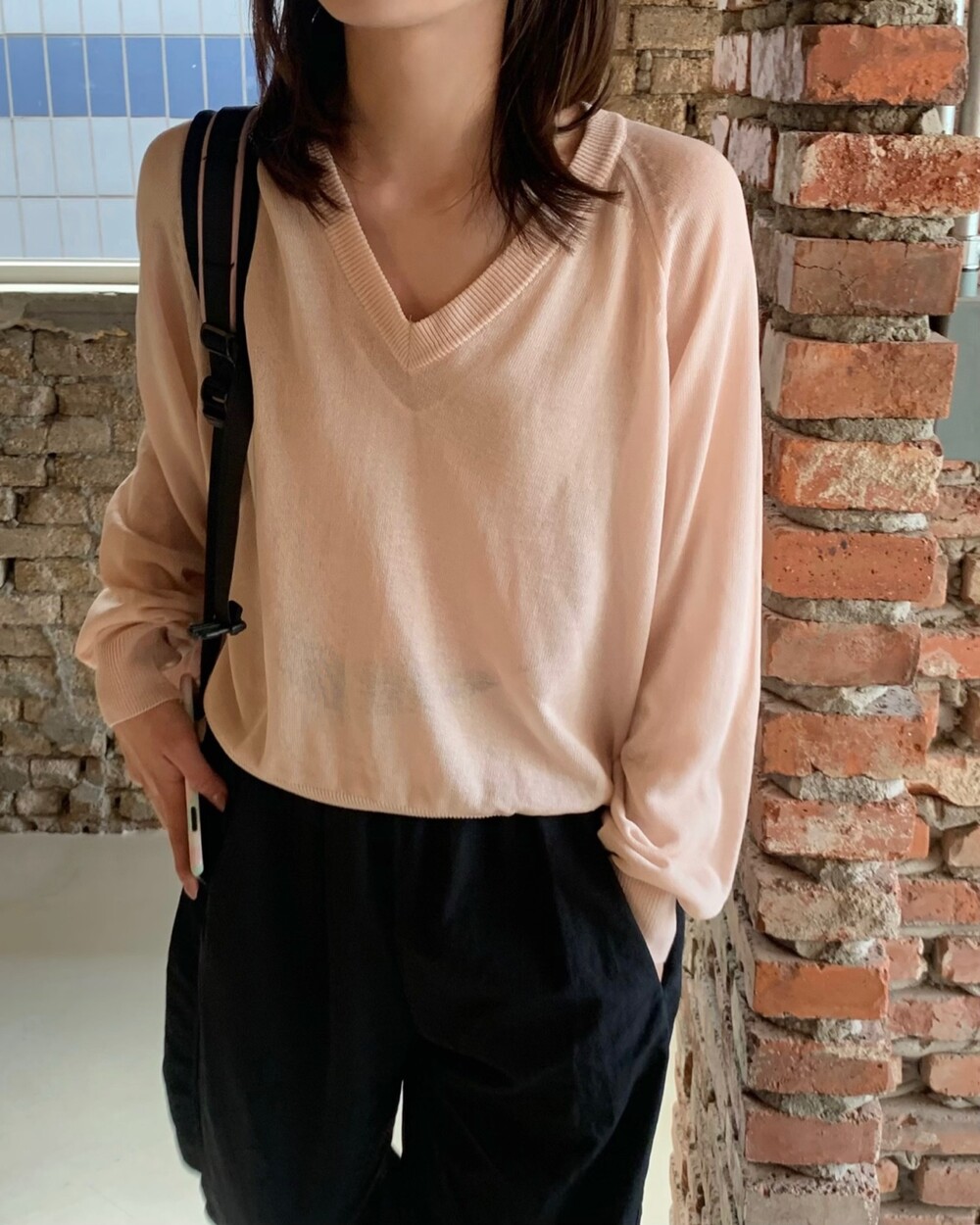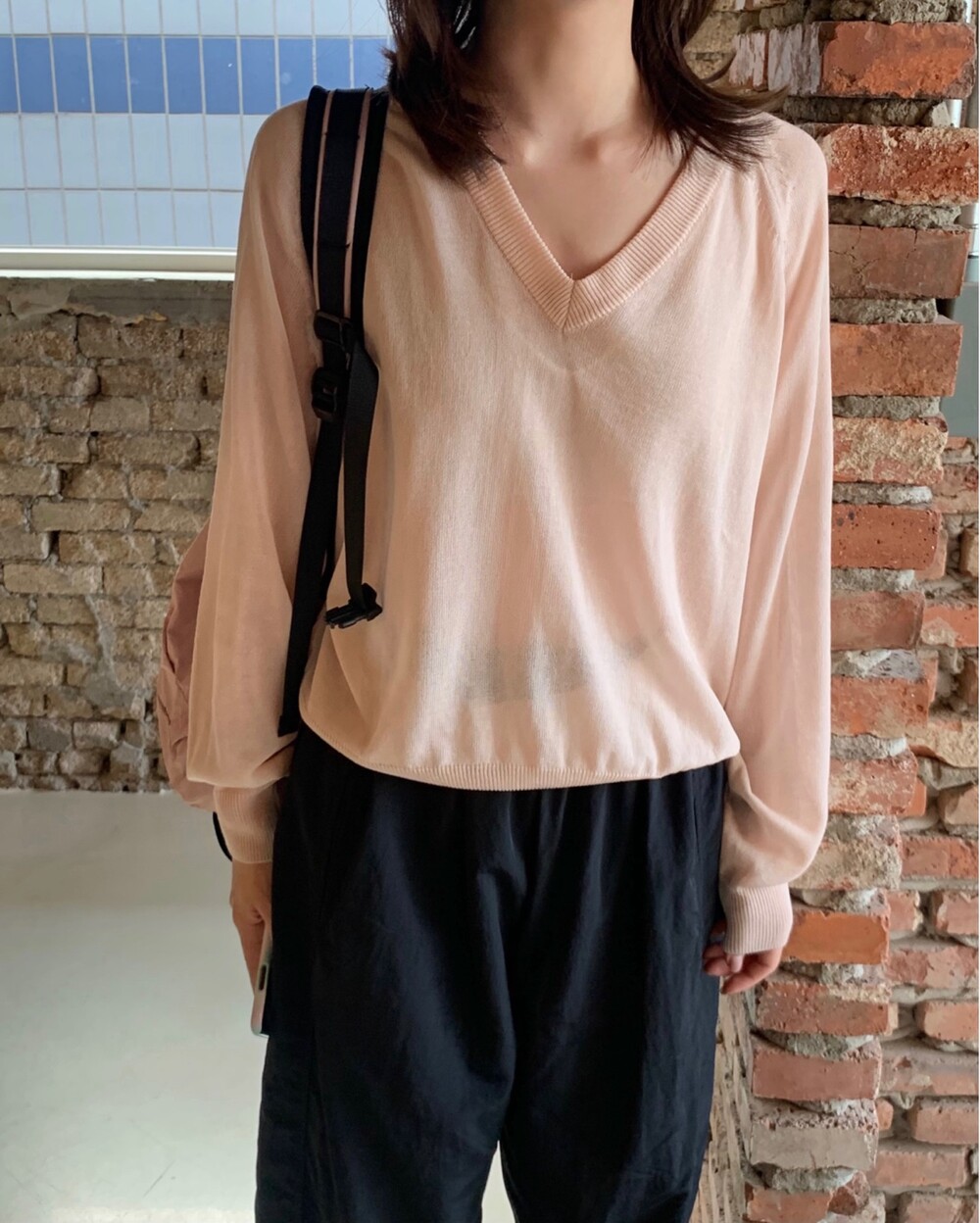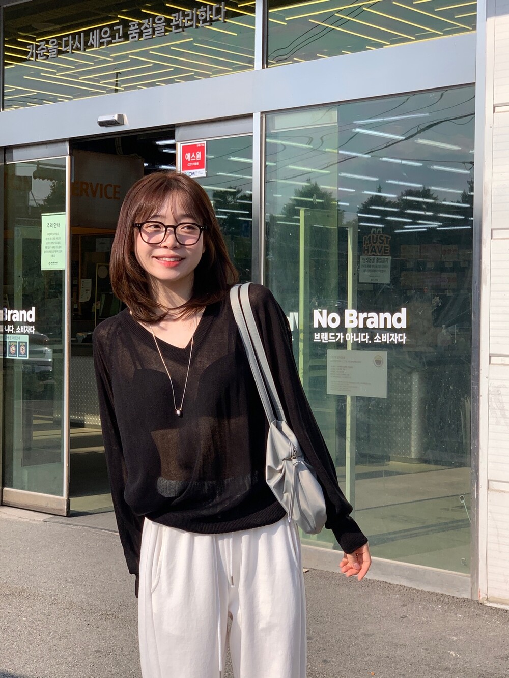 적당한 브이넥으로 시원하게 터 준 넥라인 덕분에, 니트라고 해도 절대