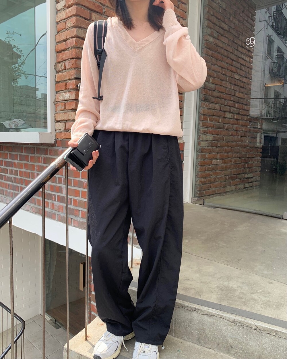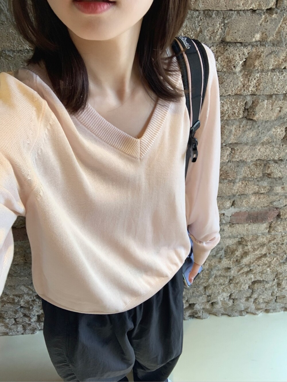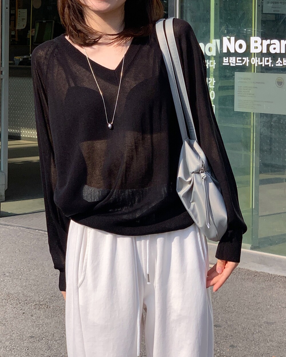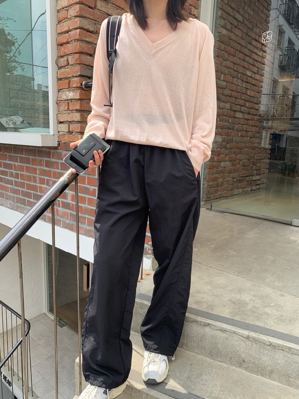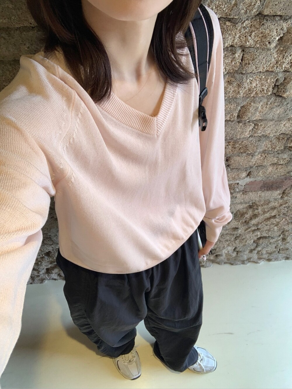 적당한 브이넥으로 시원하게 터 준 넥라인 덕분에, 니트라고 해도 절대