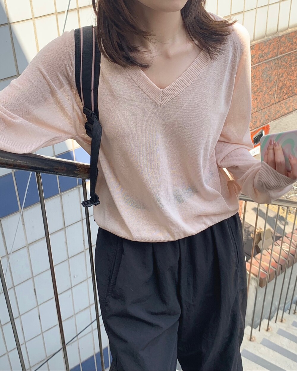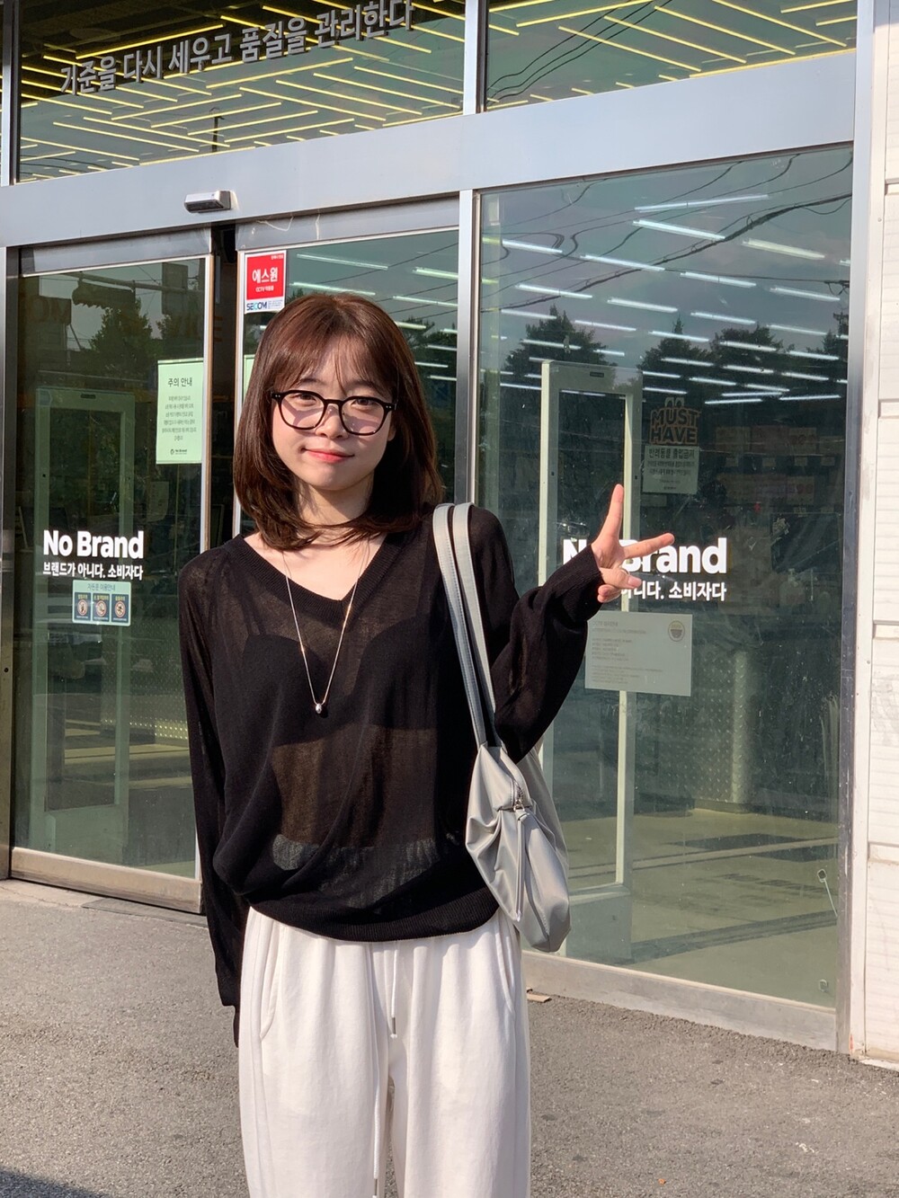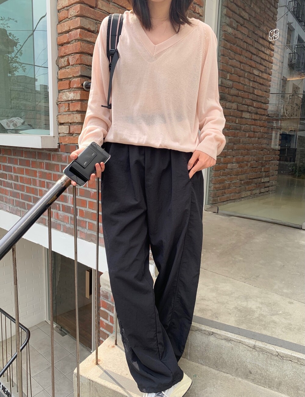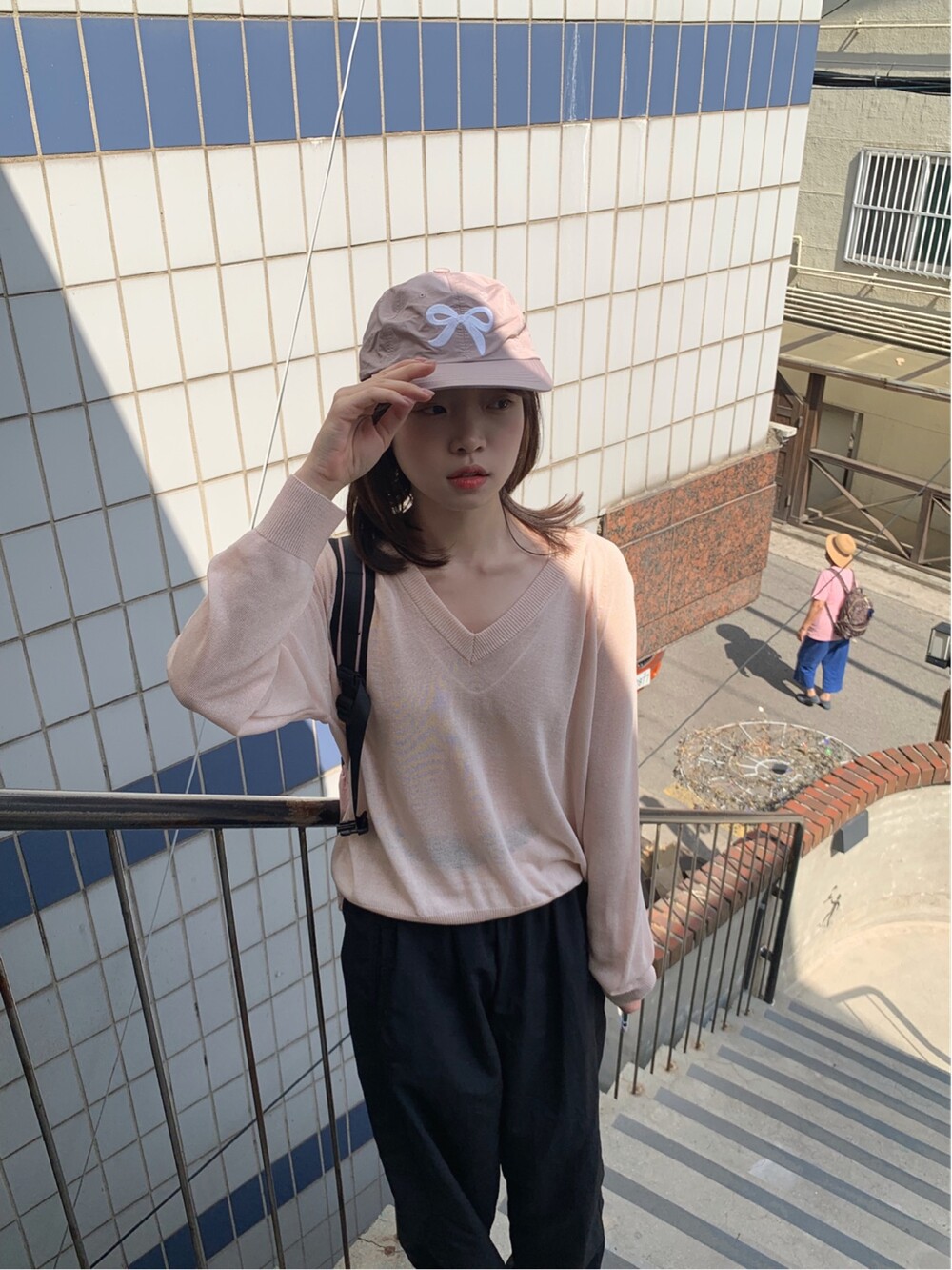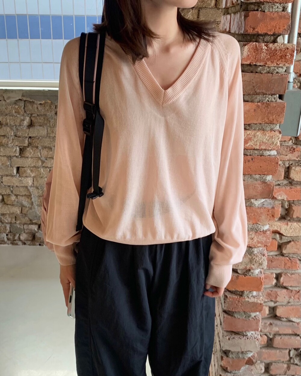 적당한 브이넥으로 시원하게 터 준 넥라인 덕분에, 니트라고 해도 절대