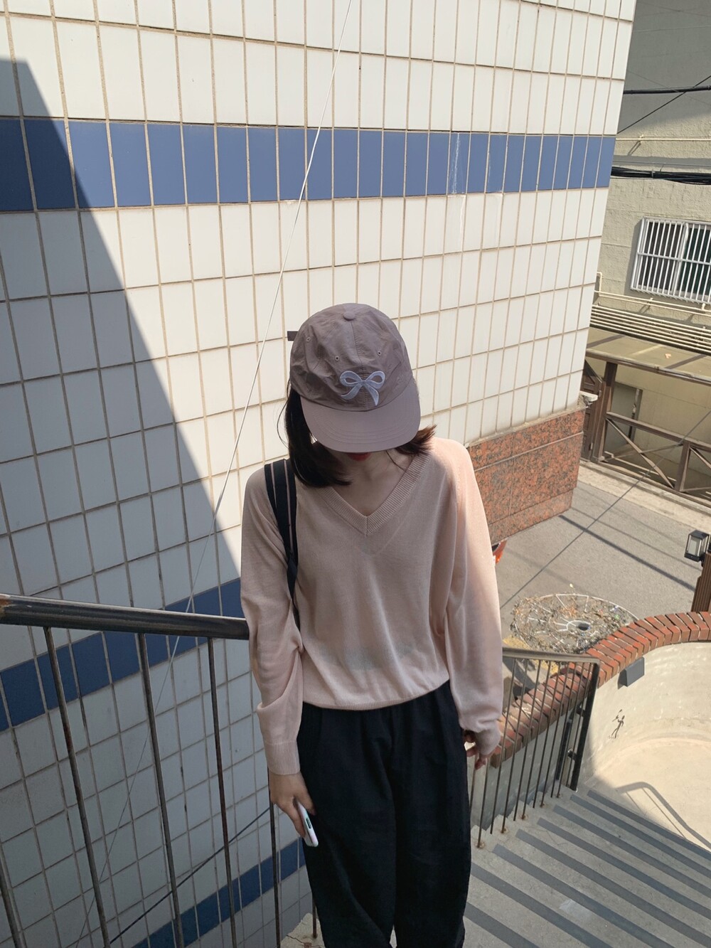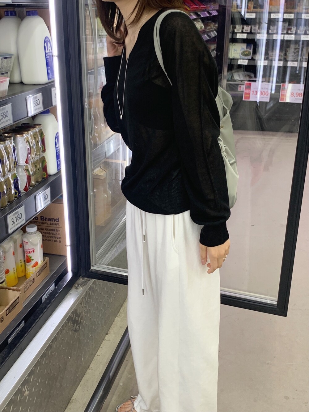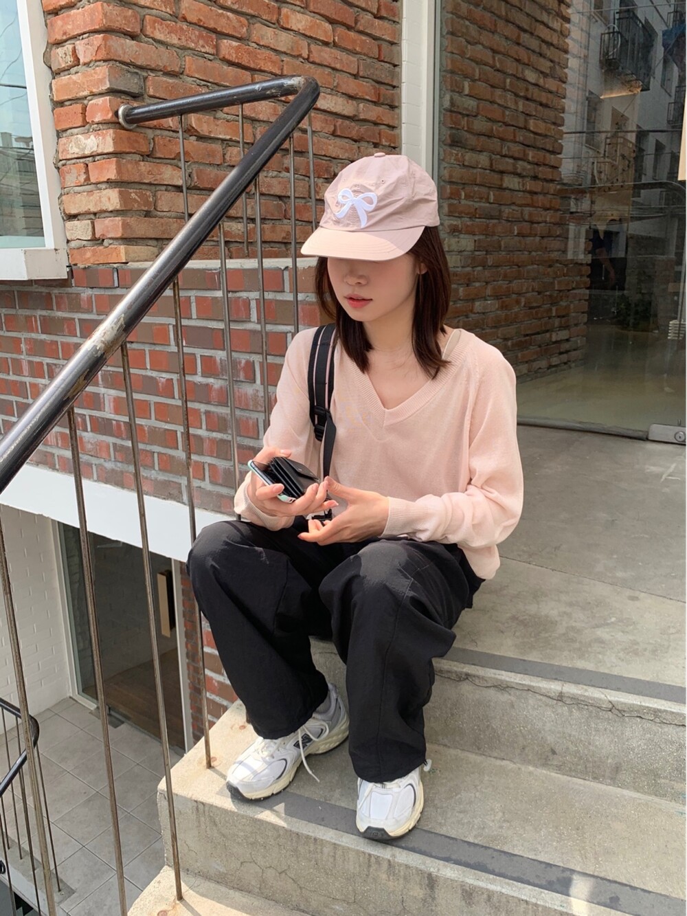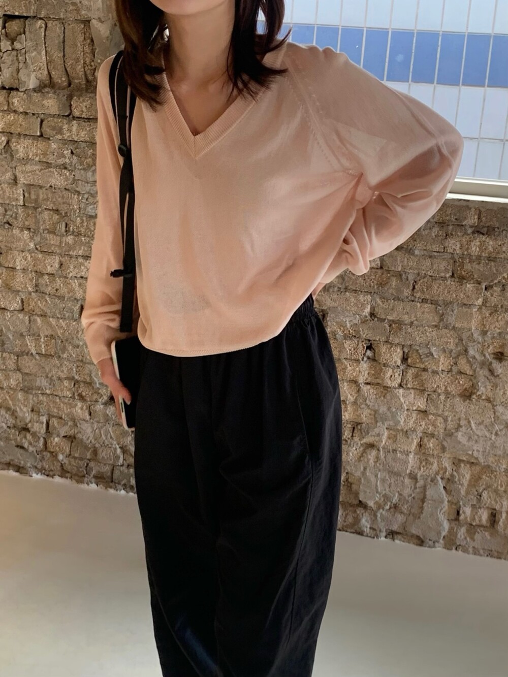 적당한 브이넥으로 시원하게 터 준 넥라인 덕분에, 니트라고 해도 절대