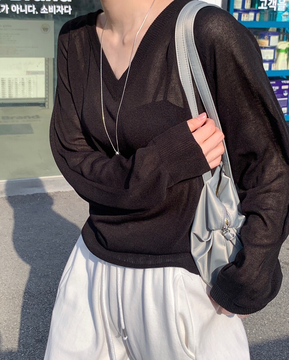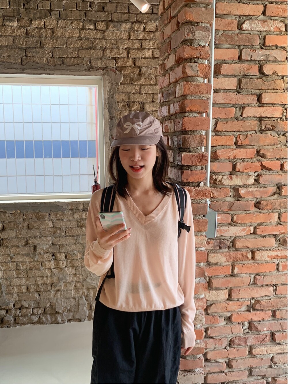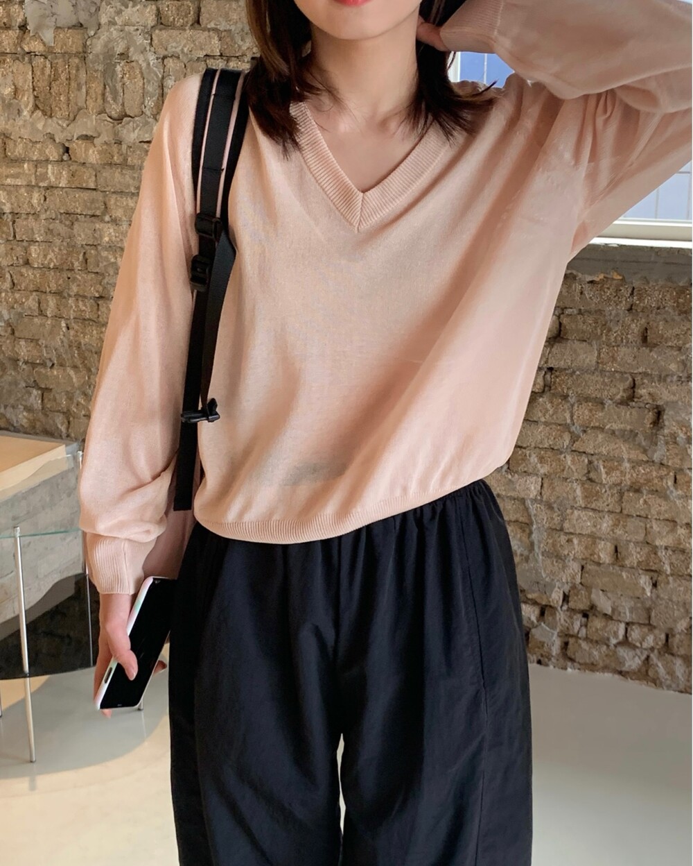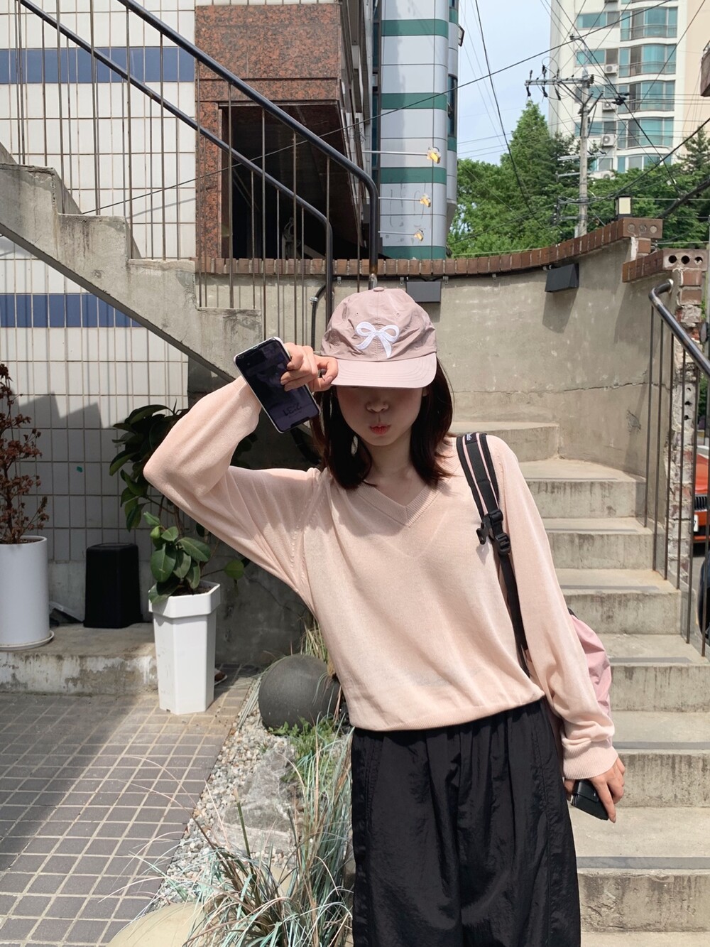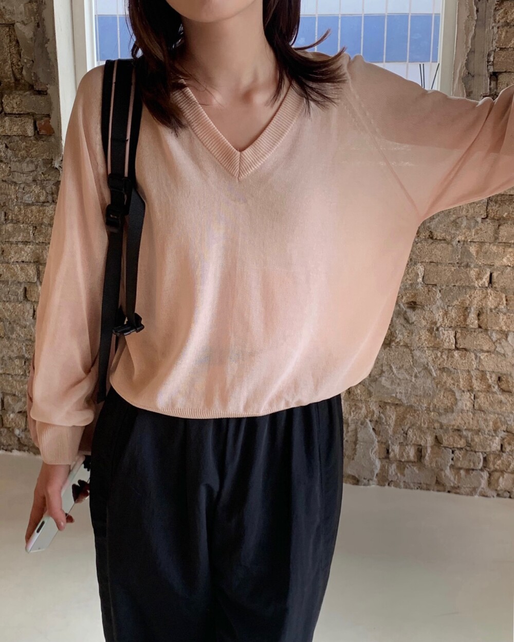적당한 브이넥으로 시원하게 터 준 넥라인 덕분에, 니트라고 해도 절대