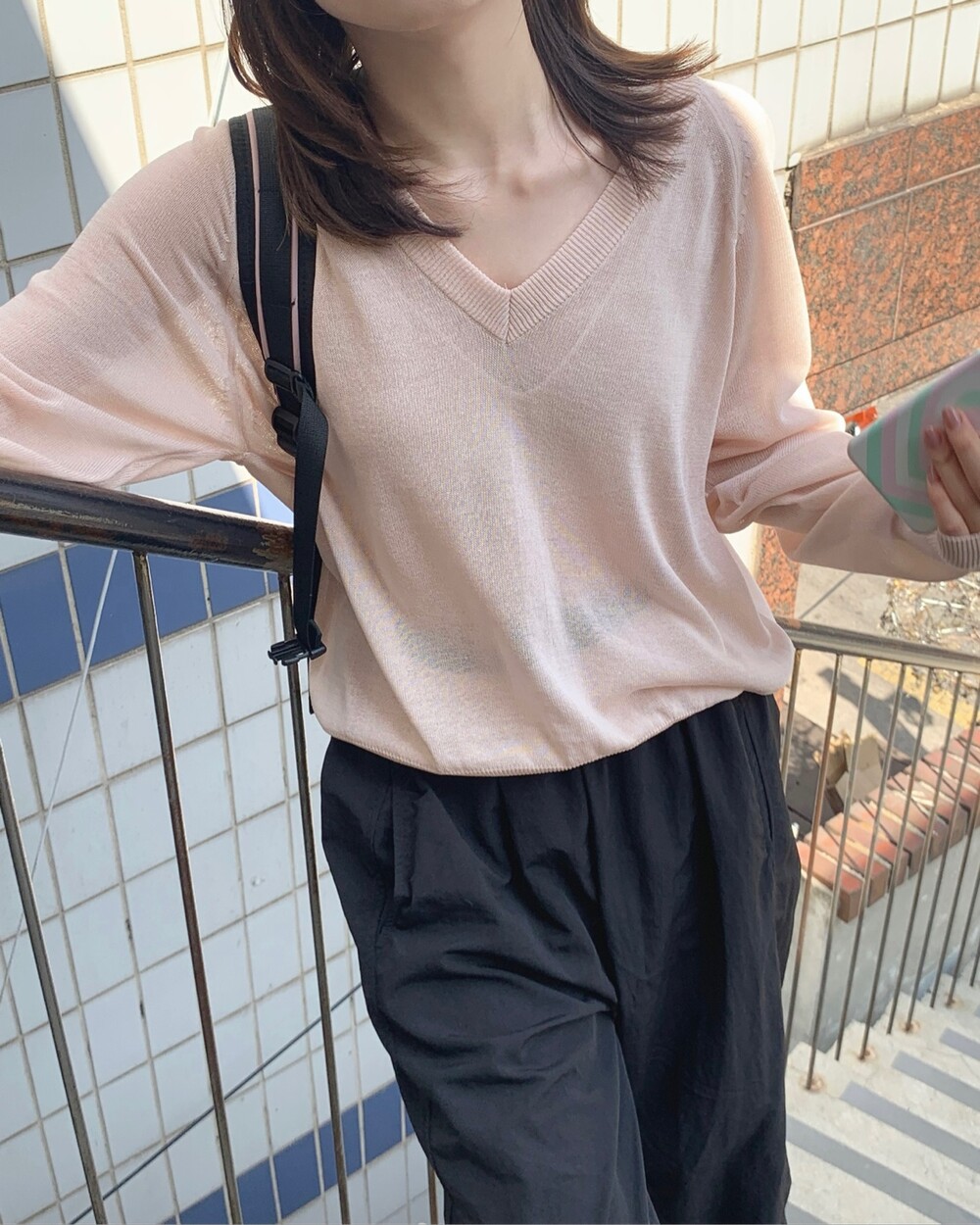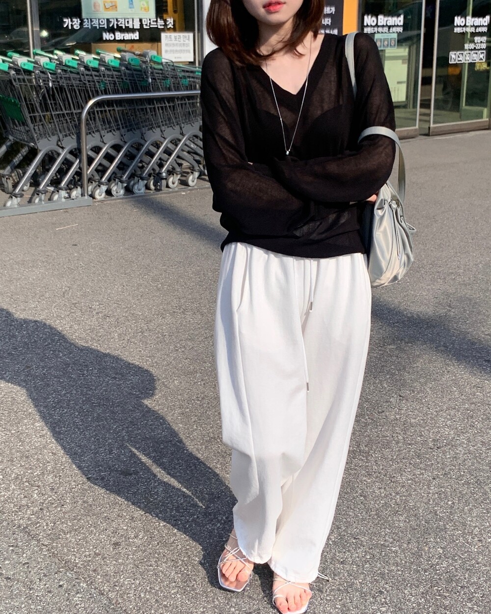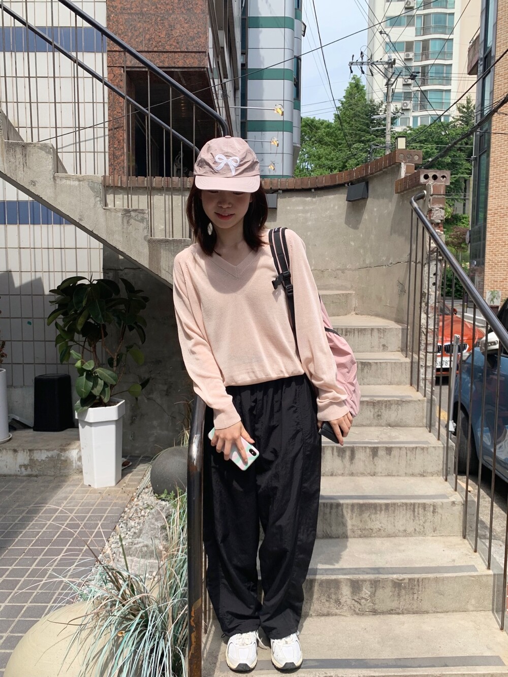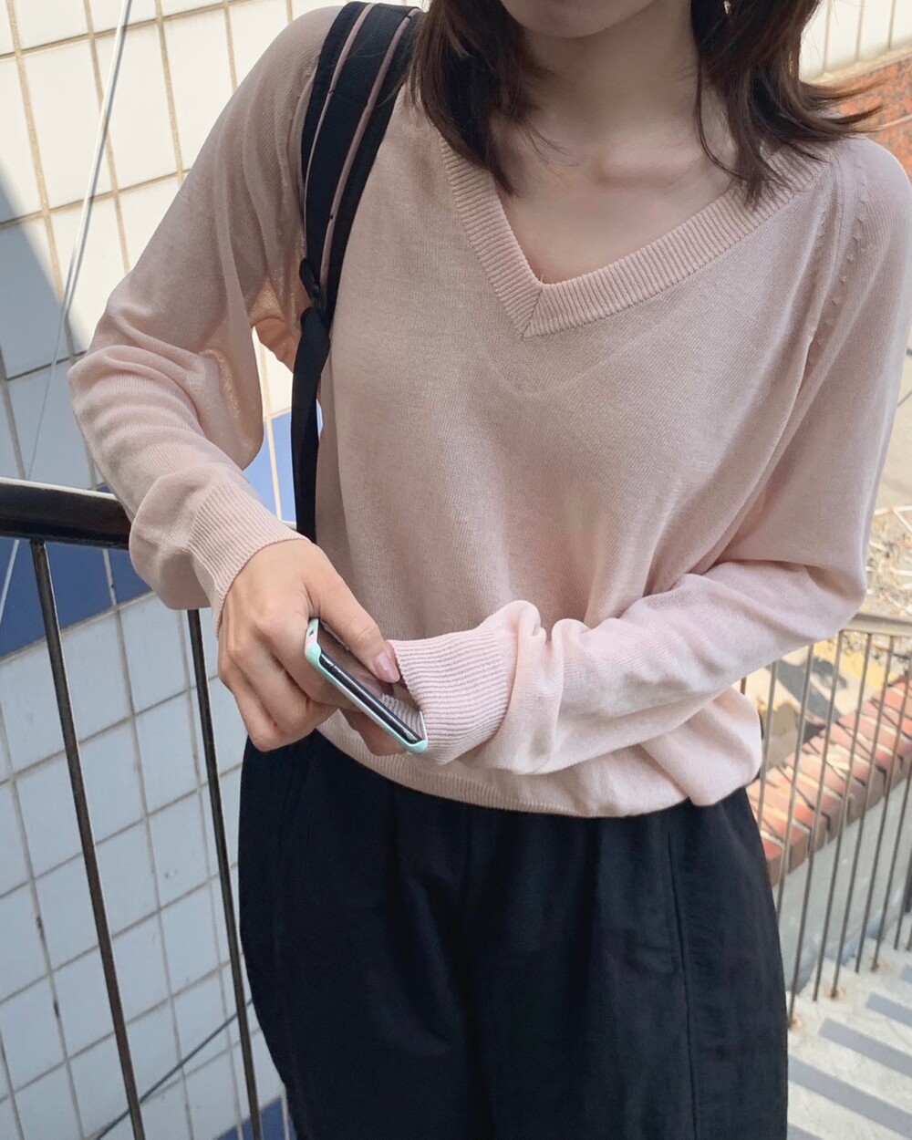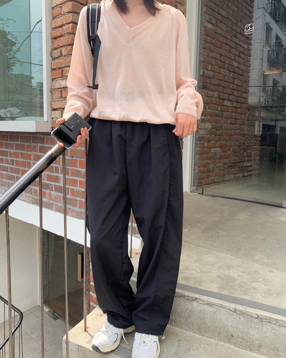 적당한 브이넥으로 시원하게 터 준 넥라인 덕분에, 니트라고 해도 절대