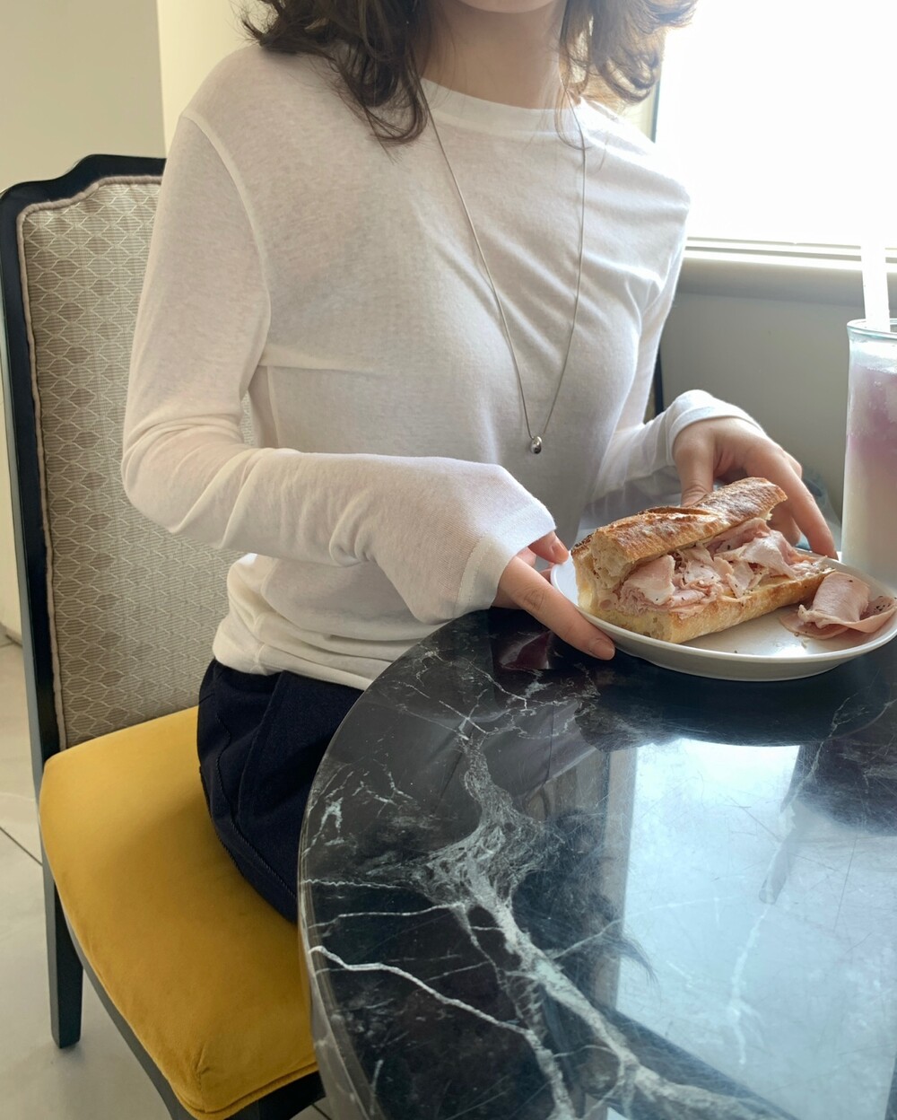 고급스러운 기본 티셔츠의 진가를 연출해주는 듯 하여