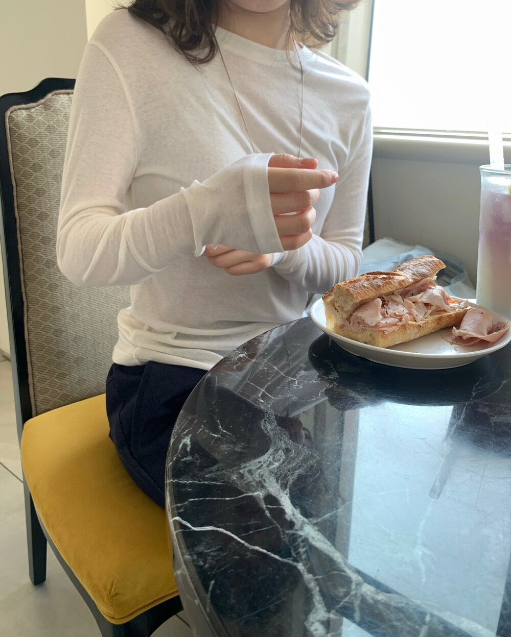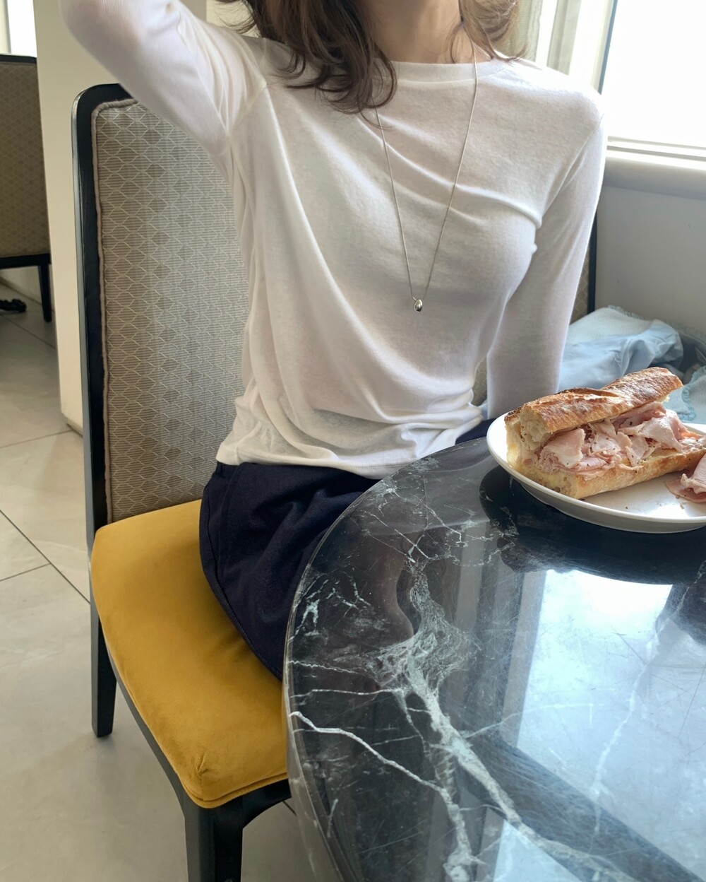 “자연스럽게 감기듯, 여리여리한 실루엣의 티셔츠"