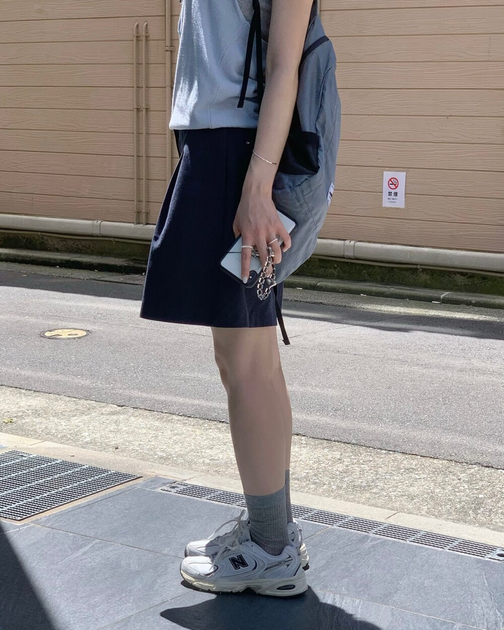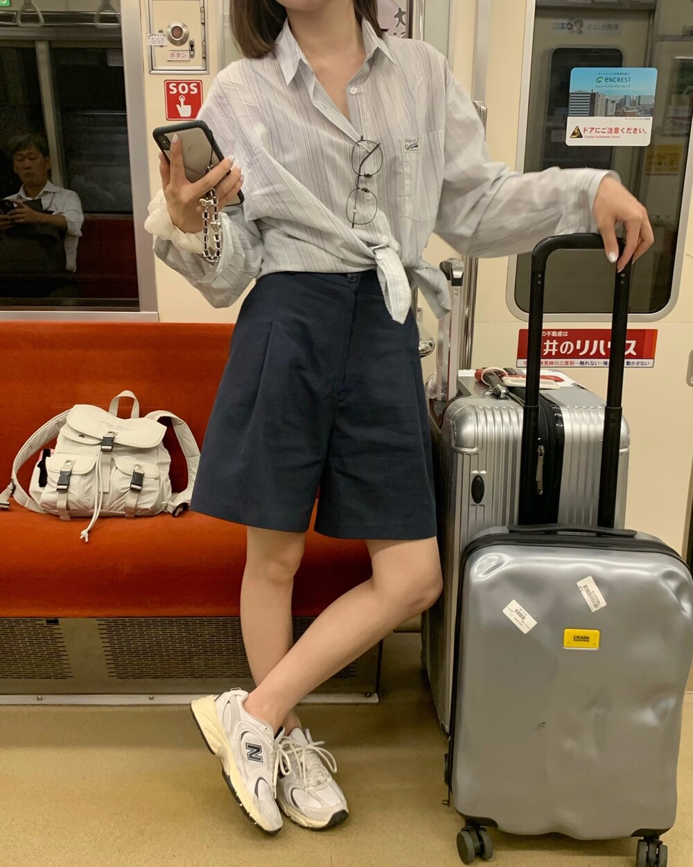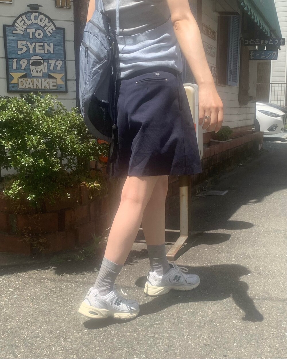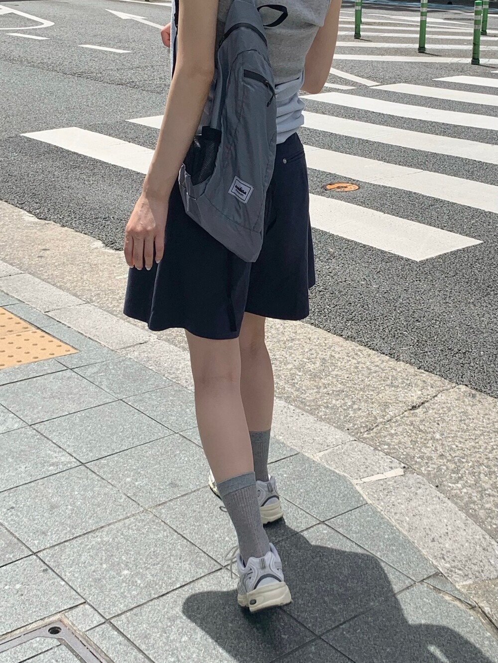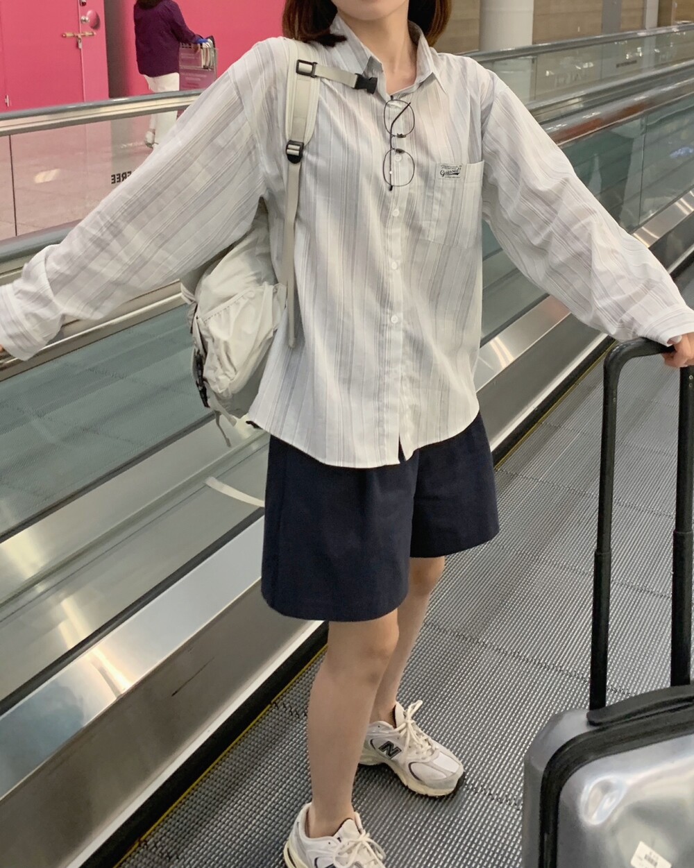 적당한 상의 기장에 요 심볼이 보이도록 매치해주면 걸을때마다