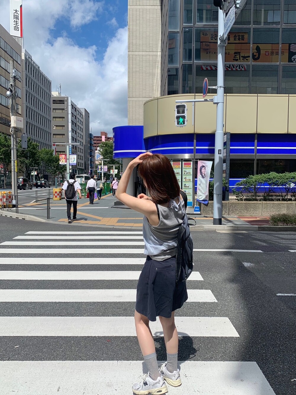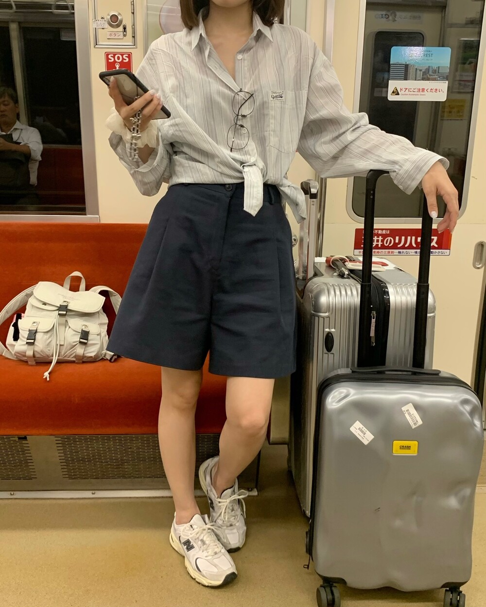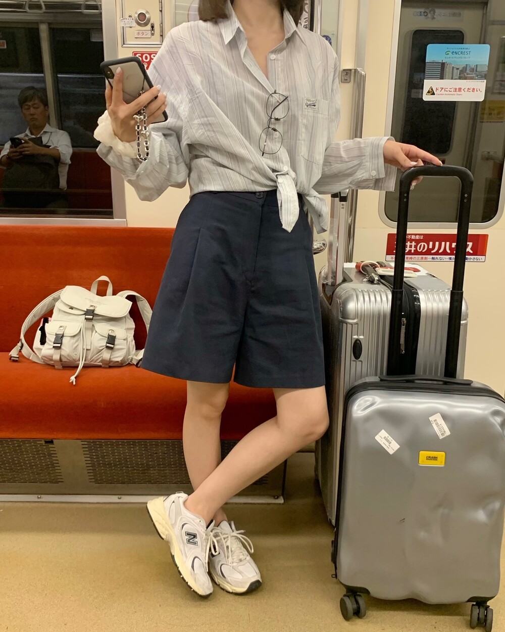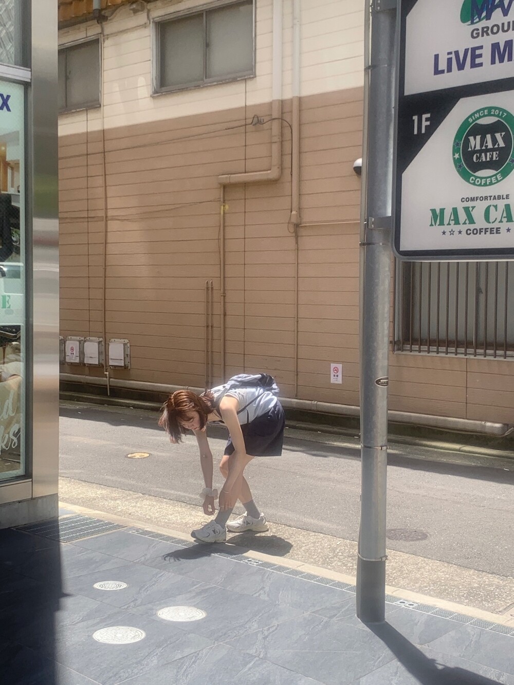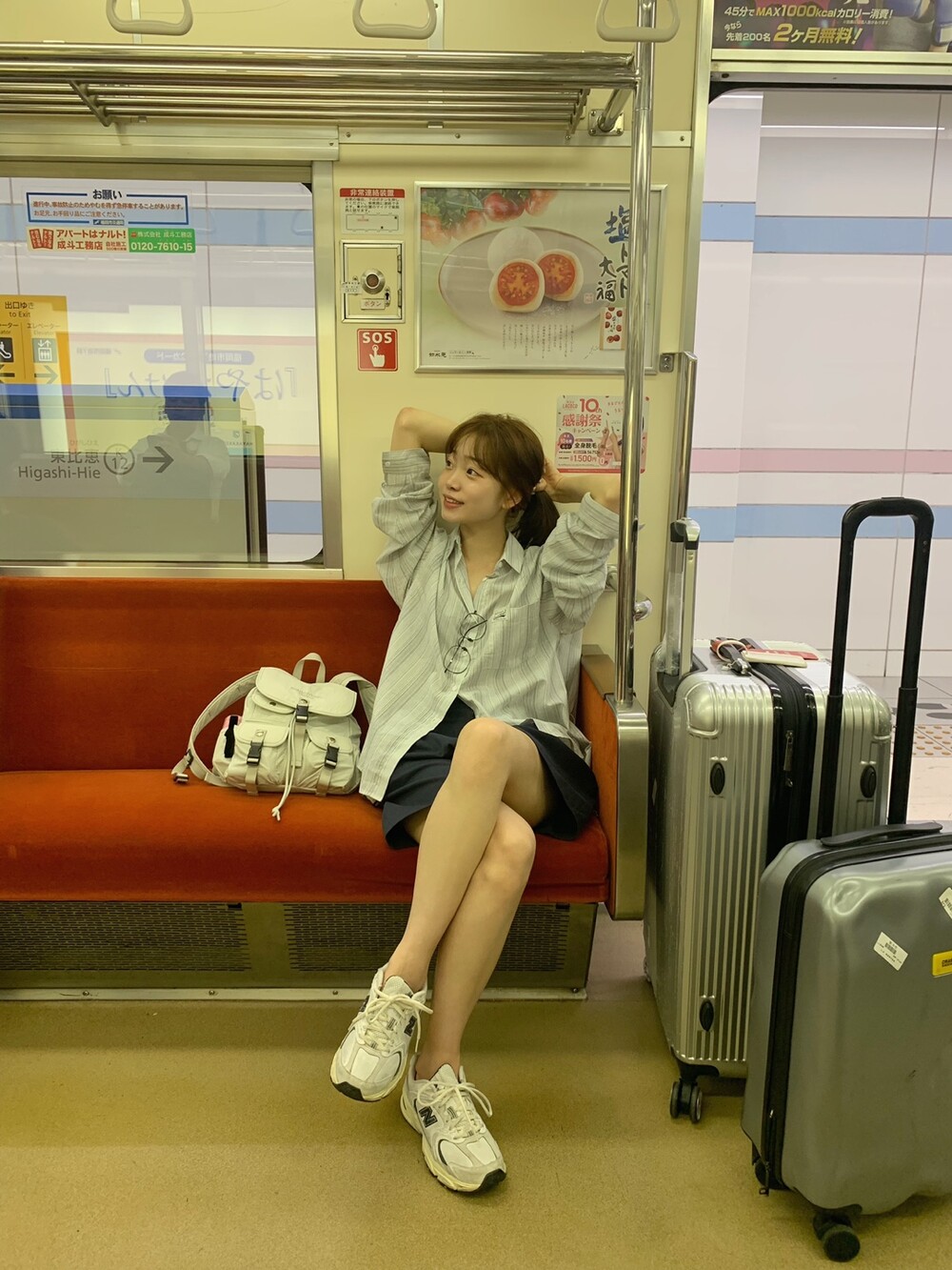 적당한 상의 기장에 요 심볼이 보이도록 매치해주면 걸을때마다