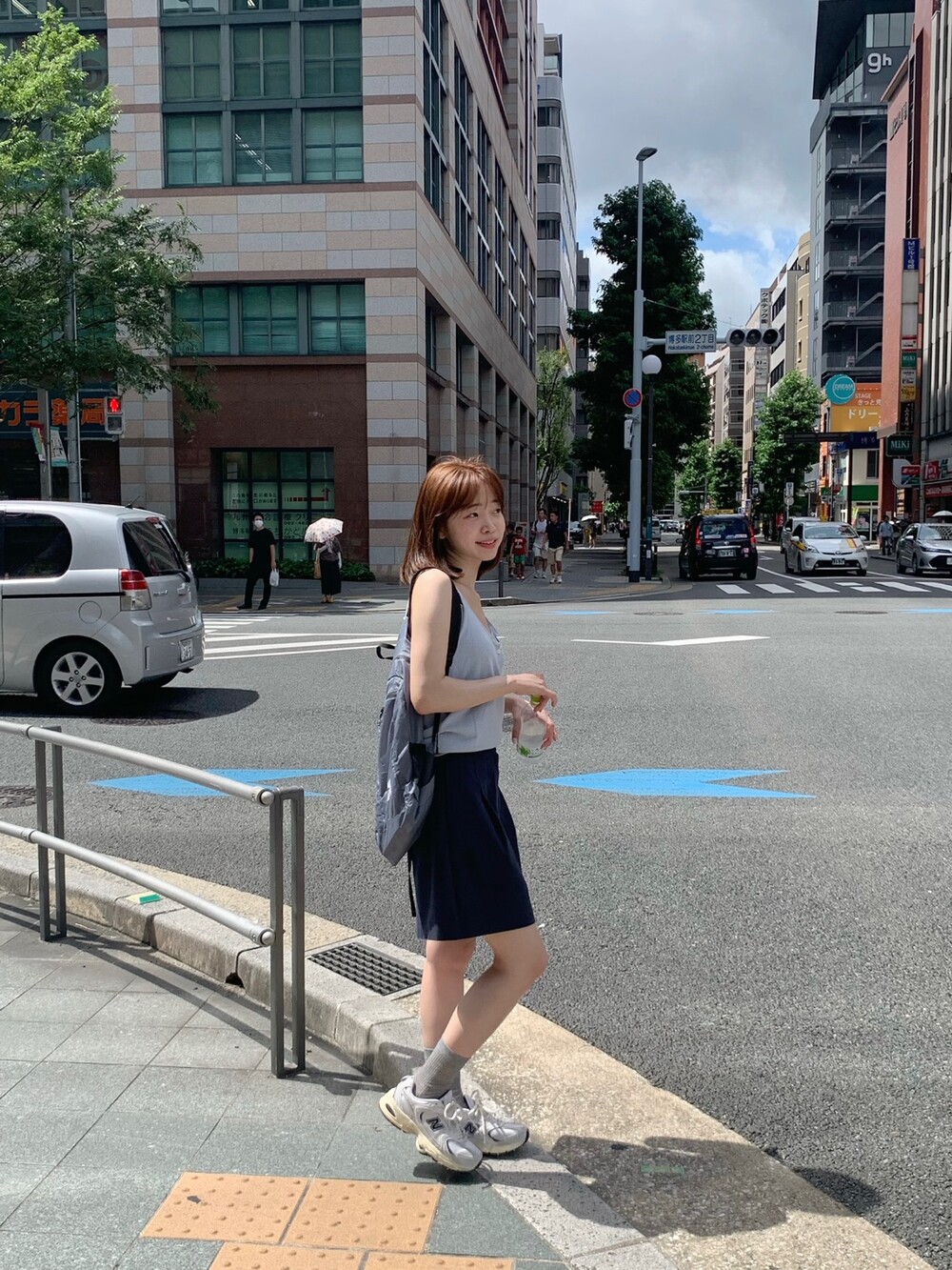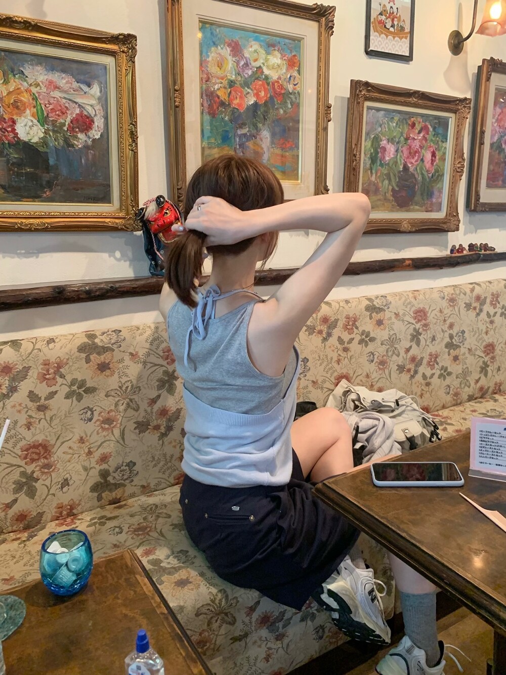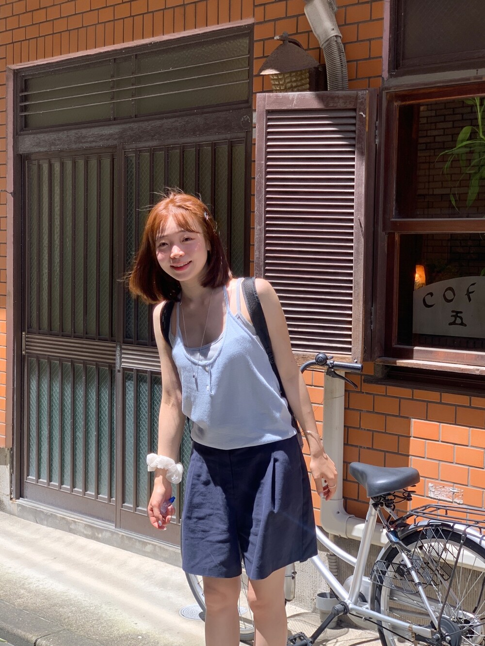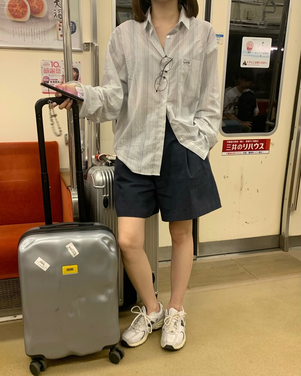 적당한 상의 기장에 요 심볼이 보이도록 매치해주면 걸을때마다