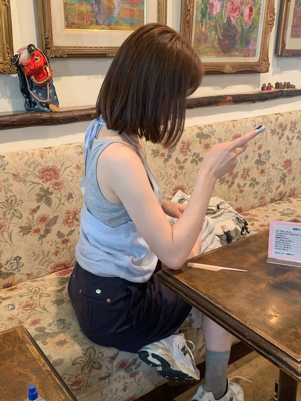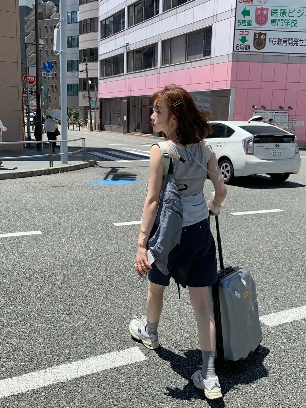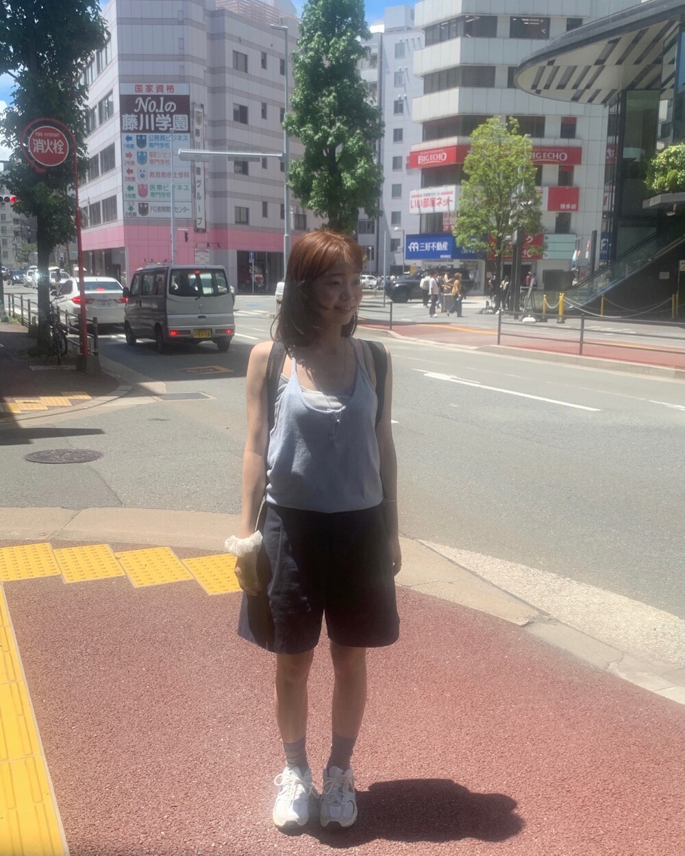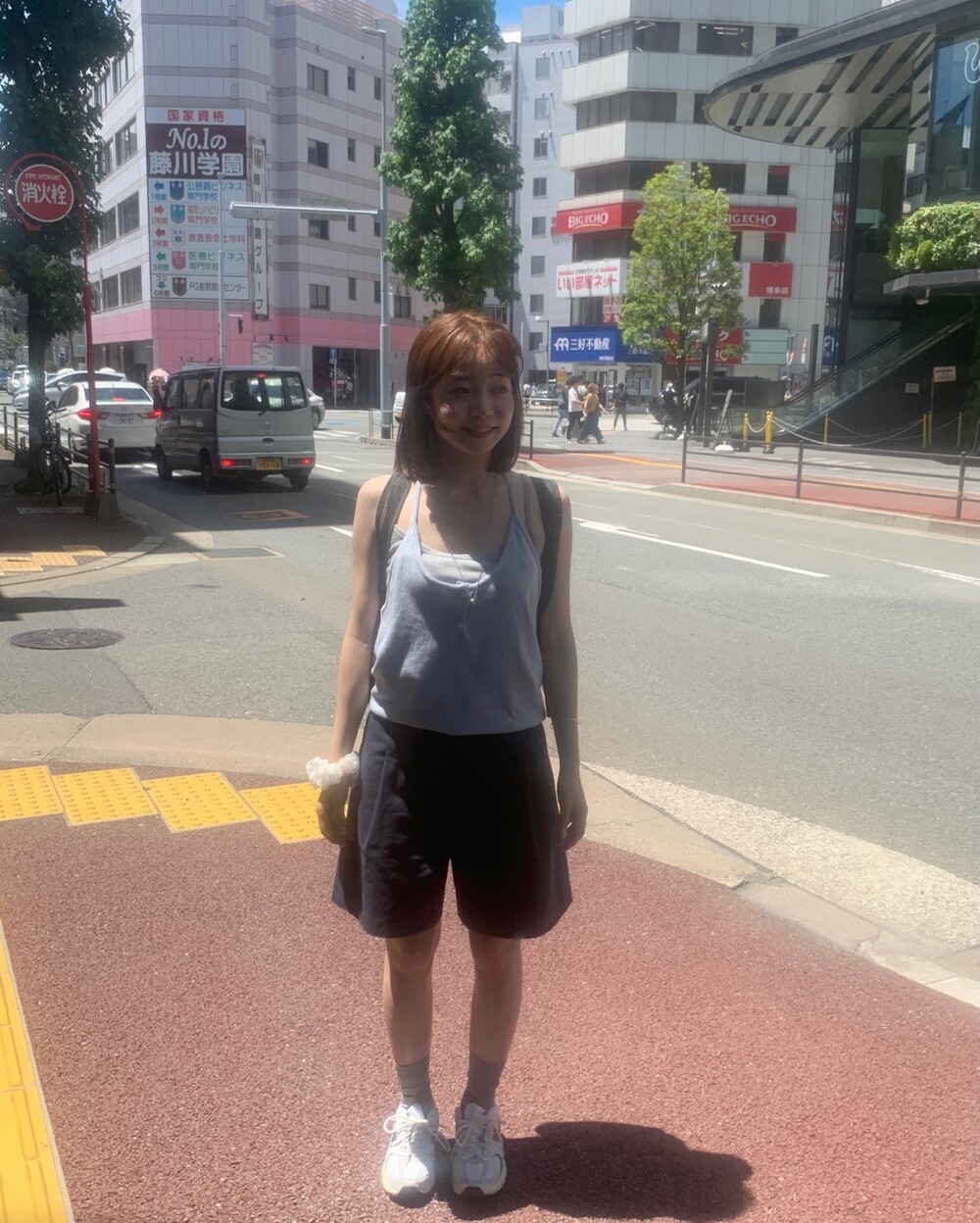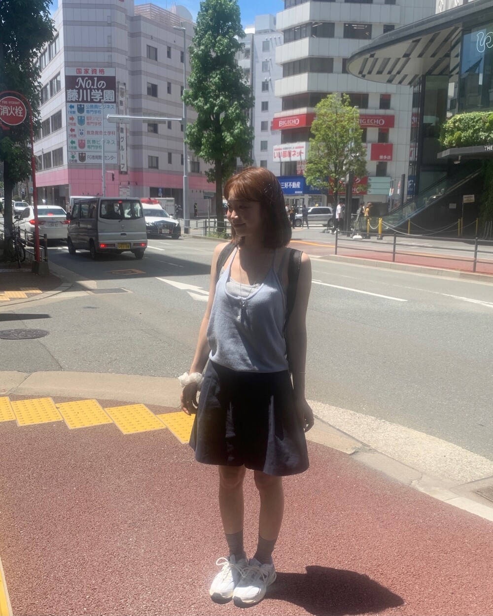 적당한 상의 기장에 요 심볼이 보이도록 매치해주면 걸을때마다