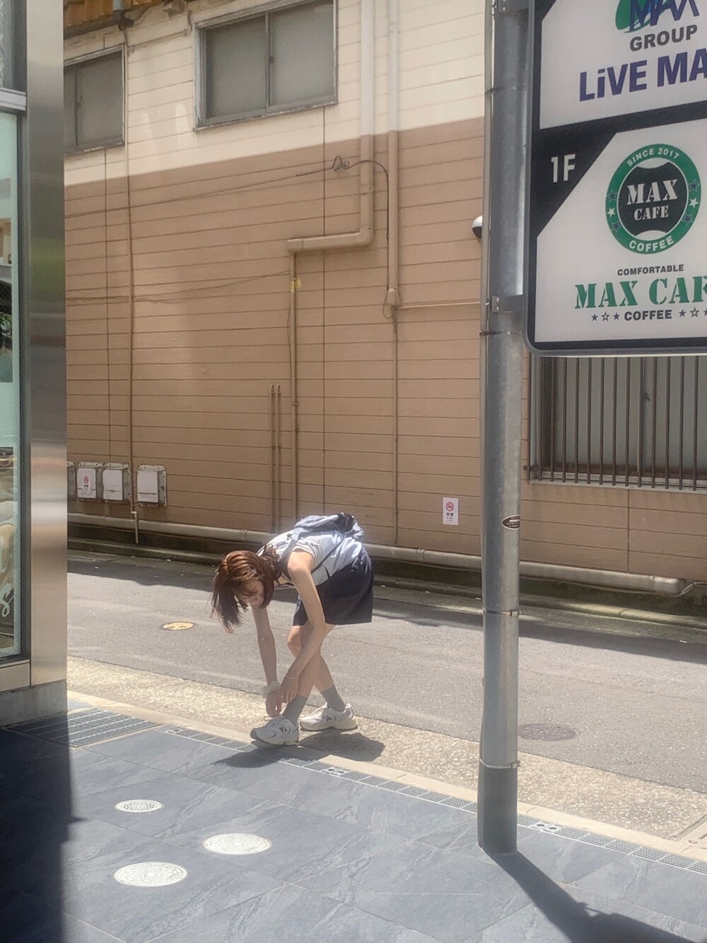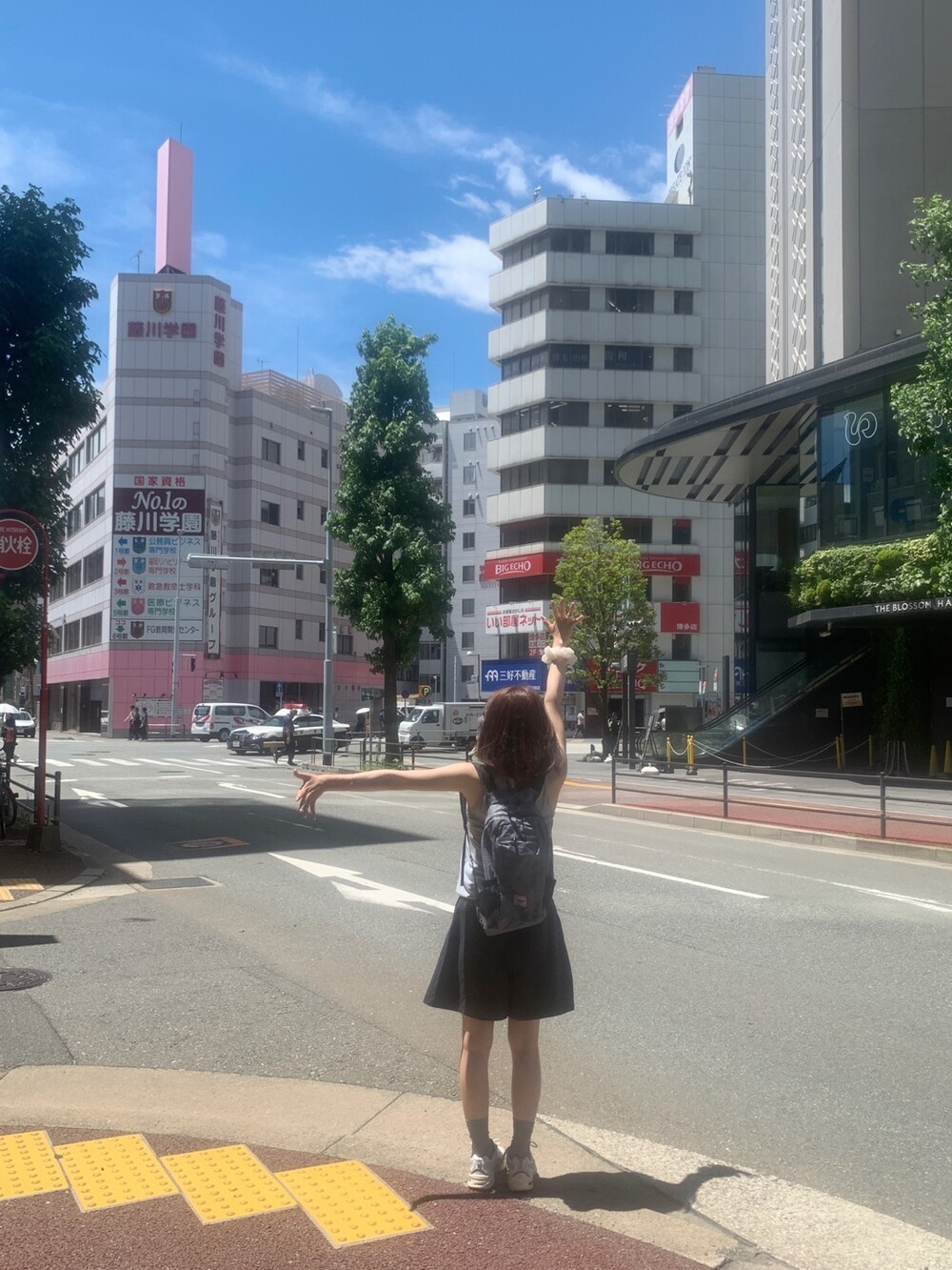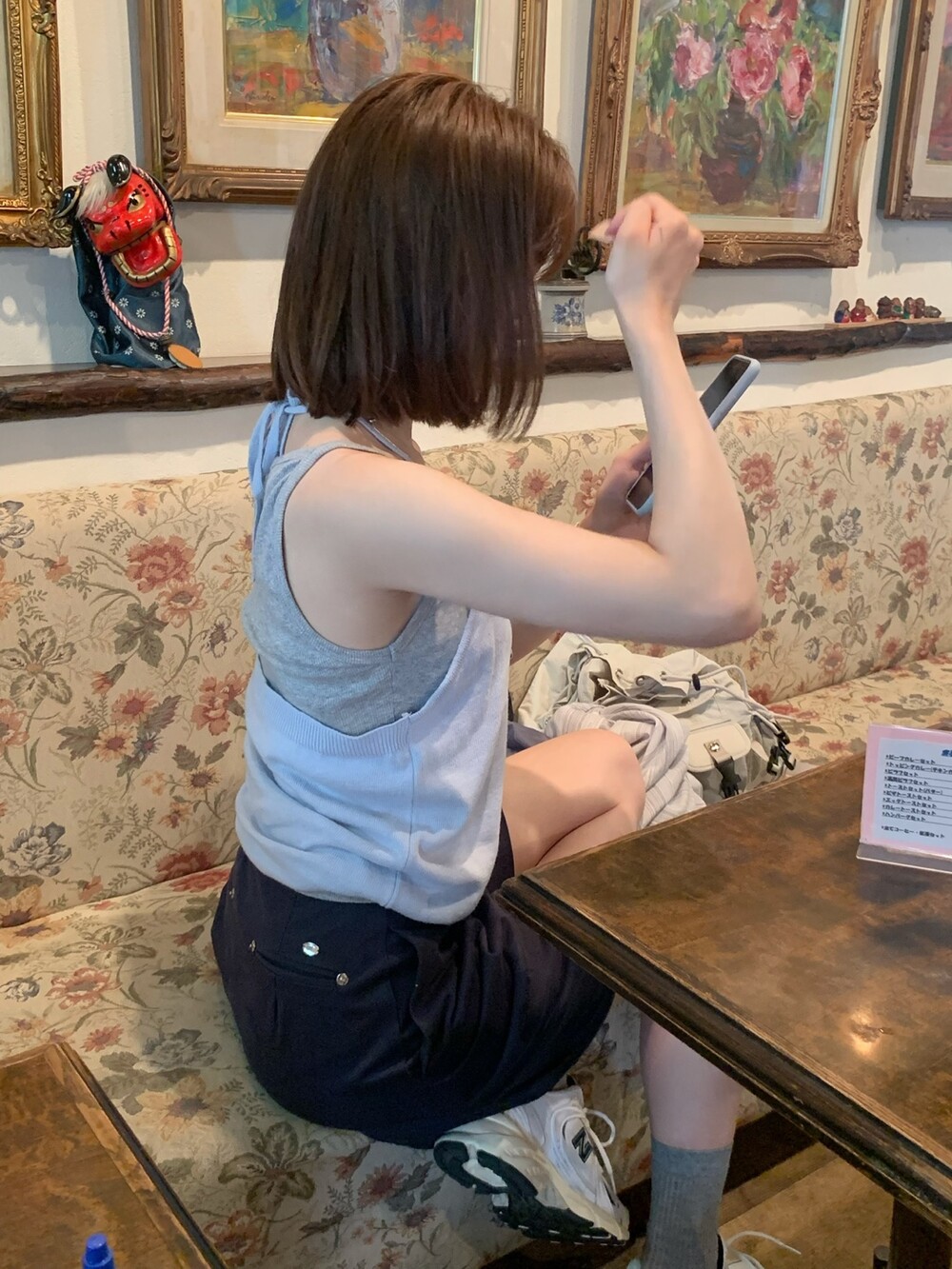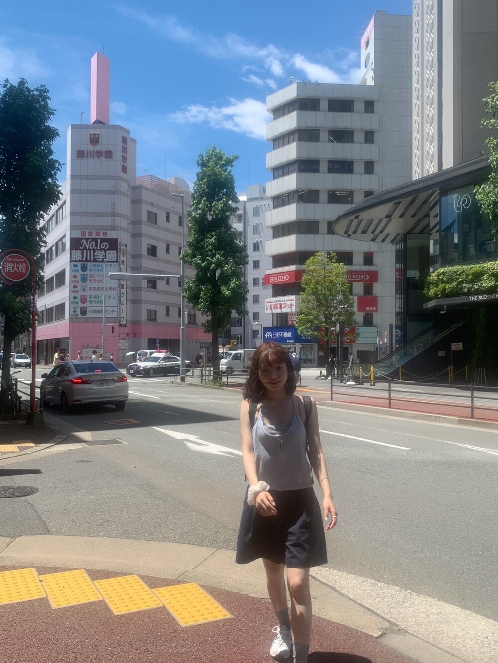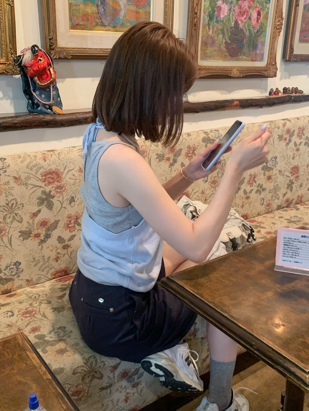 적당한 상의 기장에 요 심볼이 보이도록 매치해주면 걸을때마다