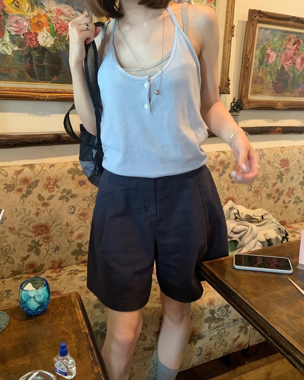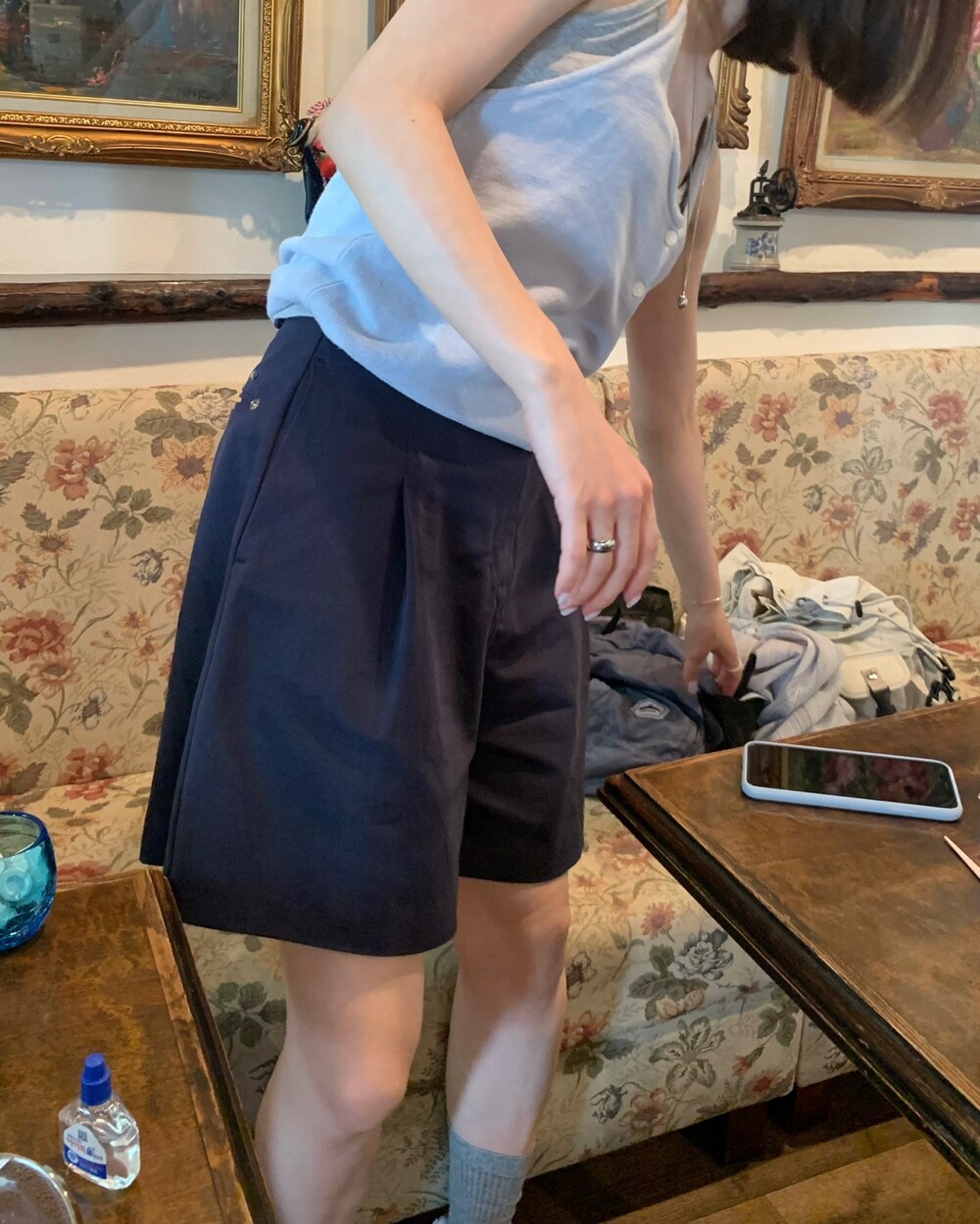 적당한 5부 기장에 은은하게 퍼지는 버뮤다 핏 팬츠에요.