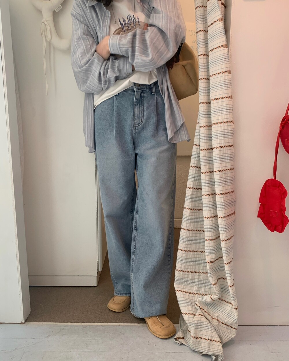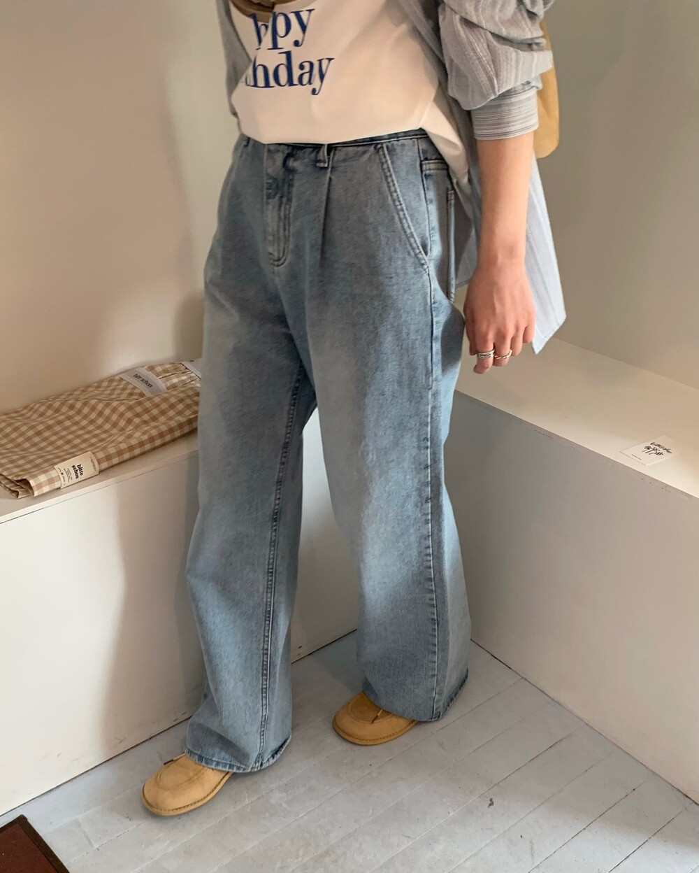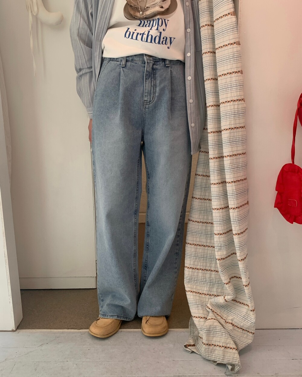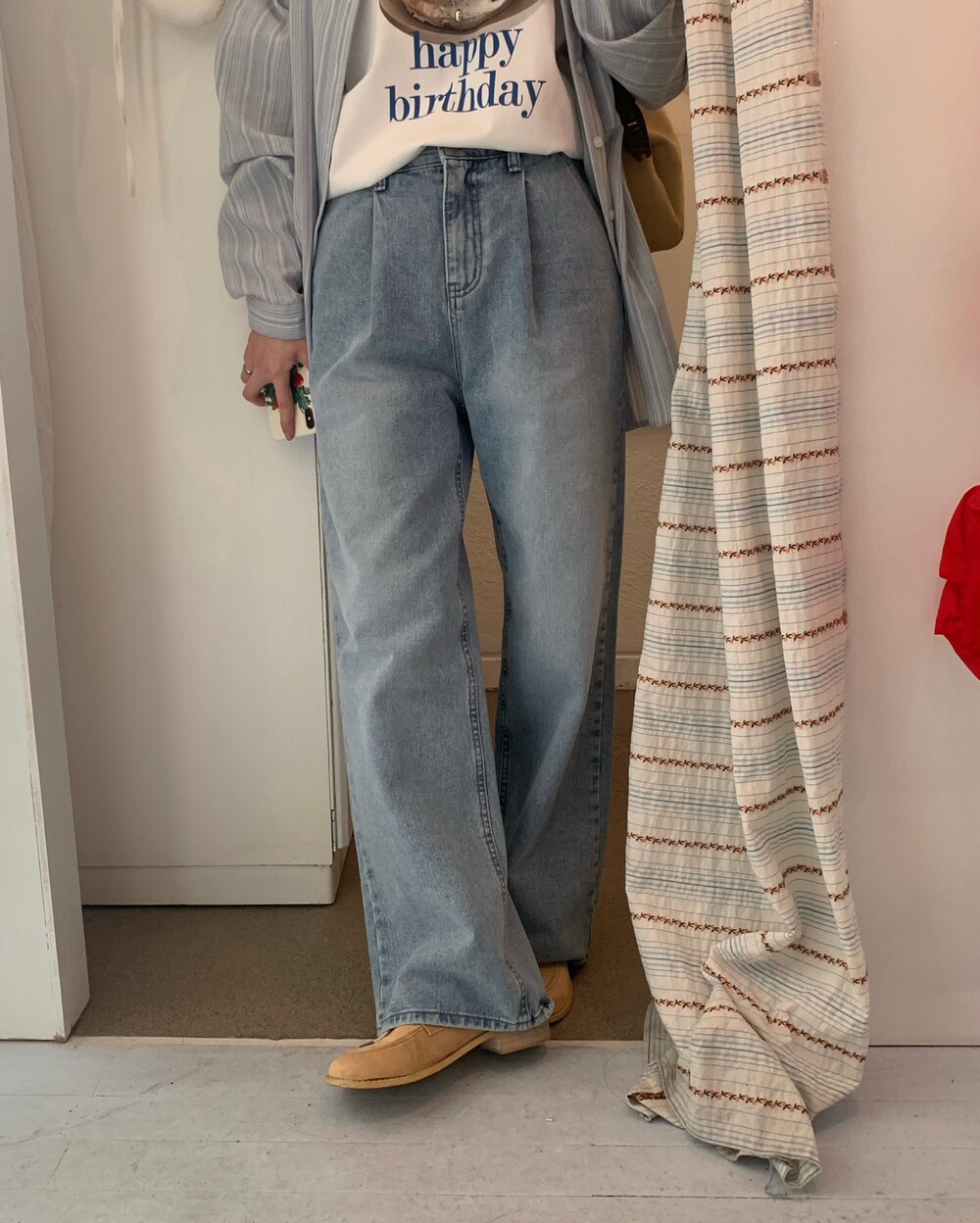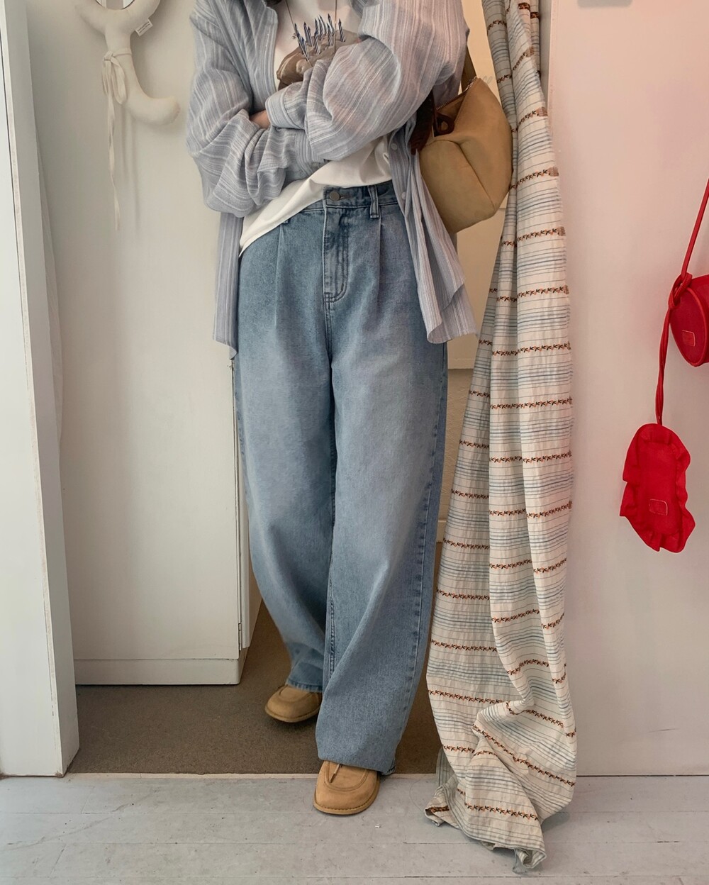 라이트 블루 컬러의 핀턱 와이드 데님을 소개드려요! 🍃