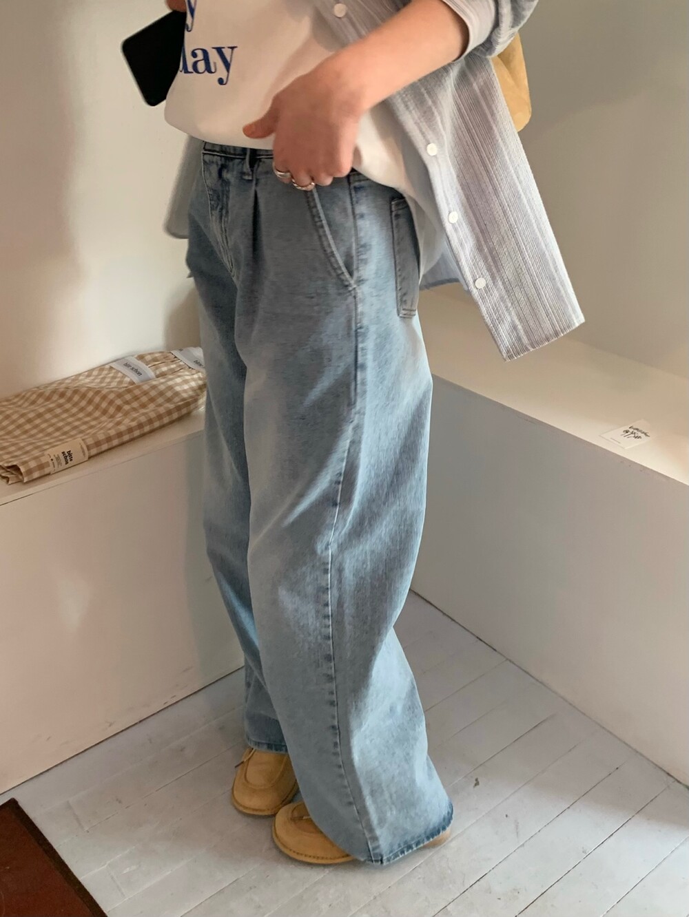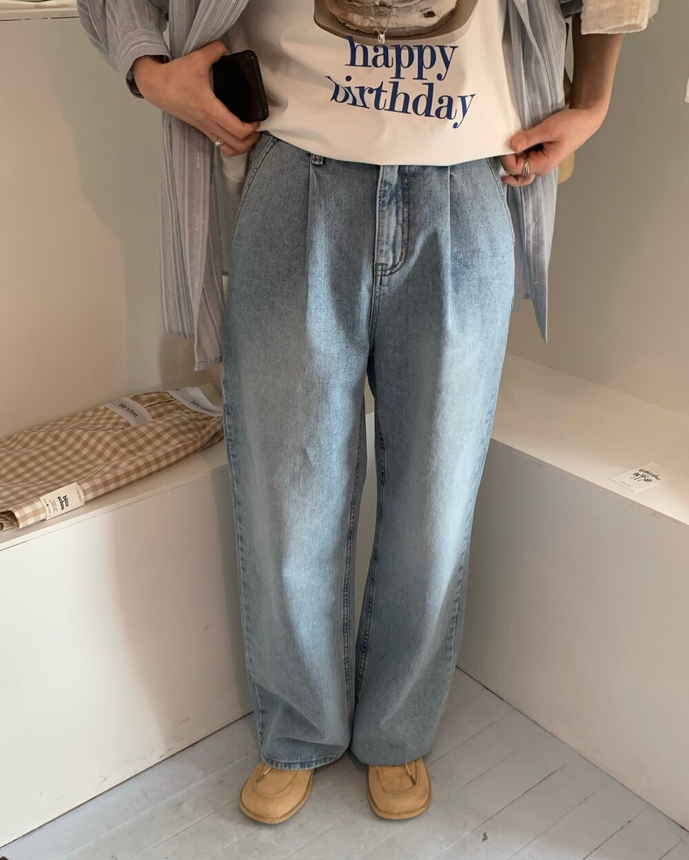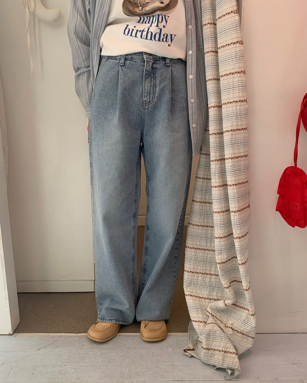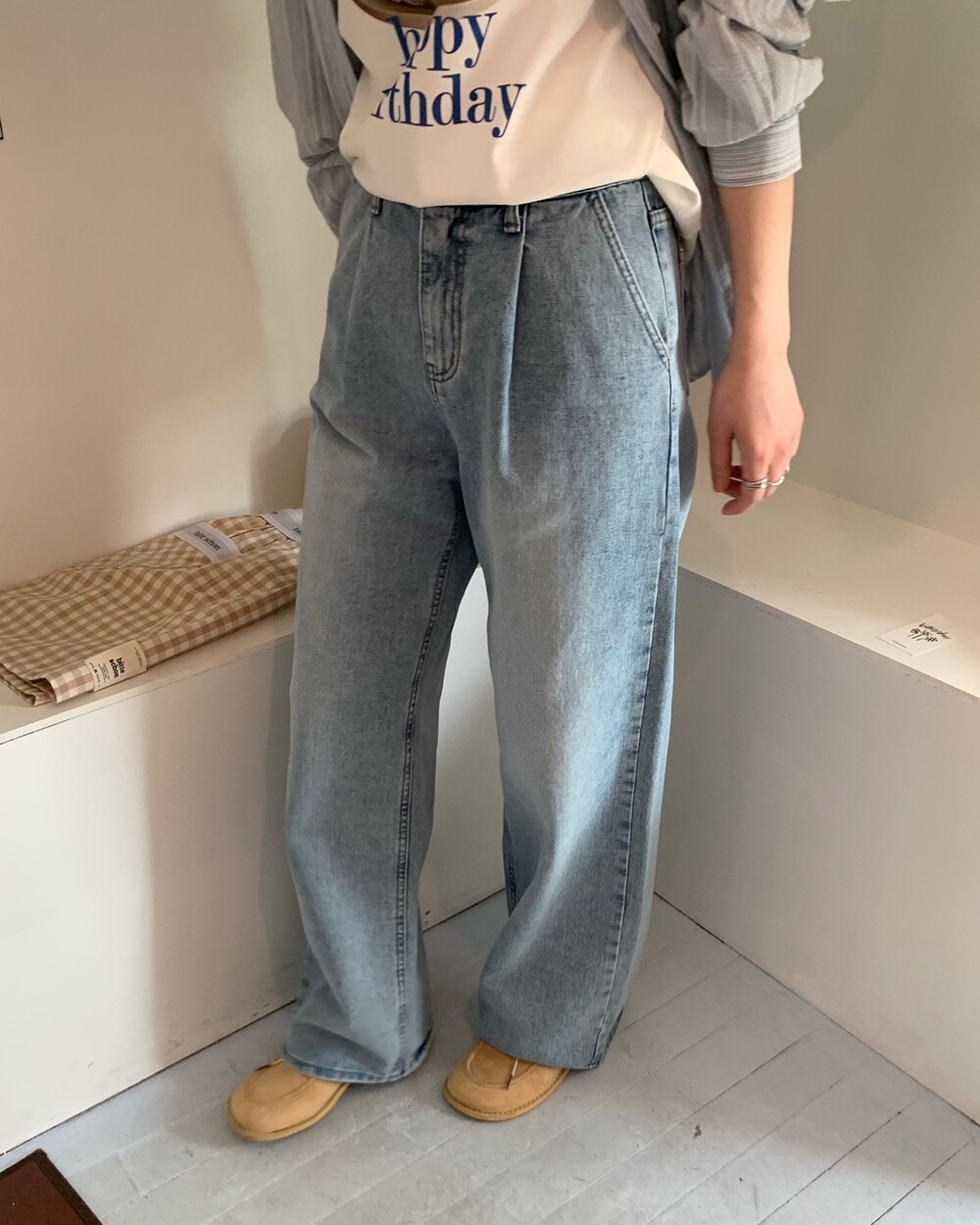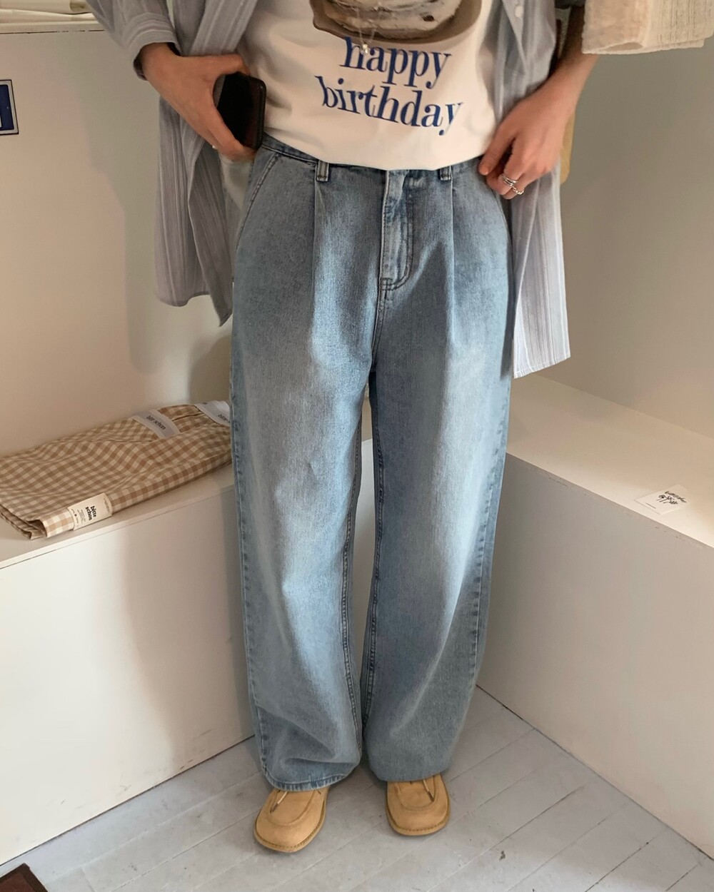 라이트 블루 컬러의 핀턱 와이드 데님을 소개드려요! 🍃