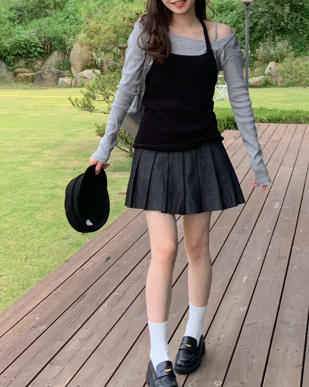 골드 버클 디테일 덕분에 심심하지 않고 모든 룩에 포인트가