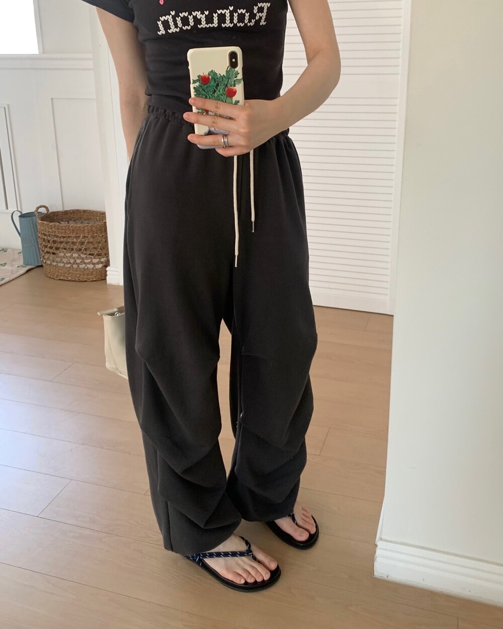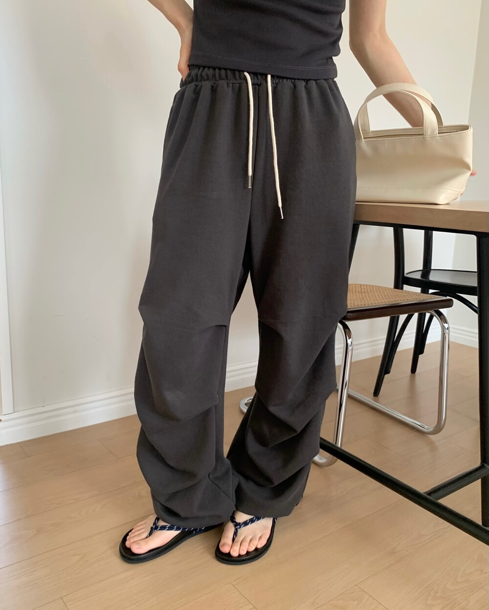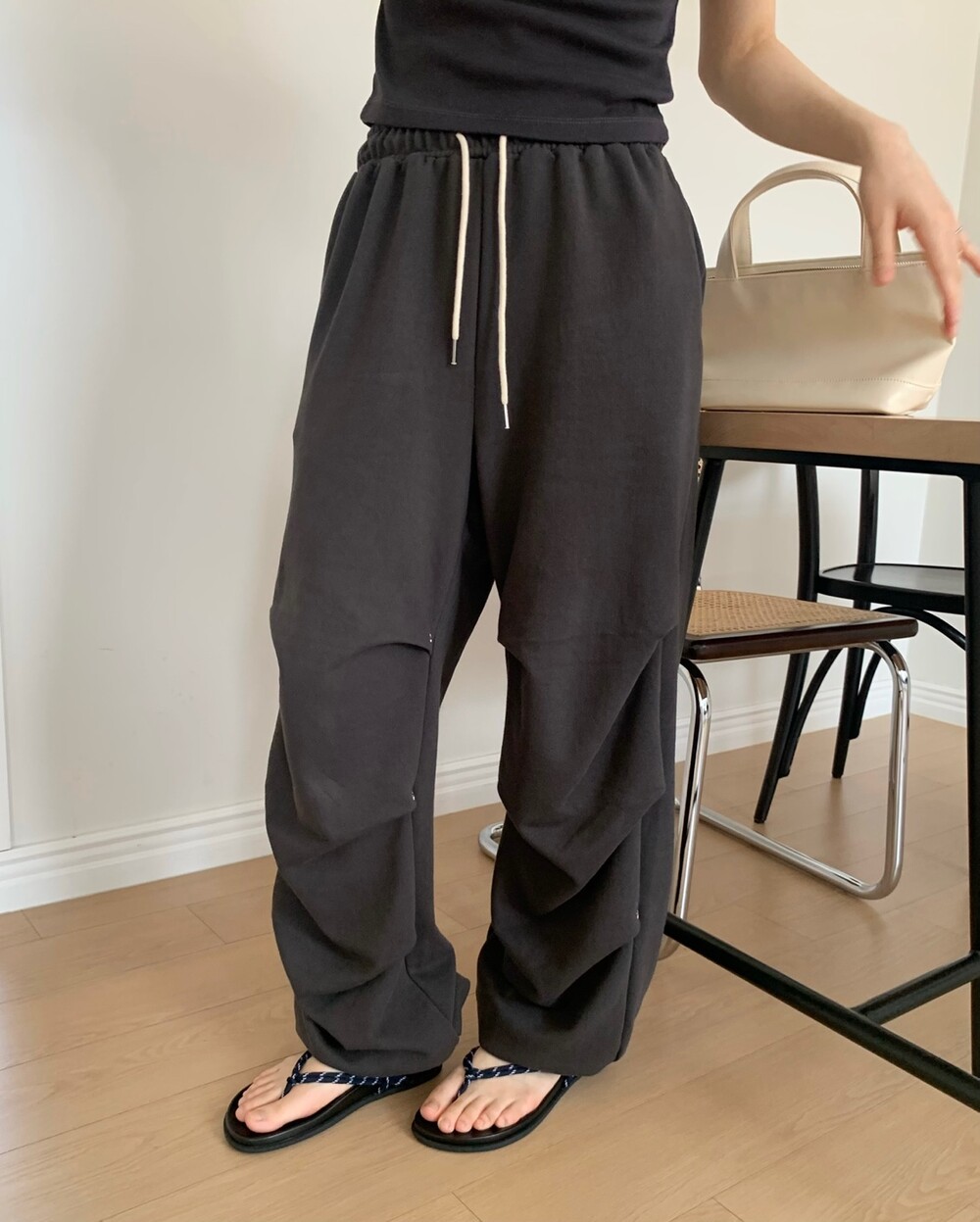 ☑️ 넉넉한 와이드 핏에 흐르듯이 떨어지는 라인의 조거 팬츠에요!