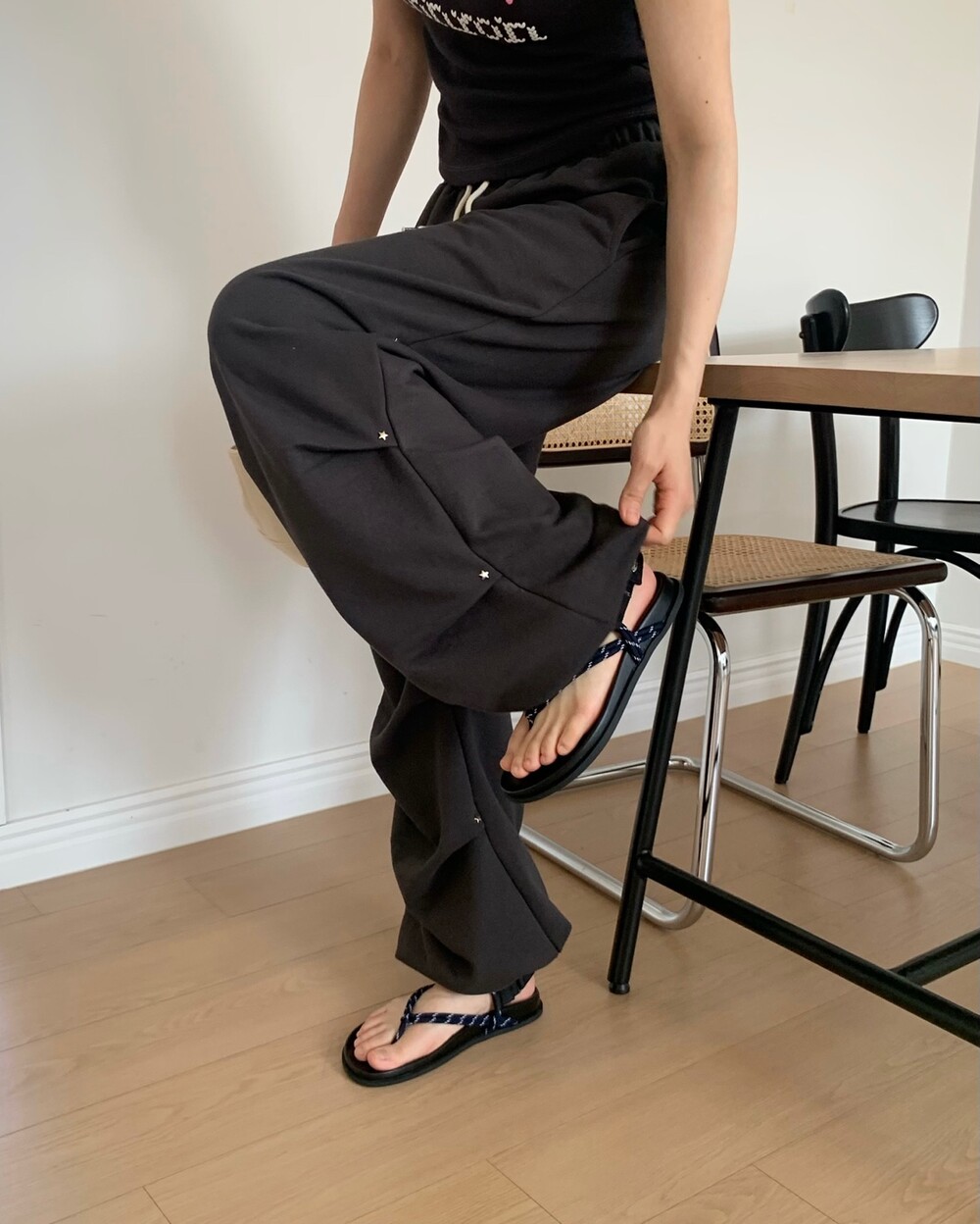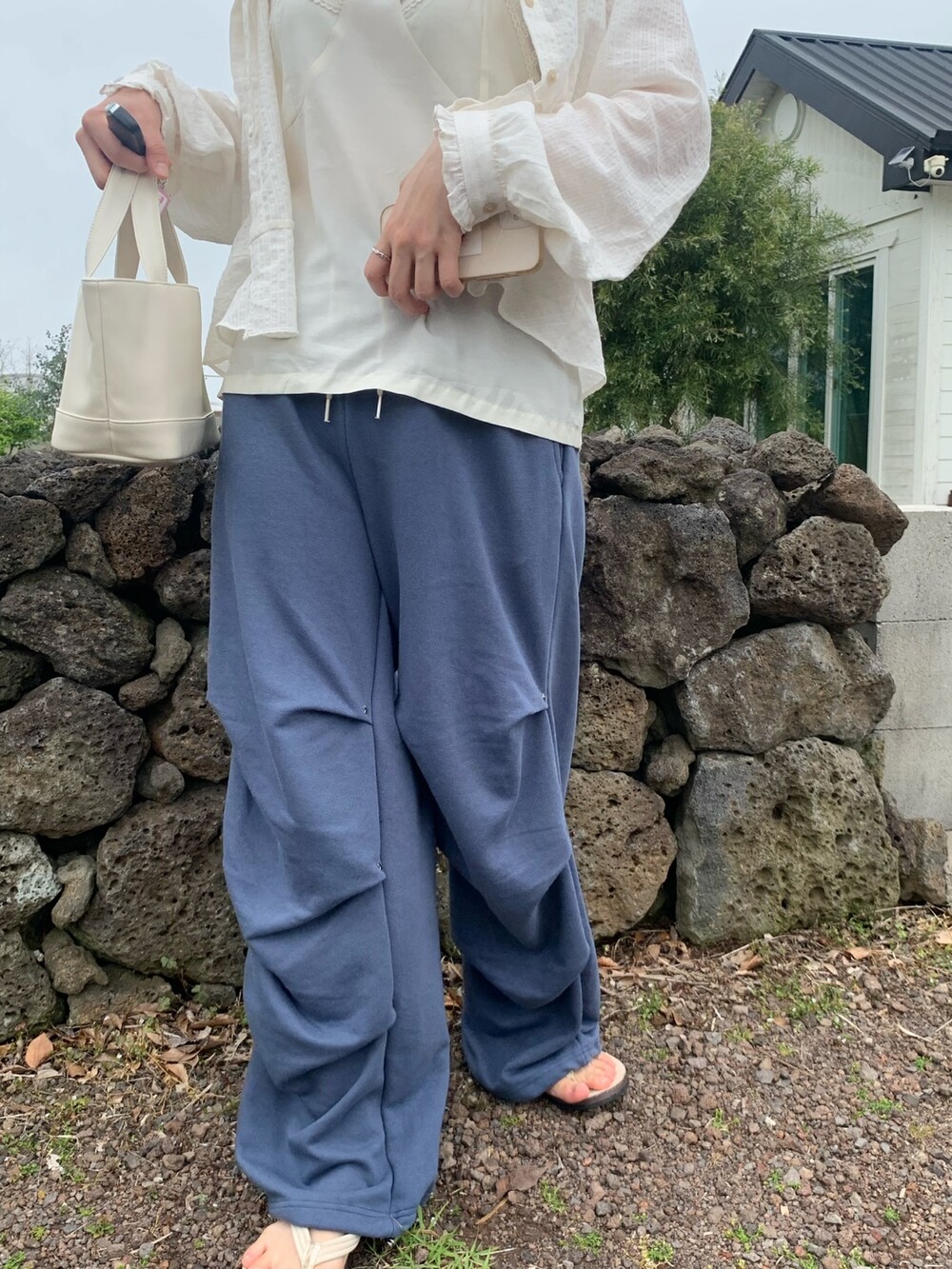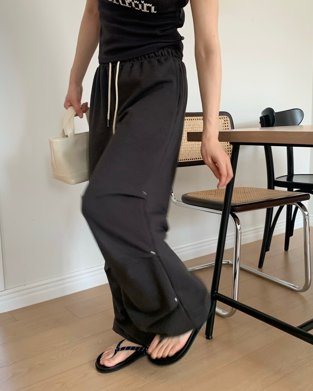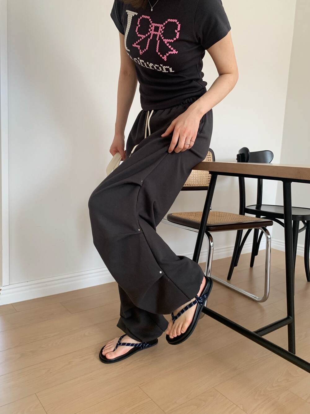 ☑️ 넉넉한 와이드 핏에 흐르듯이 떨어지는 라인의 조거 팬츠에요!