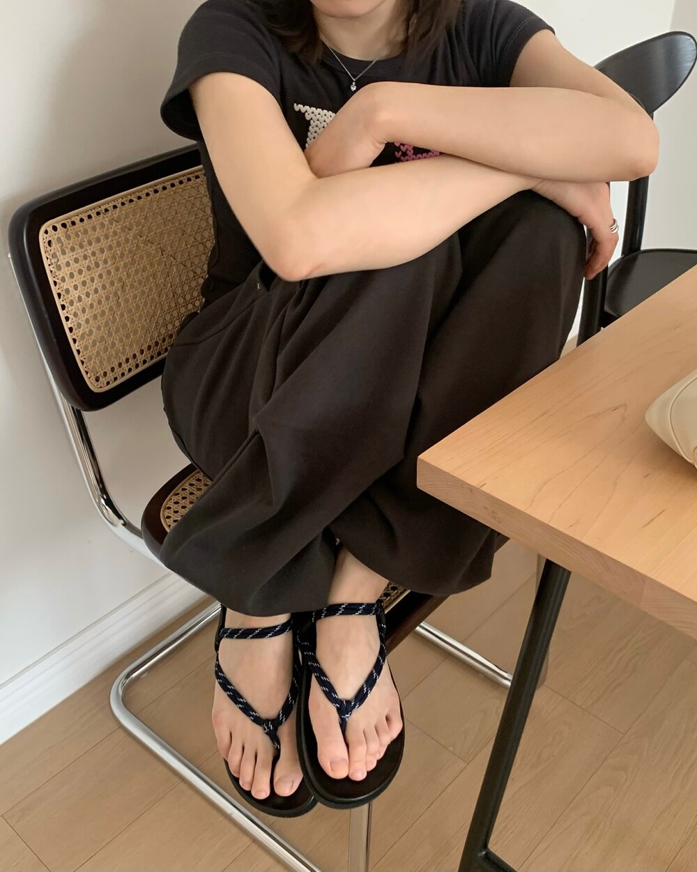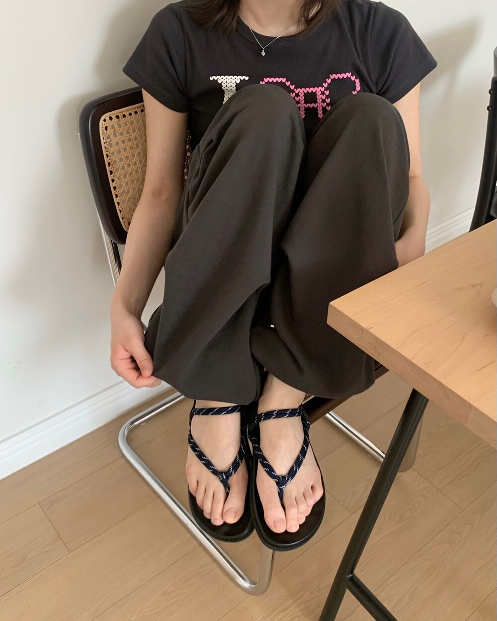 덕분에 상의는 기본 티셔츠 하나만 매치해도 전체적인 룩이