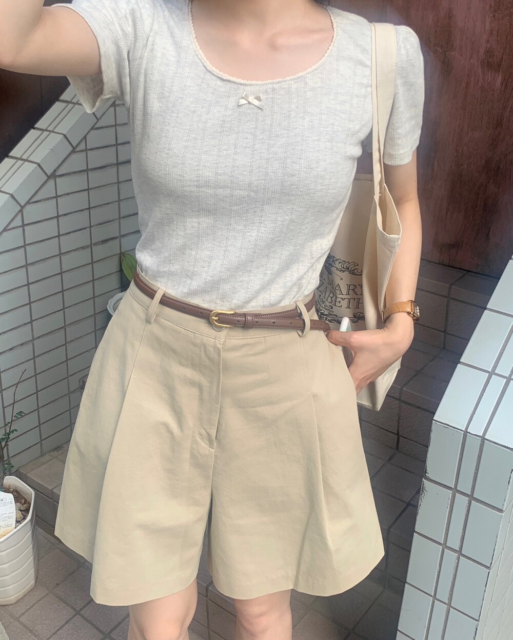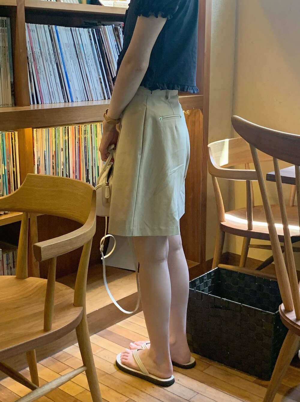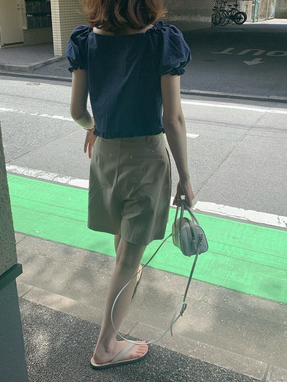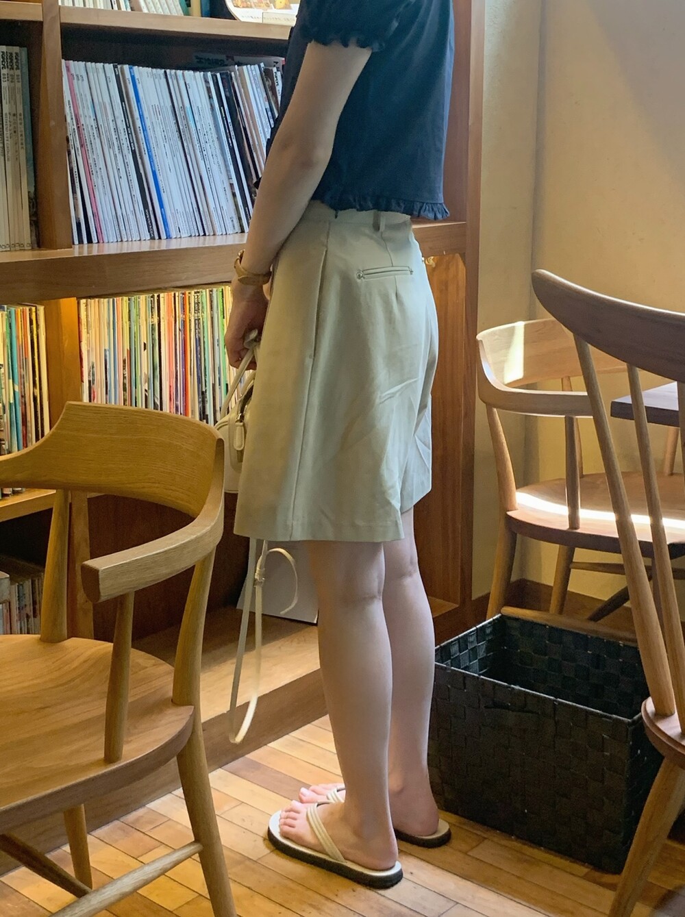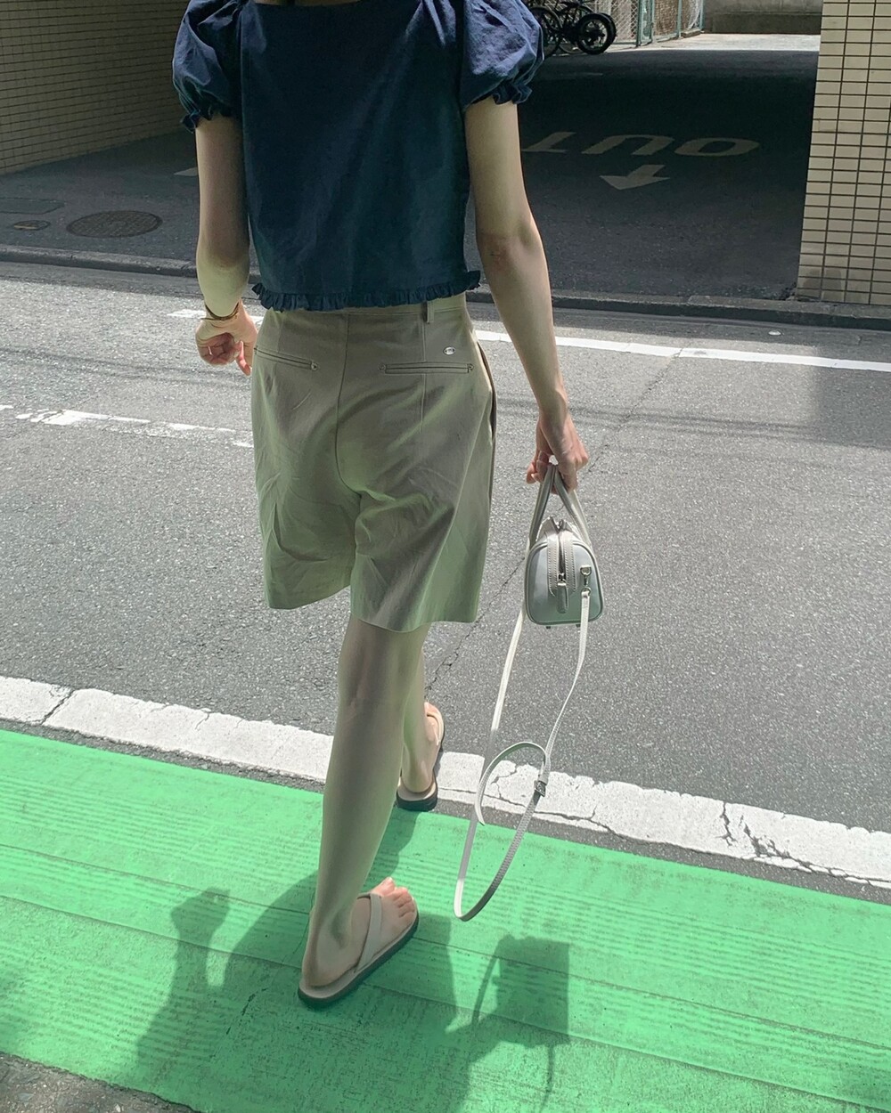 적당한 5부 기장에 은은하게 퍼지는 버뮤다 핏 팬츠에요.
