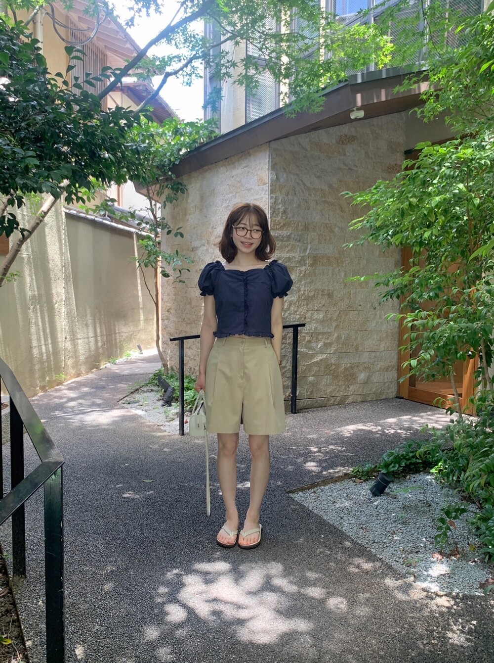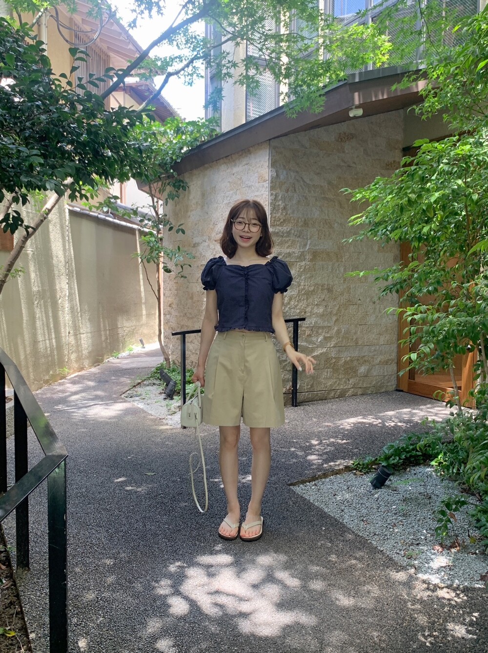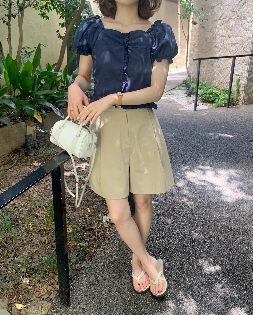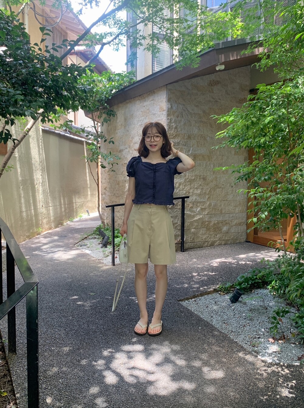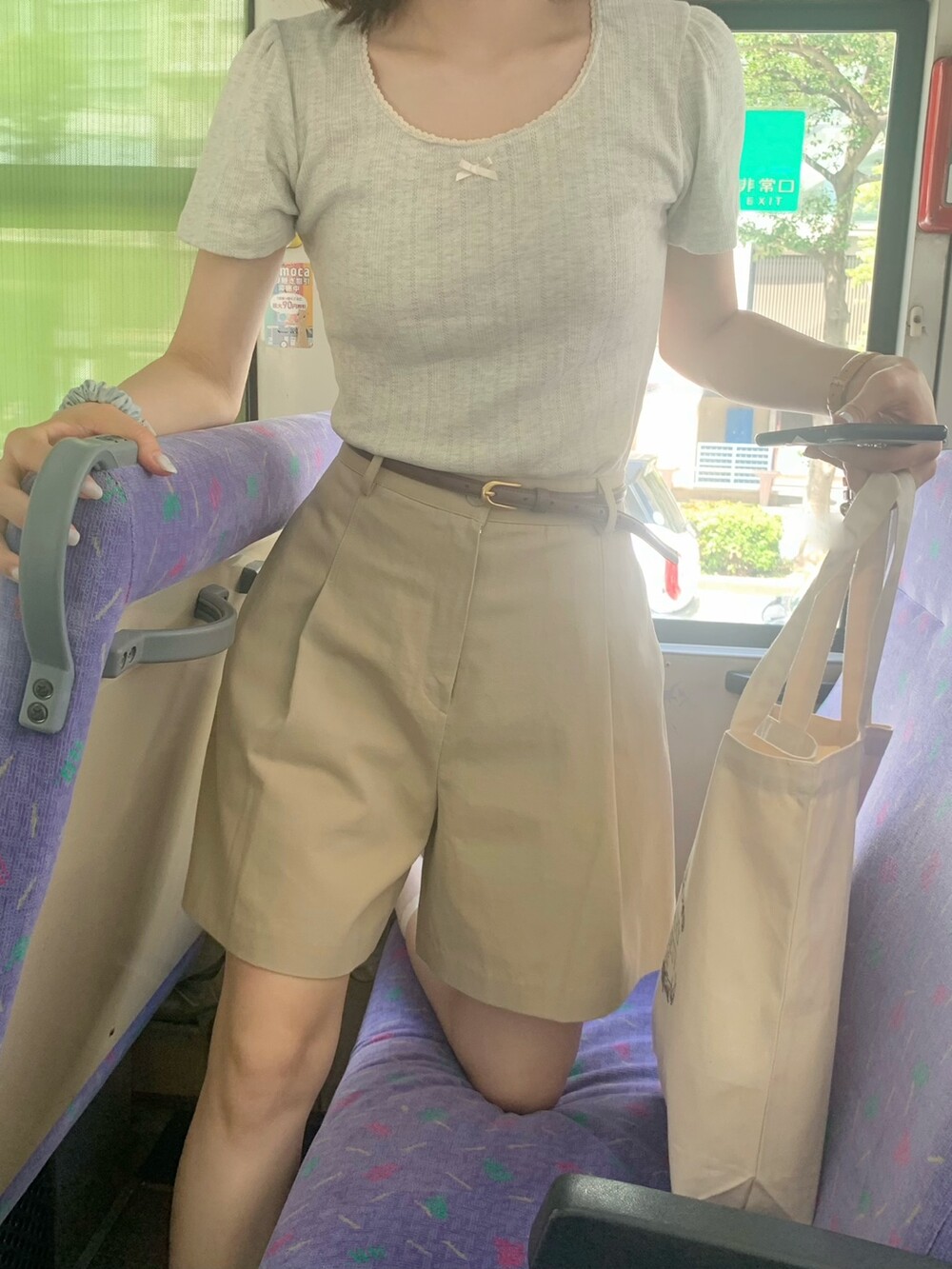적당한 5부 기장에 은은하게 퍼지는 버뮤다 핏 팬츠에요.