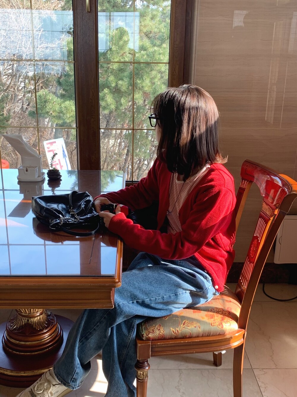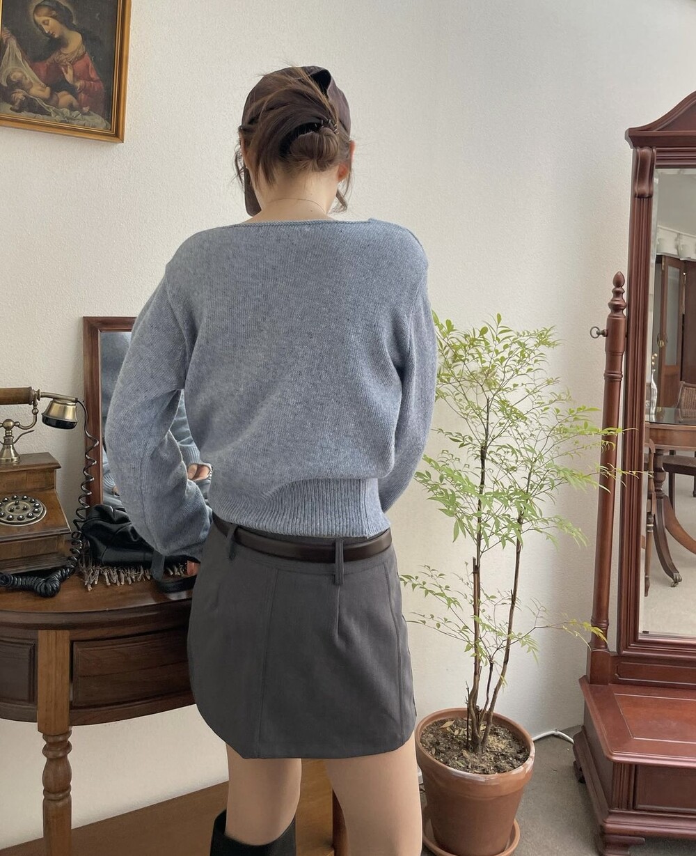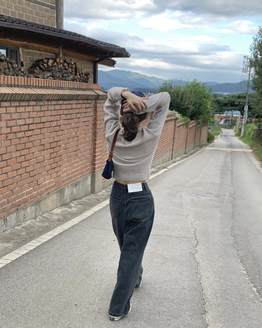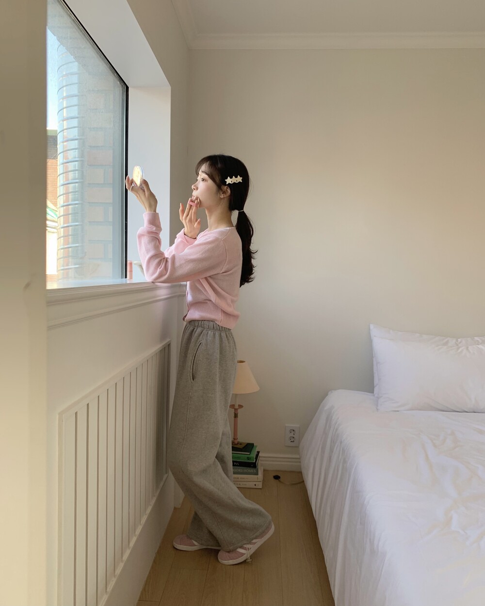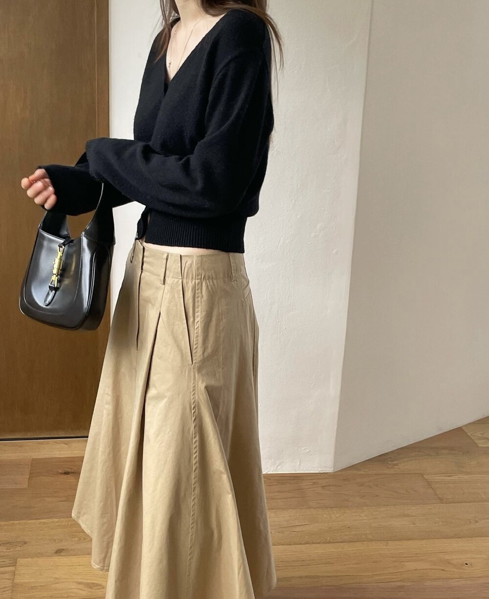 핏되는 느낌으로 착용되는 제품이었어요. 넥라인도 브이넥으로 떨어지면서