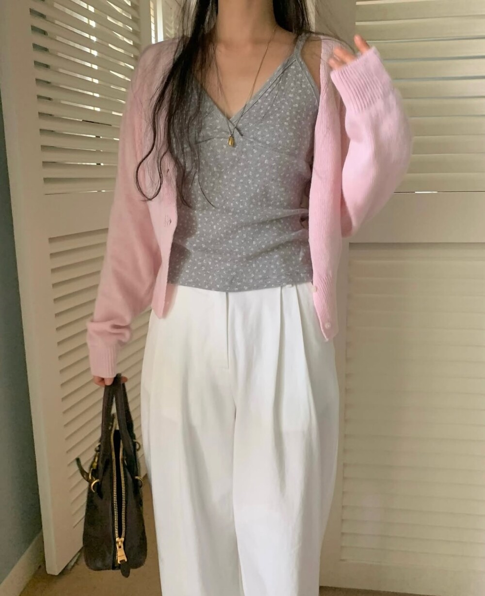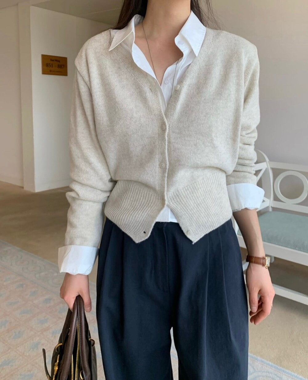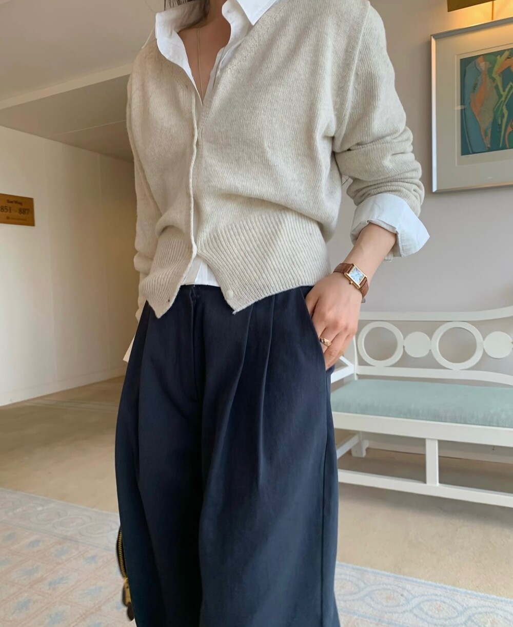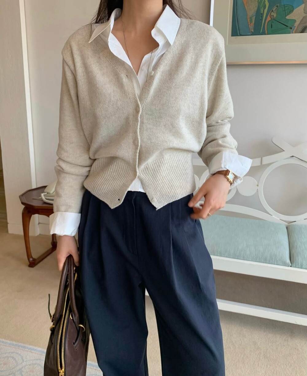 단독으로도 예쁘고, 가벼운 이너와 함께 매치하셔도 트렌디한 가디건이에요.