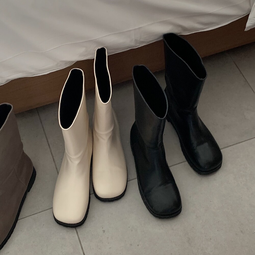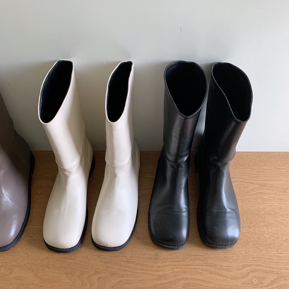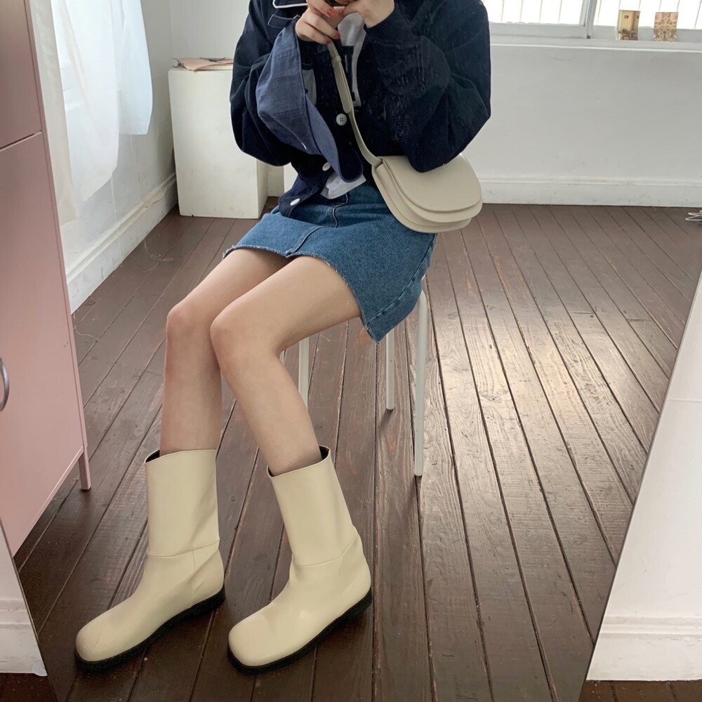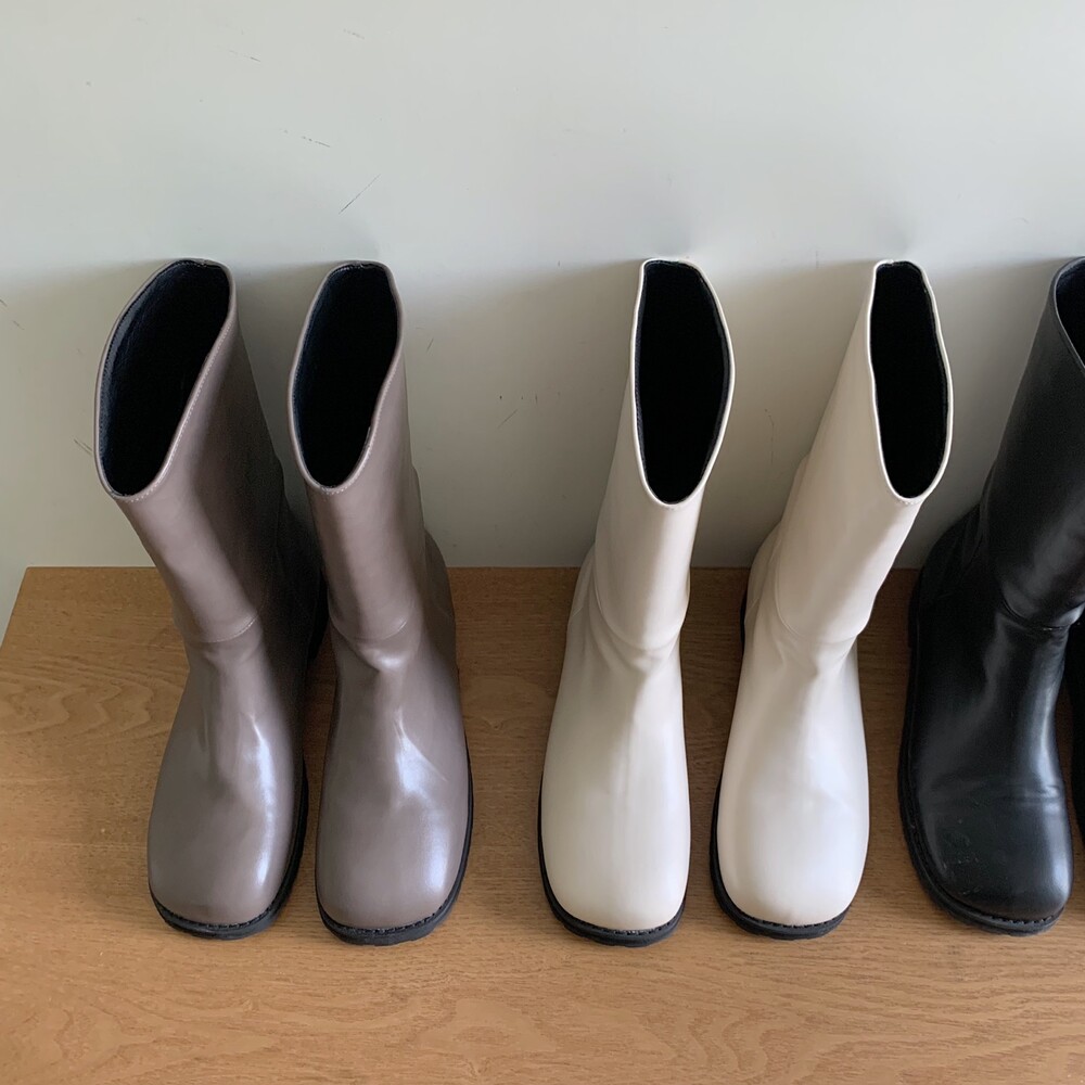 탄탄하고 적당히 힘있는 레더 소재로 높은 퀄리티가 느껴지는 미들부츠에요!