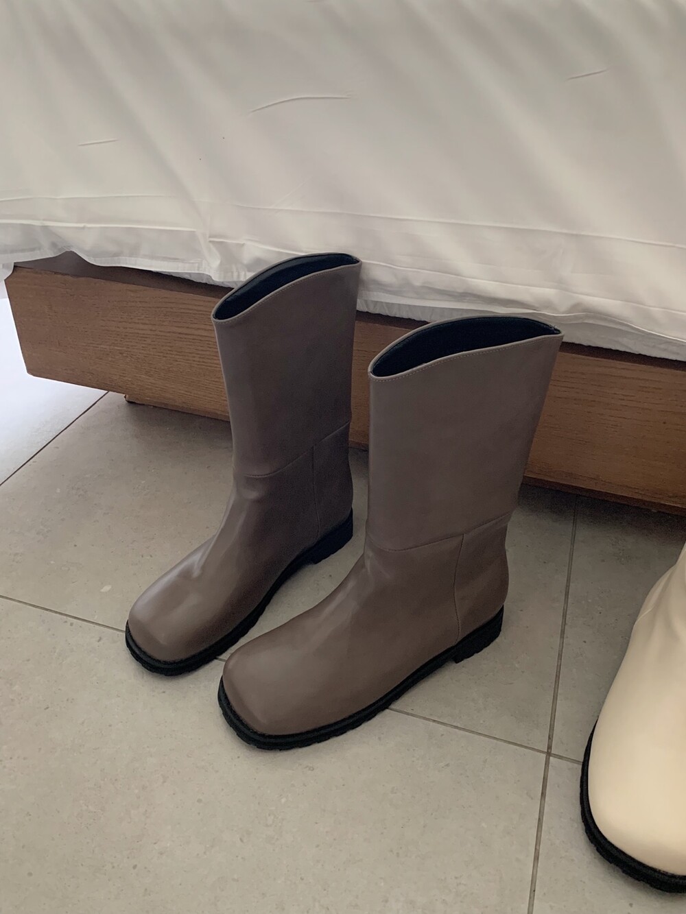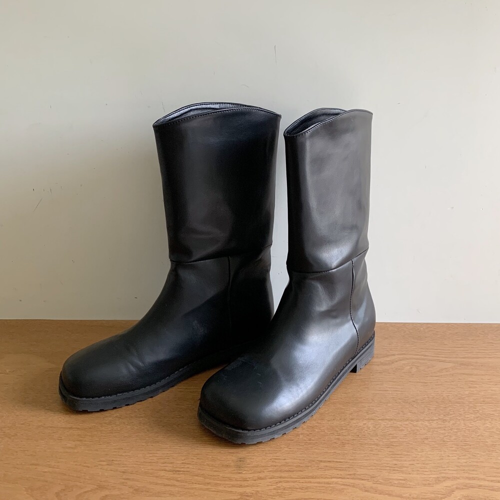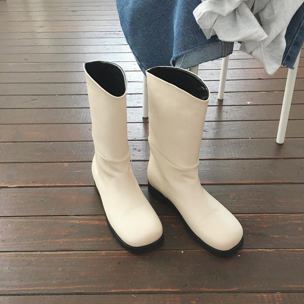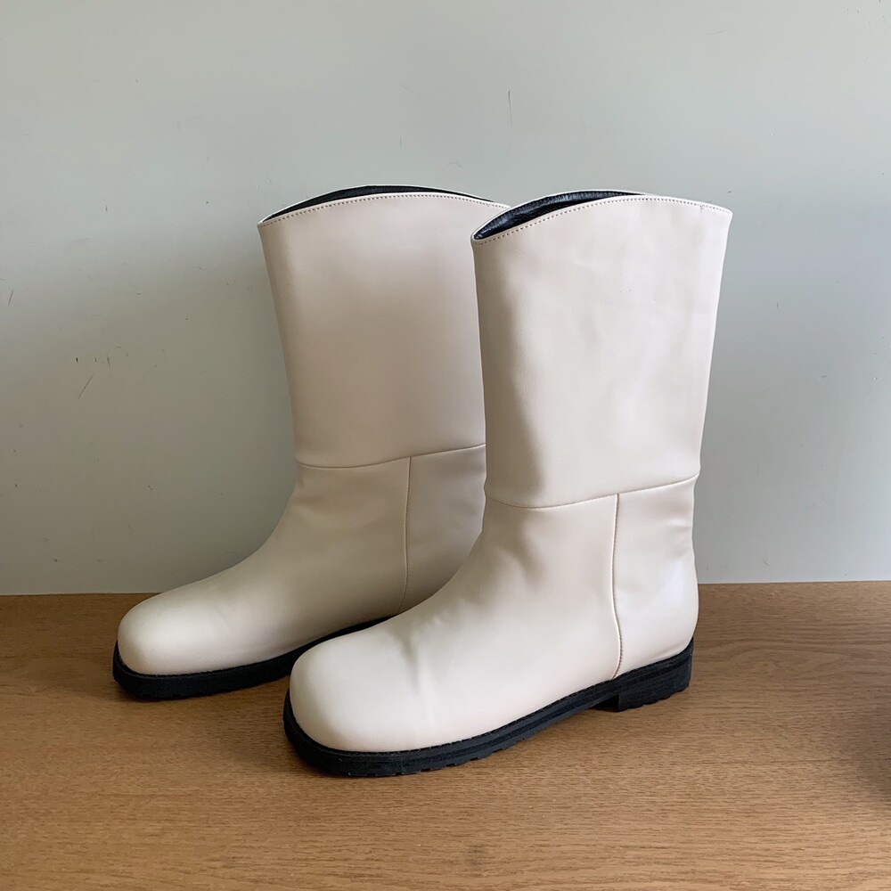 탄탄하고 적당히 힘있는 레더 소재로 높은 퀄리티가 느껴지는 미들부츠에요!