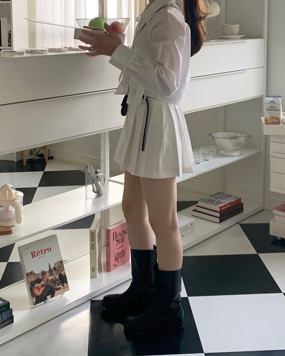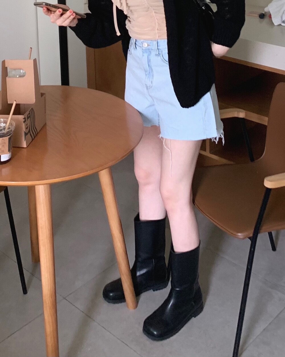 느껴지는 코디가 있더라구요. 그럴 때 요런 짧은 부츠를 살짝 매치해보면