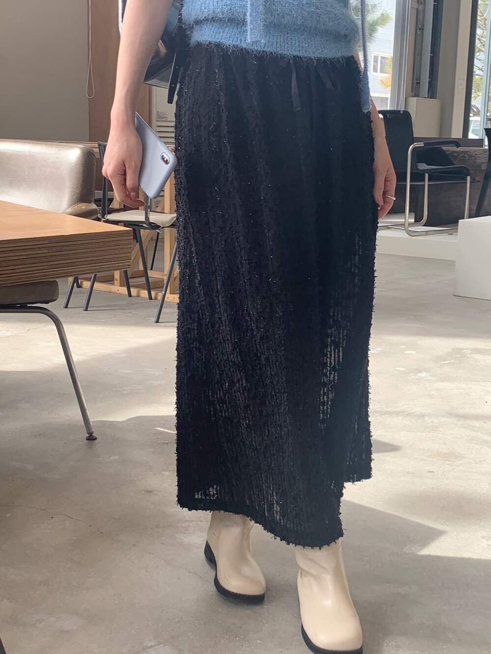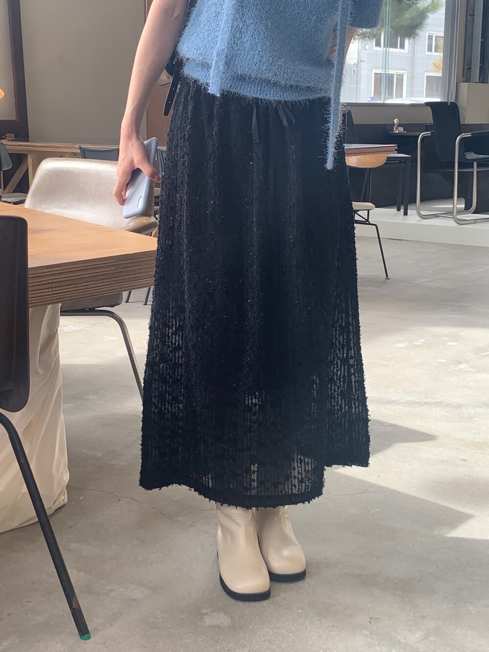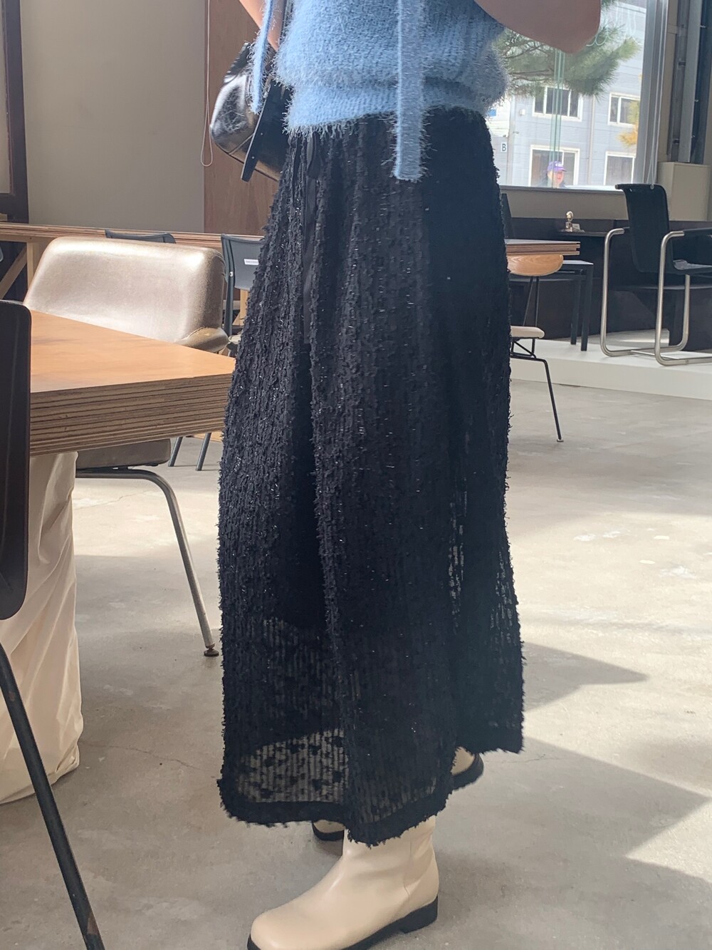 종아리 중간 정도까지 오는 하프 기장 덕분에 스커트나 반바지 등에도