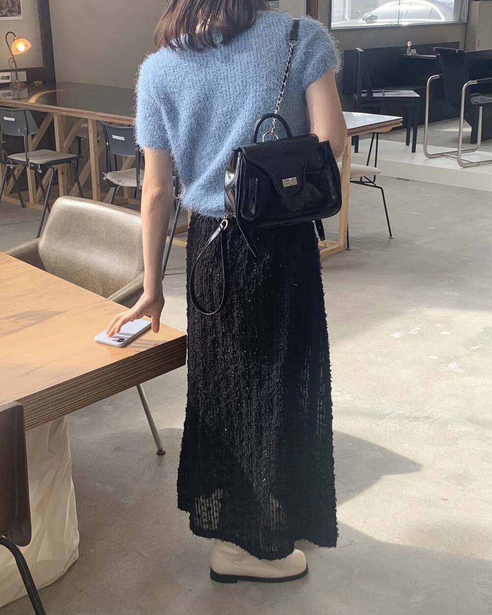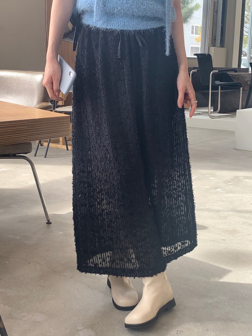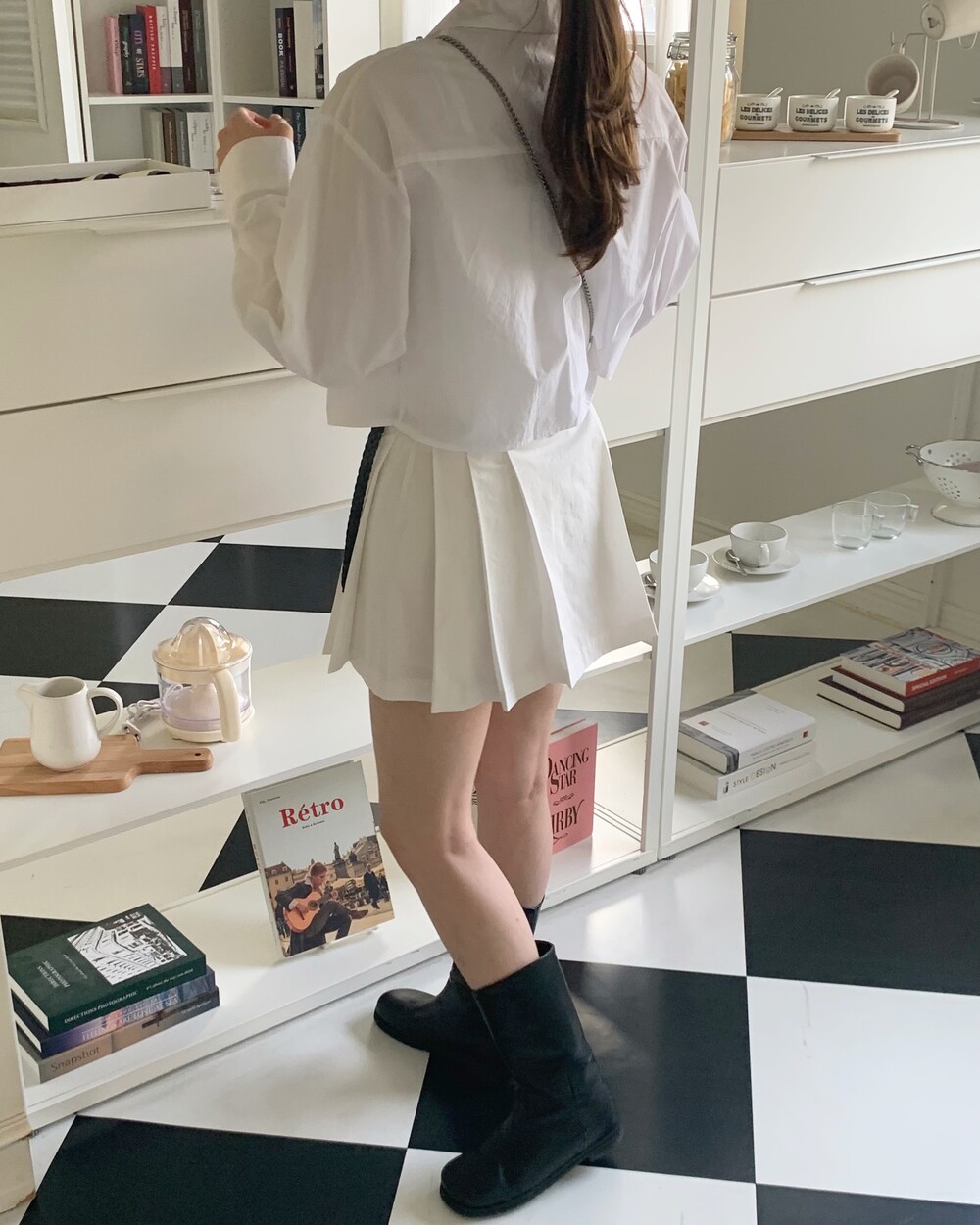 종아리 중간 정도까지 오는 하프 기장 덕분에 스커트나 반바지 등에도