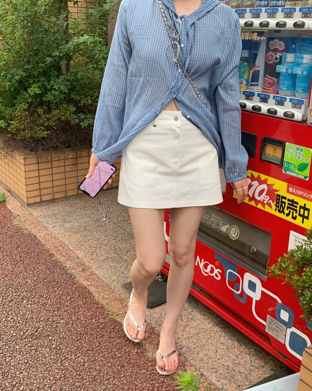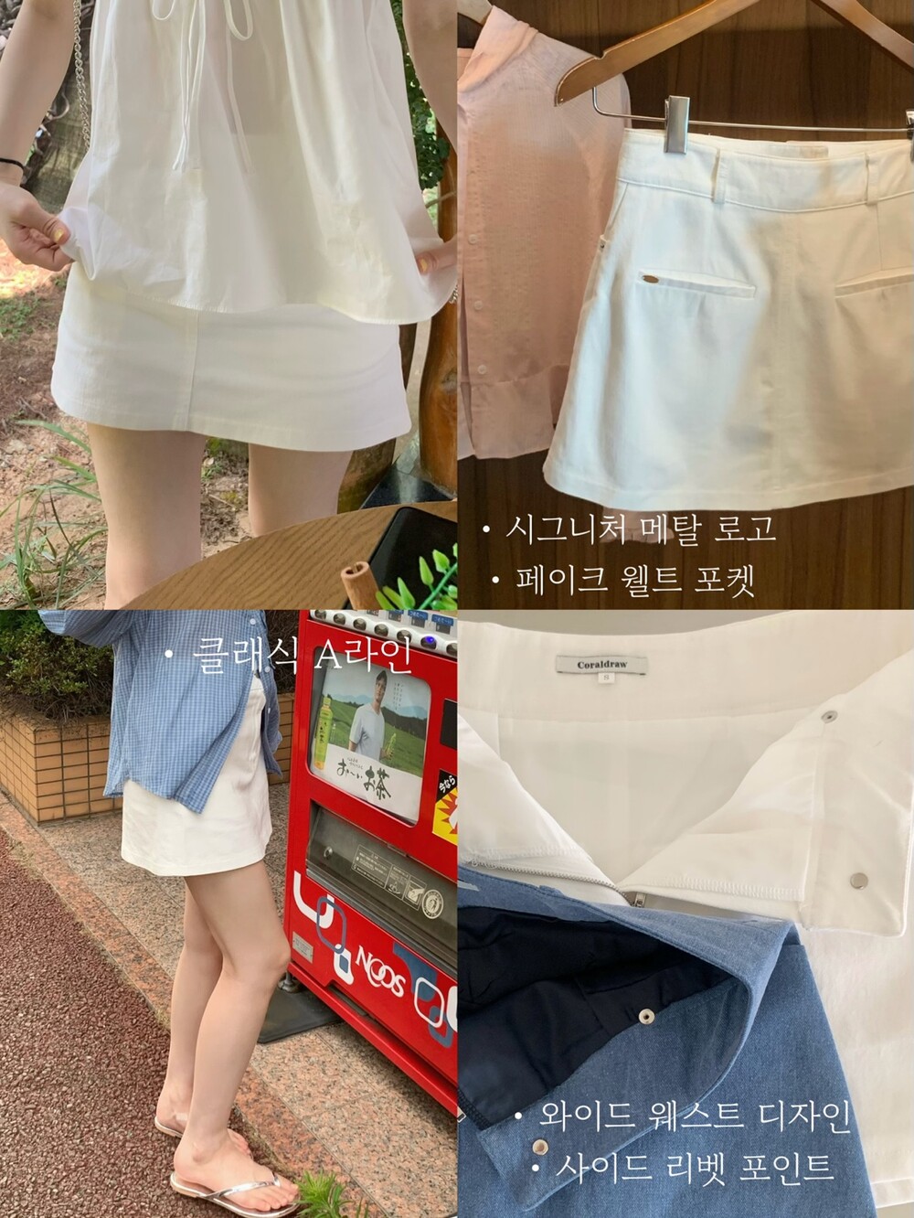 개인적으로 미니스커트는 애매하게 짧은 것 보다는 말 그대로 '미니' 그 자체인 기장일 때 각선미가 가장 시원해보이고, 전체적인 실루엣도 길쭉해 지더라구요. 떨어지는 핏은 심플하고 클래식한 A라인 형태에 경쾌하게 쳐 낸 기장으로 다리가 길고 슬림해 보이는 효과를 주어요. 이건 정말 입어보셔야 하는데... 입어보시는 순간 비율이 확 보정되는 효과를 확실히 느끼실 수 있을거에요 (ღ•͈ᴗ•͈ღ)
