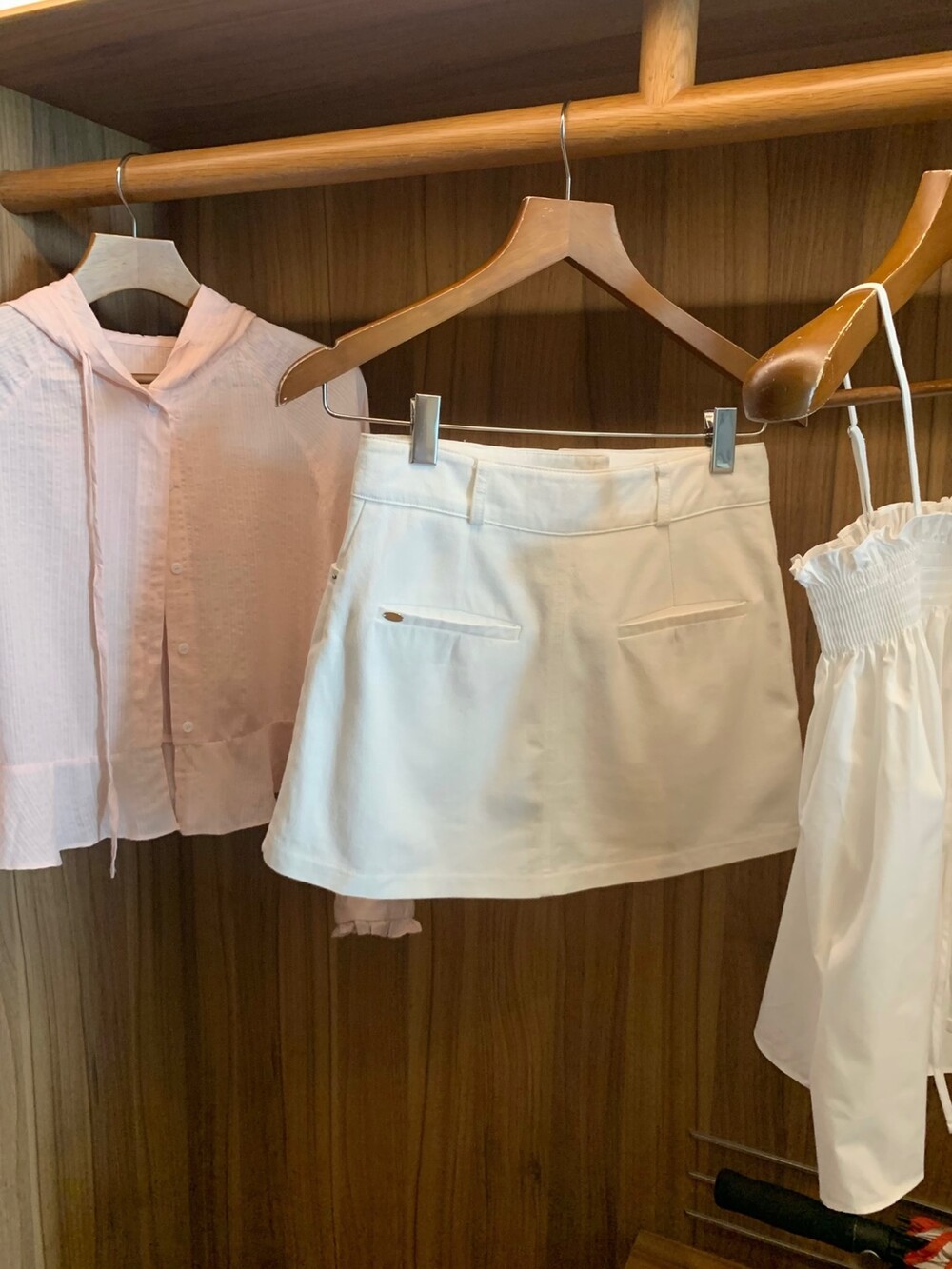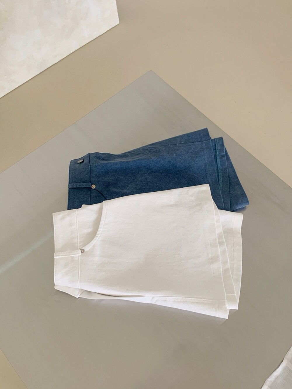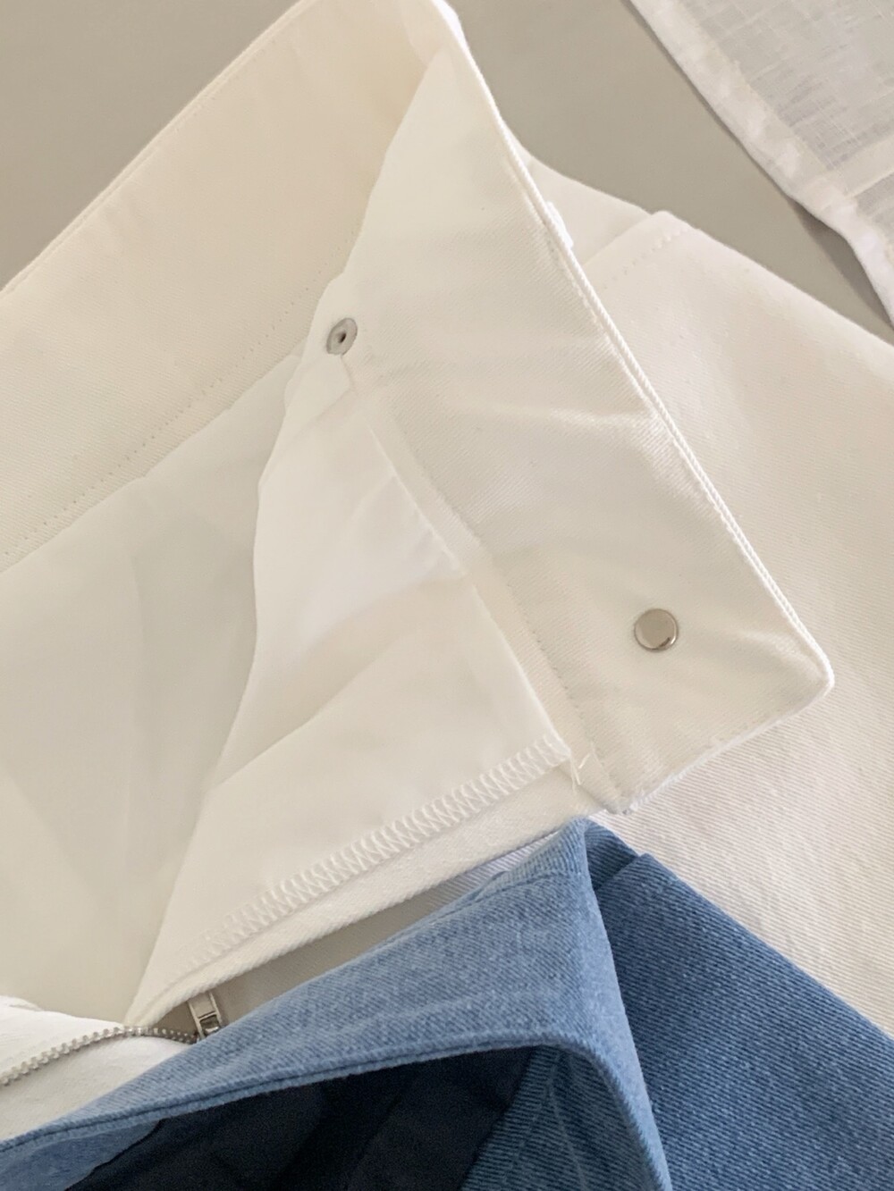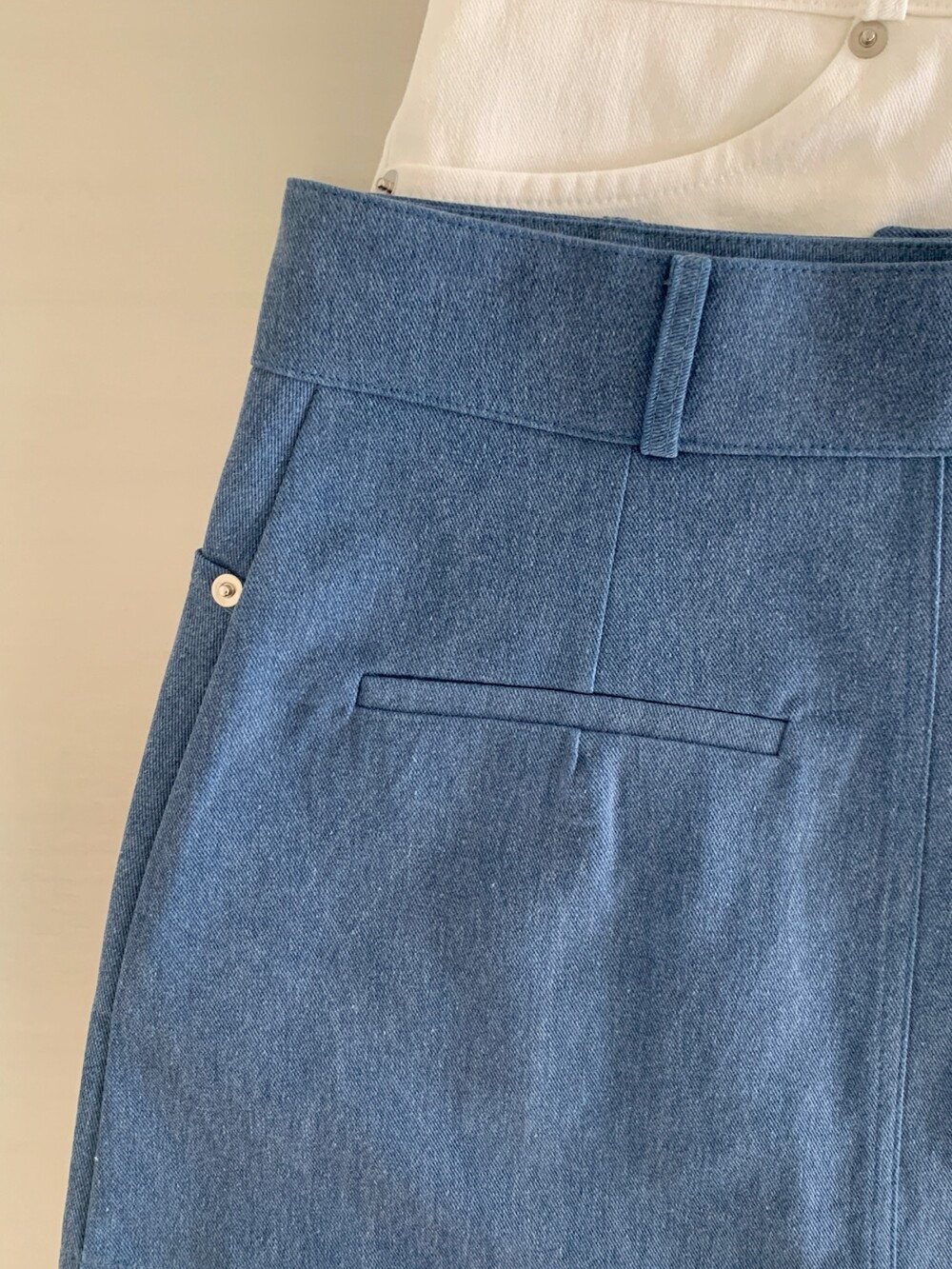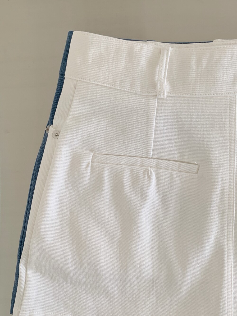 뒷 면은 느낌만 살려준 페이크 포켓 디테일인데 일단 저는 요런 미니sk/숏츠류는 뒷 포켓이 없으면 그렇게 밋밋하더라구요. 입체감 있는 네모난 형태의 절개를 넣어 실루엣은 해치지 않으면서 구조적인 밸런스를 더해주는 역할로 추가해주었어요. (완전만족)
