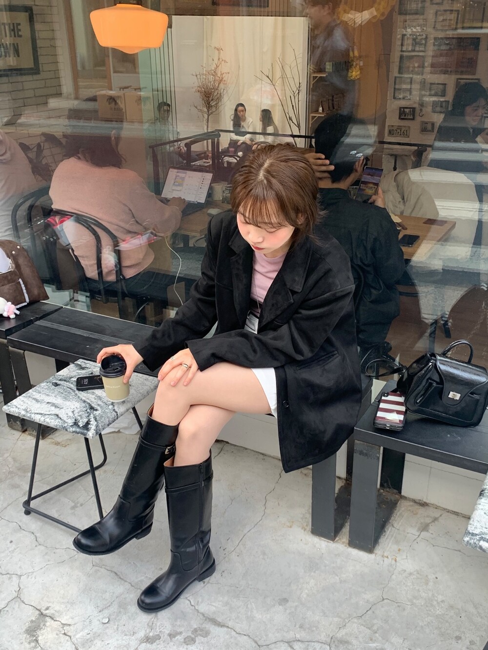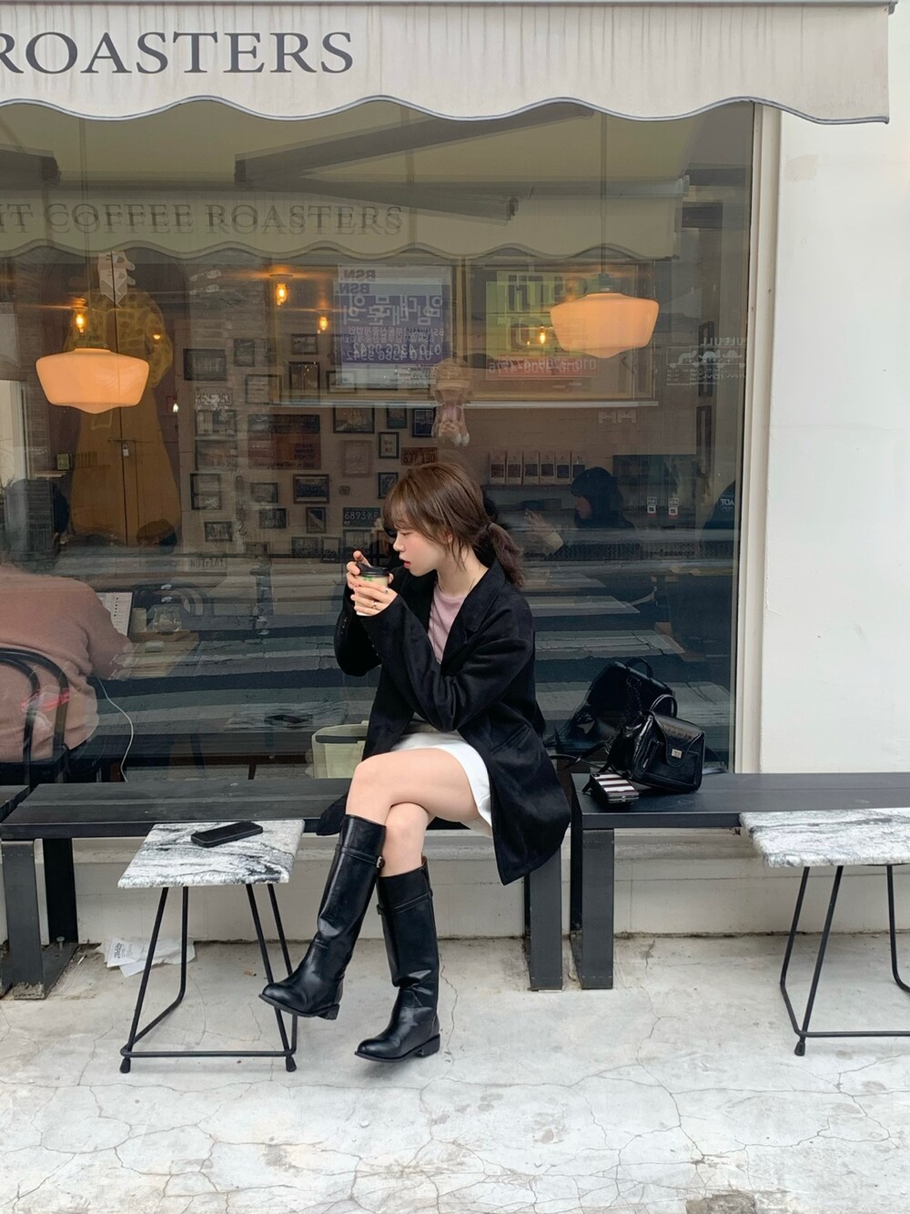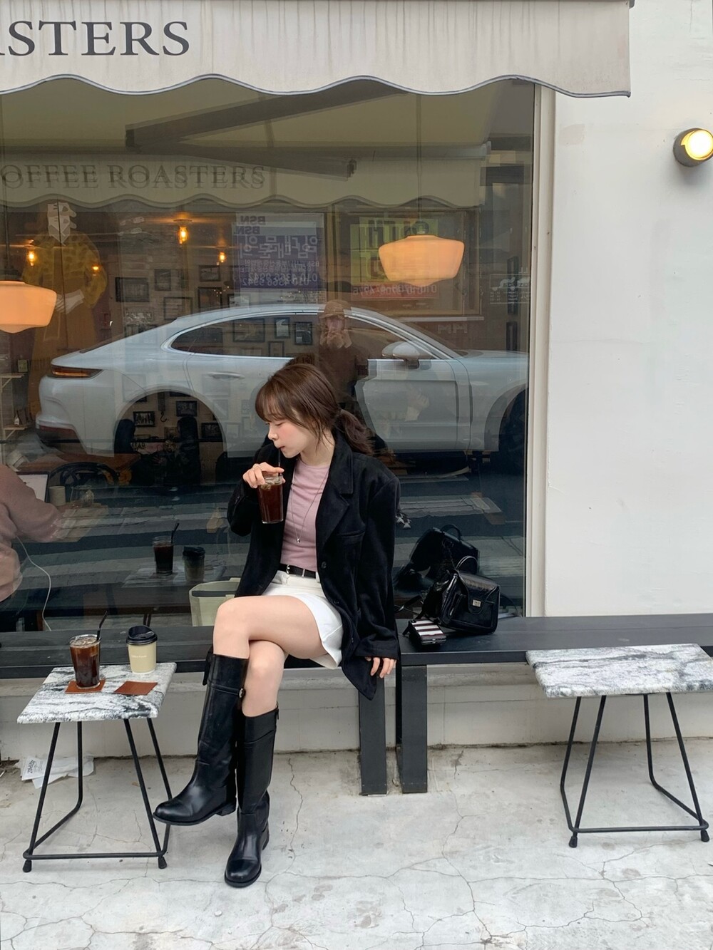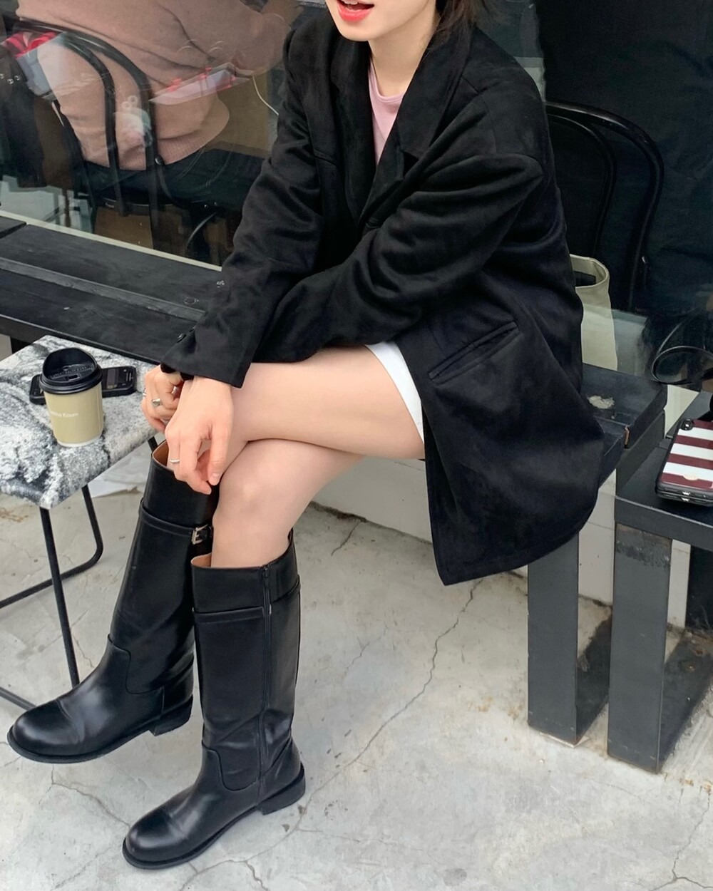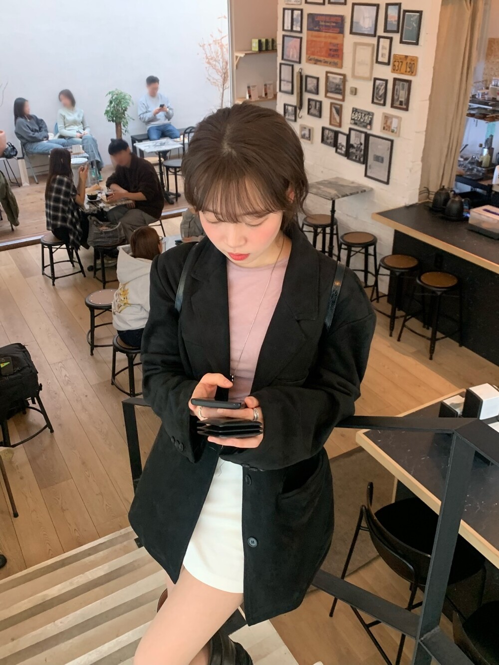 요즘 느낌 좋은 언니들이라면 하나쯤은 가지고 있는 아이템인데요 ㅎㅎ 스웨이드 자켓을 구매할 때 가장 따져보고 구매하셔야 할 제품이 바로 재질입니다! ☆혼용률이 아닌 정말 눈으로,손으로 느껴지는 텍스처요☆ 물론 실패 없는 구매를 위해서 제가 대신 꼼꼼히 따져서 셀렉해 온 제품이기도 한데요ㅎㅎ 재질이 자칫 빳빳하거나, 인위적인 광이 도는게 눈에 보이는 순간! 싼티 나 보이는 자켓 되기 쉽상이거든요? 그만큼 스웨이드 제품은 원단이 가장 중요하답니다! 이 제품은 광택감이 돌지 않고 손끝으로도 느껴지는 부드럽고 유연한 감촉이 정말 장점이에요. 매끄러운 원단 덕분에 착용했을 때 몸에 자연스럽게 흐르는 핏이 두배로 멋스러운 분위기를 이끌어내주더라구요 ♡