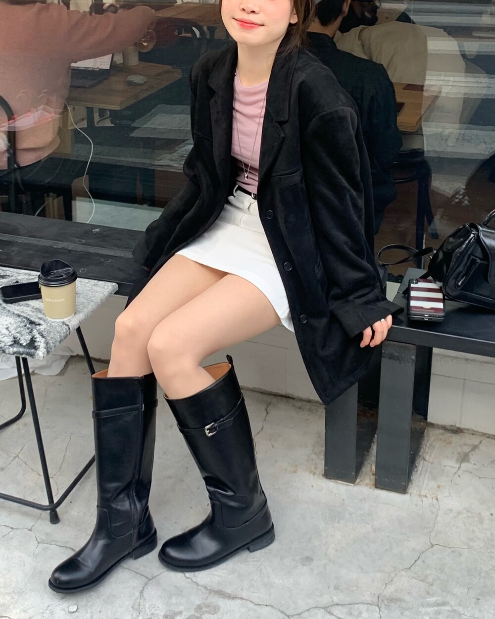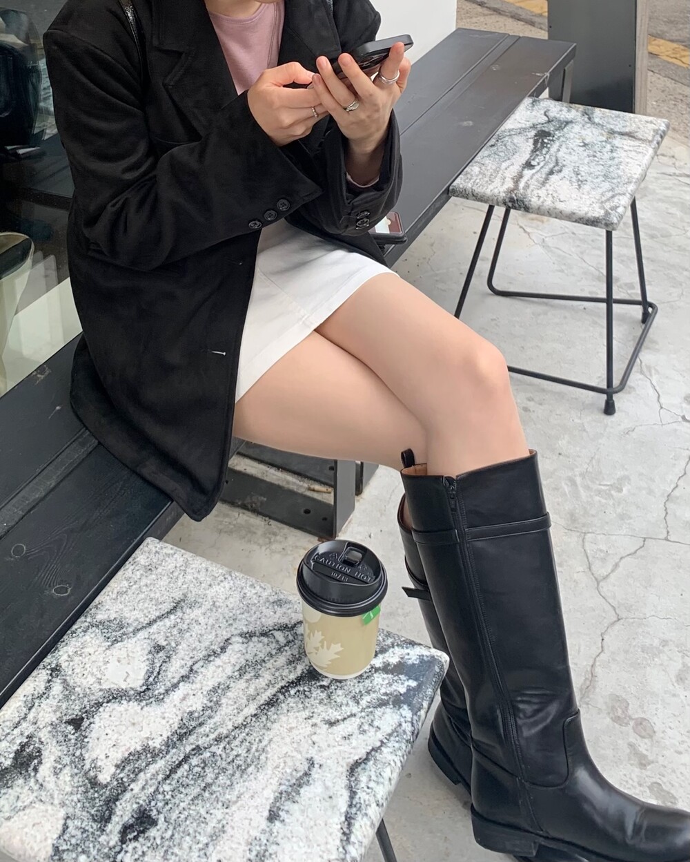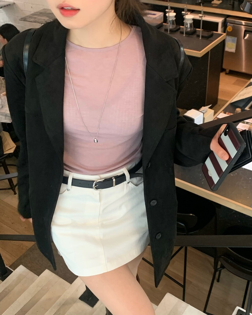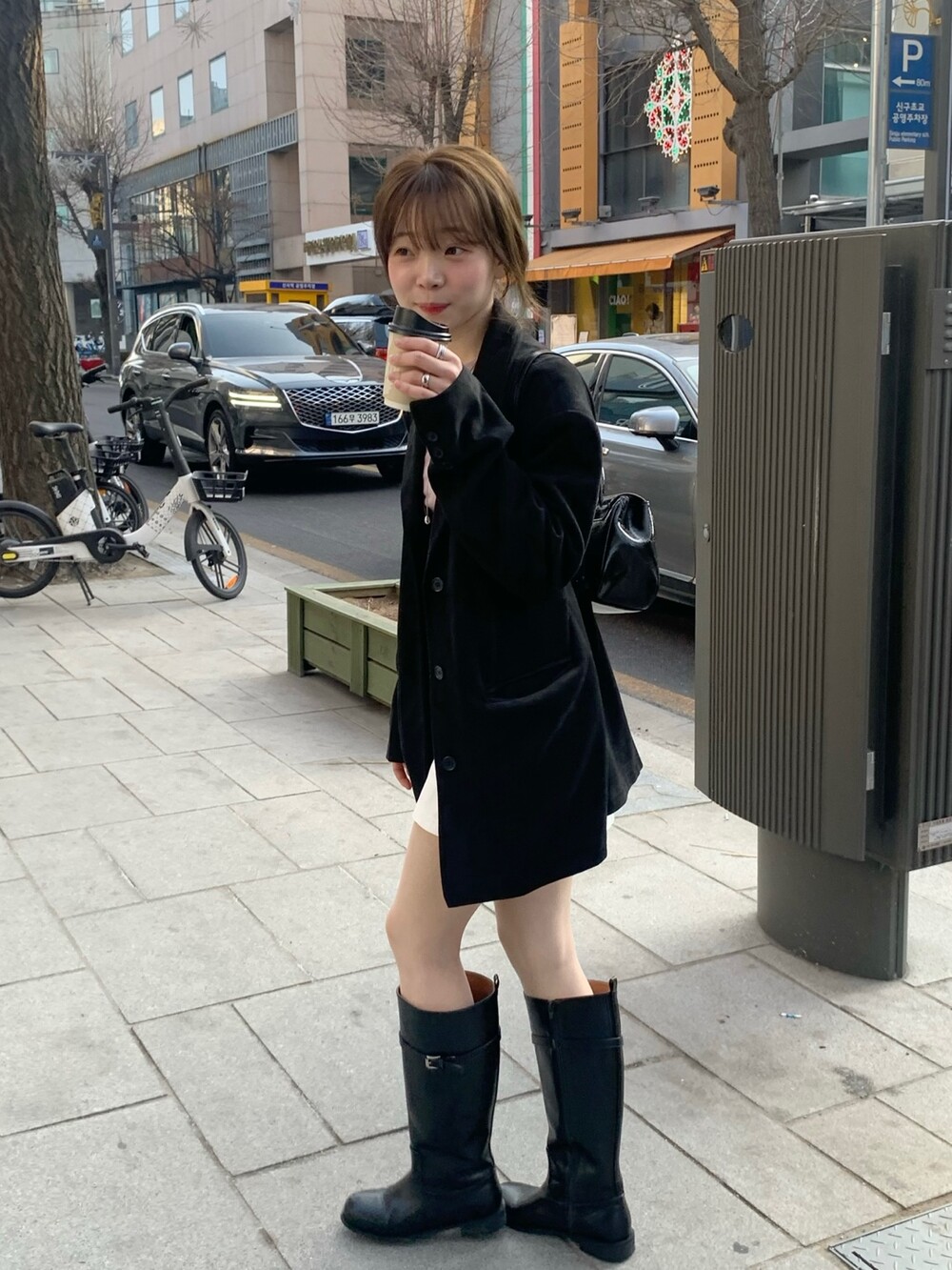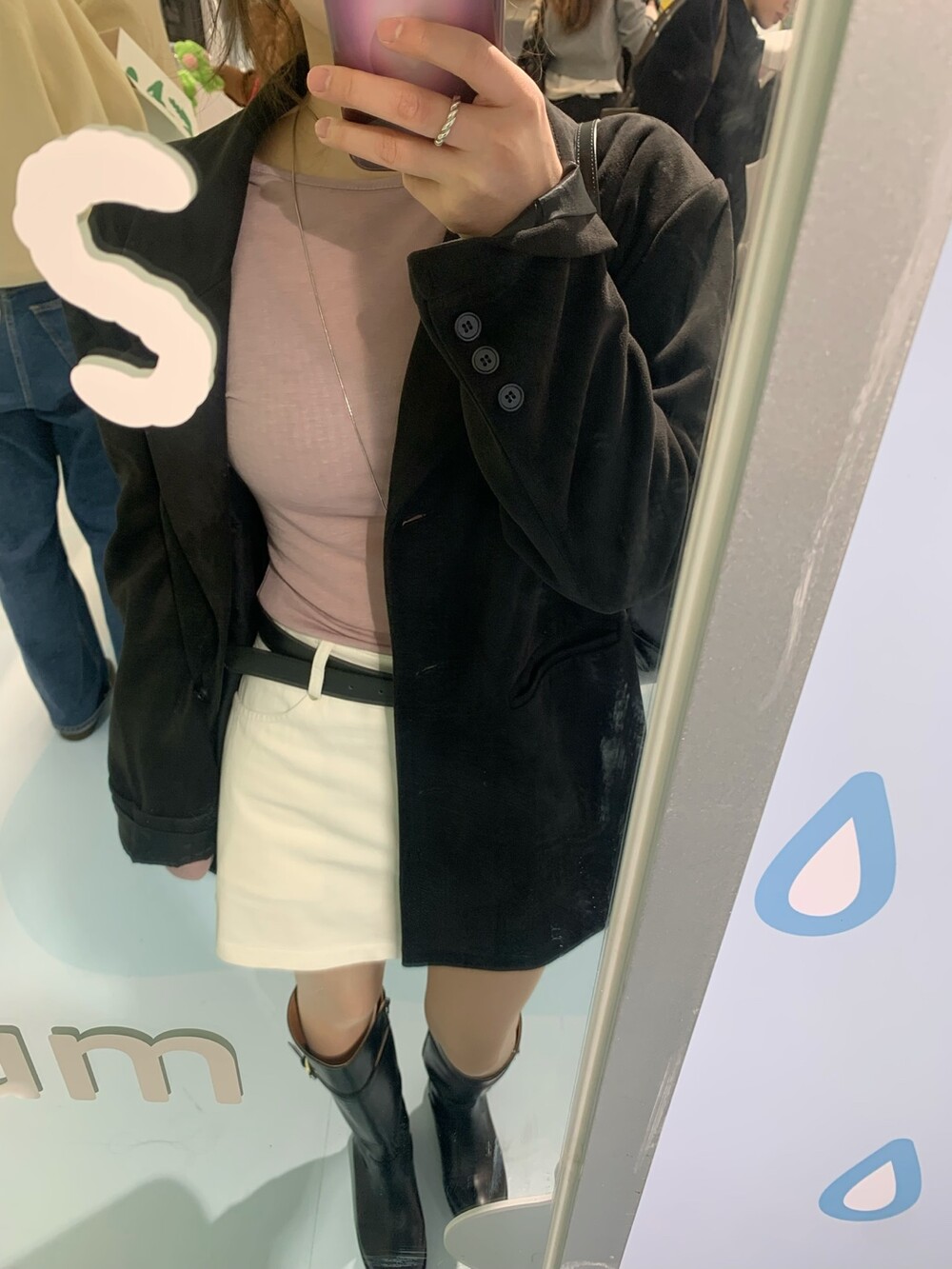 요즘 느낌 좋은 언니들이라면 하나쯤은 가지고 있는 아이템인데요 ㅎㅎ 스웨이드 자켓을 구매할 때 가장 따져보고 구매하셔야 할 제품이 바로 재질입니다! ☆혼용률이 아닌 정말 눈으로,손으로 느껴지는 텍스처요☆ 물론 실패 없는 구매를 위해서 제가 대신 꼼꼼히 따져서 셀렉해 온 제품이기도 한데요ㅎㅎ 재질이 자칫 빳빳하거나, 인위적인 광이 도는게 눈에 보이는 순간! 싼티 나 보이는 자켓 되기 쉽상이거든요? 그만큼 스웨이드 제품은 원단이 가장 중요하답니다! 이 제품은 광택감이 돌지 않고 손끝으로도 느껴지는 부드럽고 유연한 감촉이 정말 장점이에요. 매끄러운 원단 덕분에 착용했을 때 몸에 자연스럽게 흐르는 핏이 두배로 멋스러운 분위기를 이끌어내주더라구요 ♡