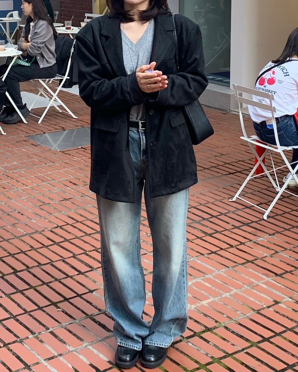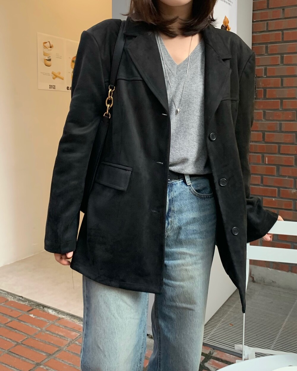 스웨이드 특유의 세련된 매력을 살리면서도 부담없이 데일리하게 입을 수 있는 최적의 아우터가 아닐까 싶어요! 클래식한 테일러드 카라와 쓰리 버튼 디테일로 모던하면서도 트렌디한 분위기를 느끼실 수 있구요. 루즈한 오버핏 실루엣으로 자연스럽게 체형 보완에도 효과적일 뿐더러, 이 자켓을 입을 때면 참 사람 이미지가 차분해보이고 매력있는 뉘앙스를 표현해주더라구요... 저는 두 컬러 다 소장했을 만큼 정말 애정하는 아우터인데요! 실패없는 간절기 아우터로 '누구에게나' 추천드리고 싶은 아이템이에요. 이 느좋 아우터를 꼭 같이 경험해주셨으면.. ( ´╹ᗜ╹`*)
