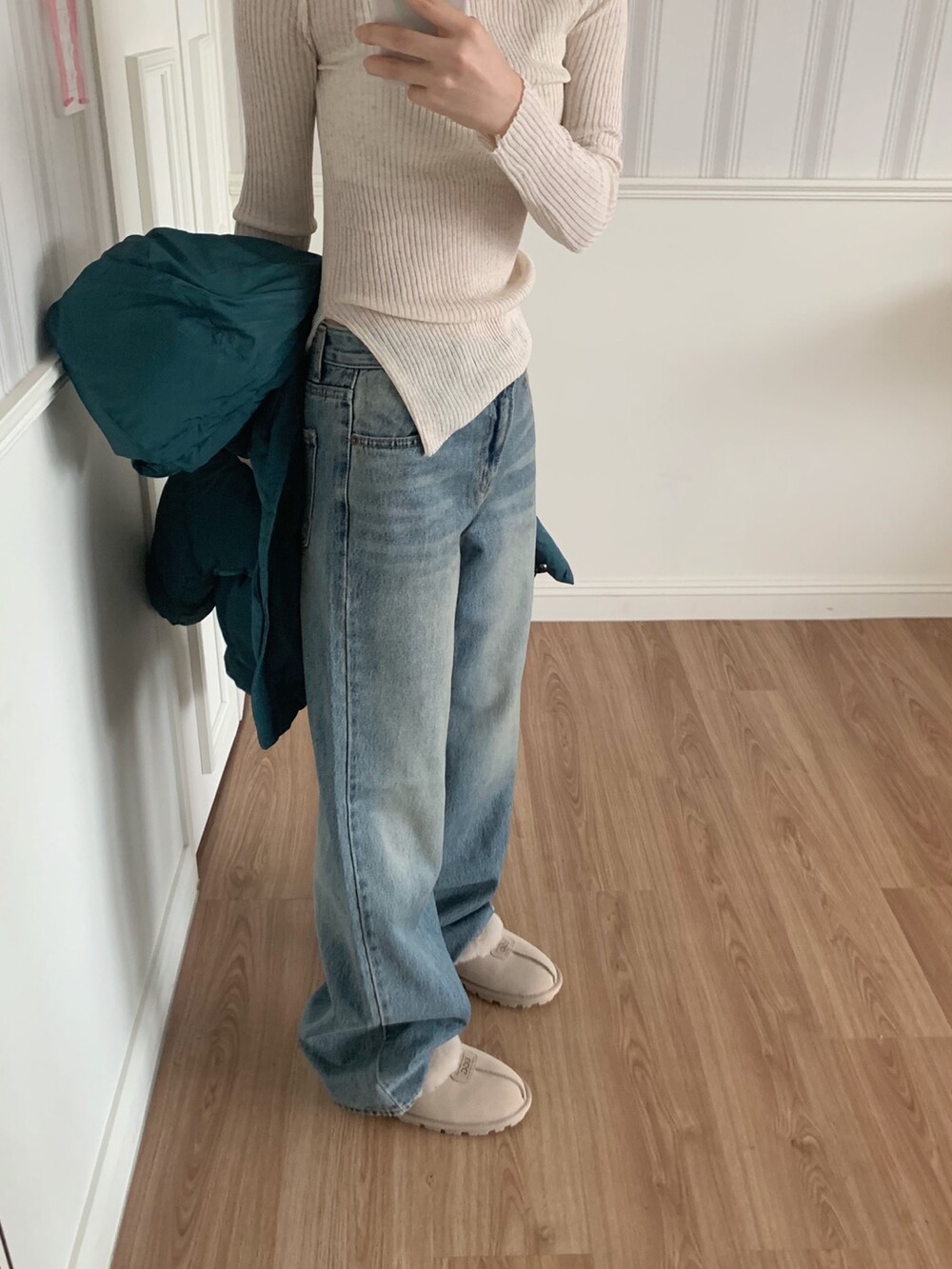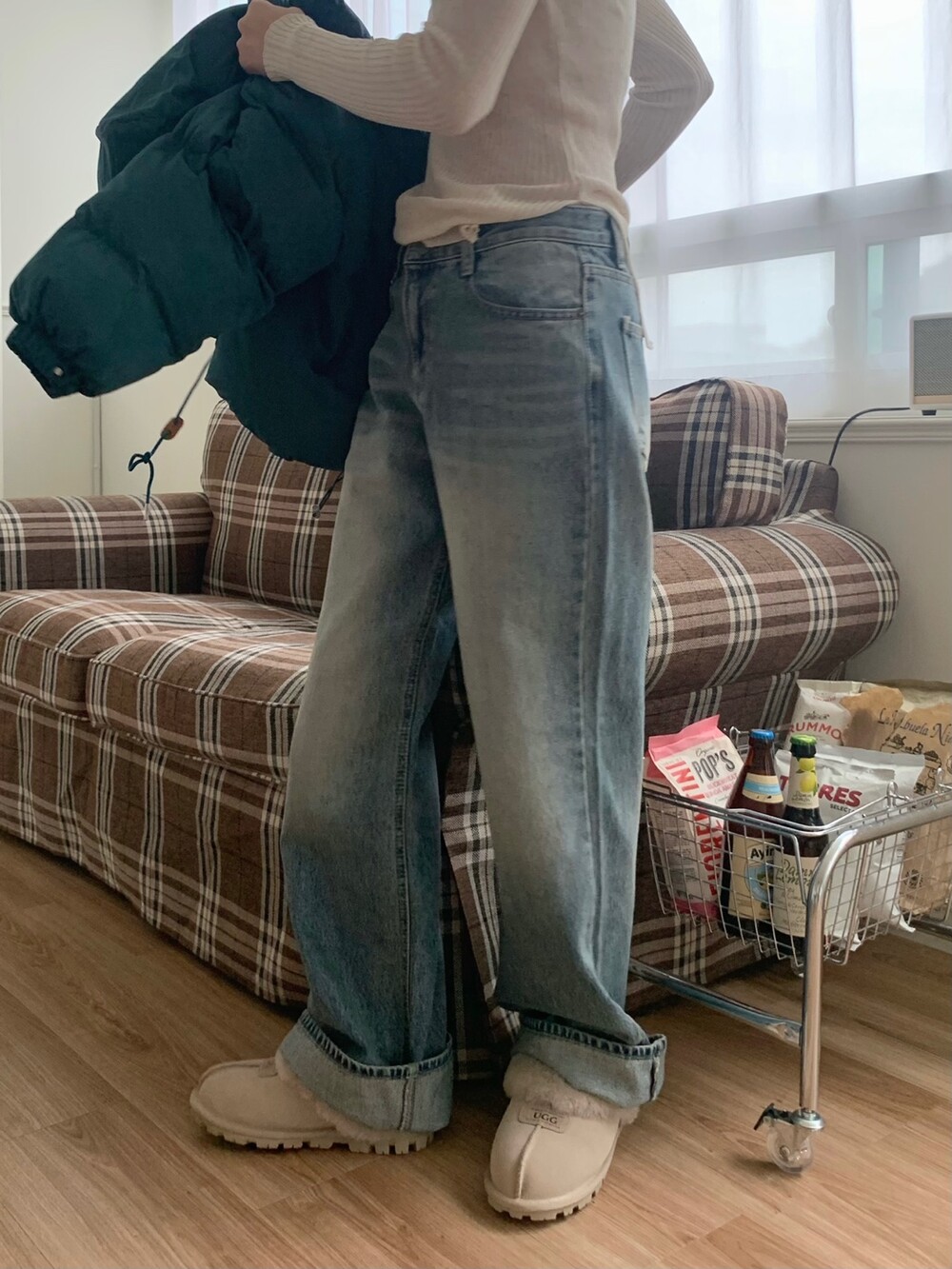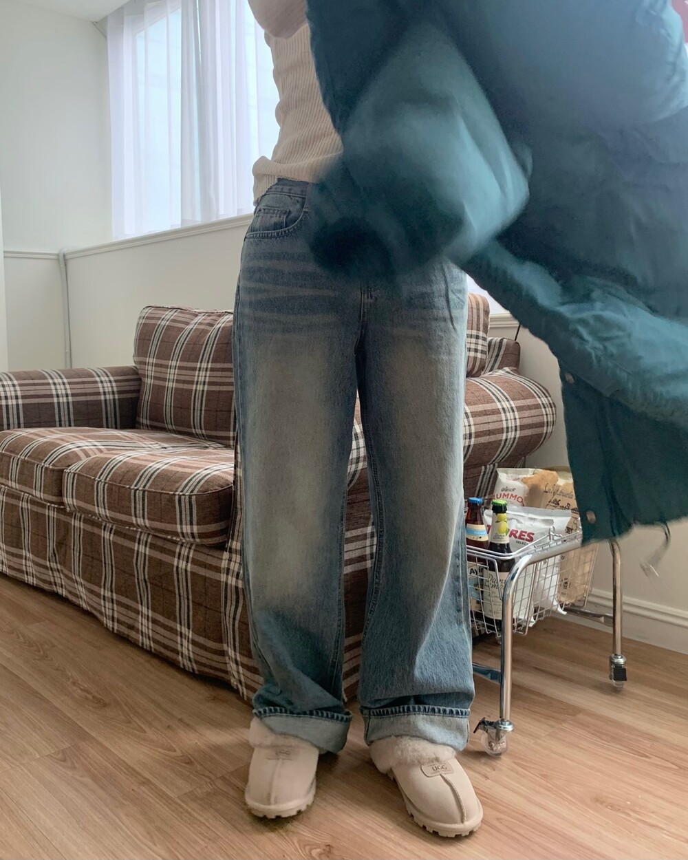 넉넉한 일자 와이드 핏으로 로퍼/어그 등과 부담 없이 편안하게 즐기기 좋고,