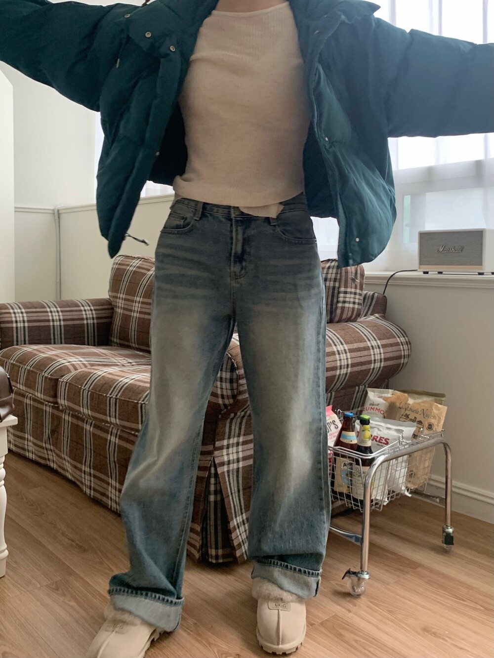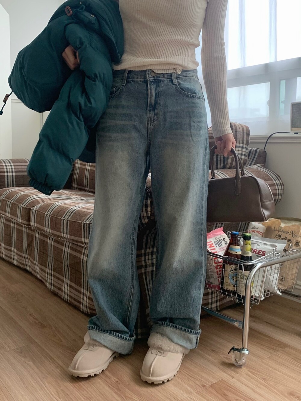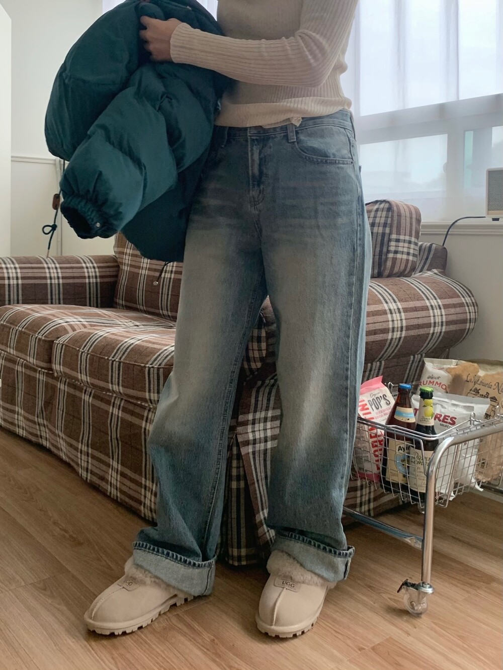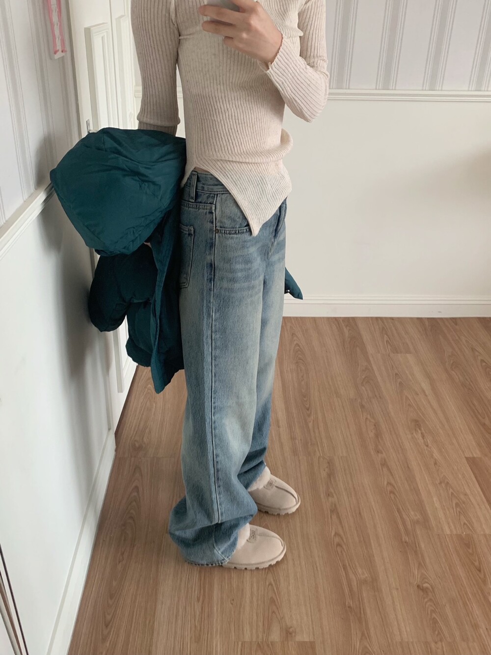 넉넉한 일자 와이드 핏으로 로퍼/어그 등과 부담 없이 편안하게 즐기기 좋고,