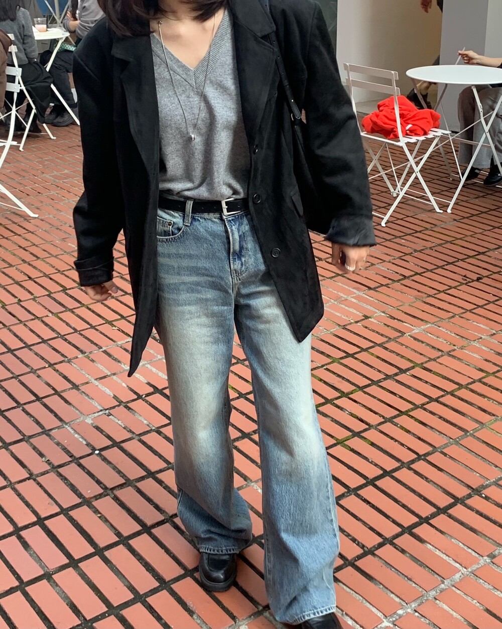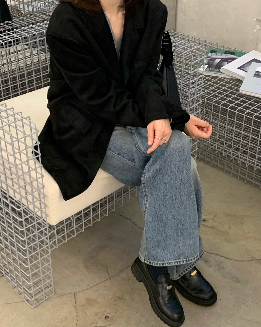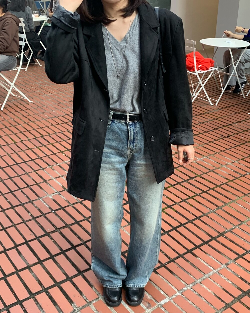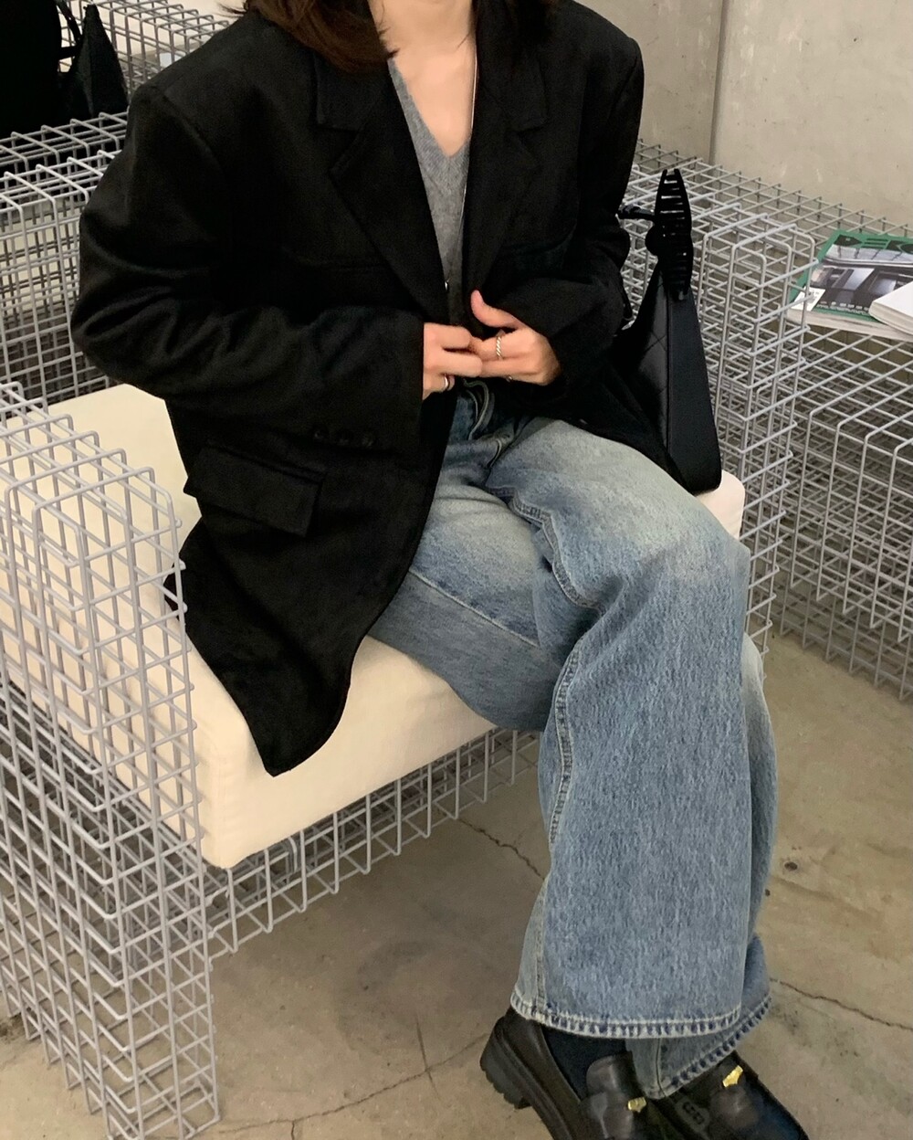 쭈욱 떨어지는 롱한 핏 덕분에 다리가 *진짜* 길어보이게 연출되구요