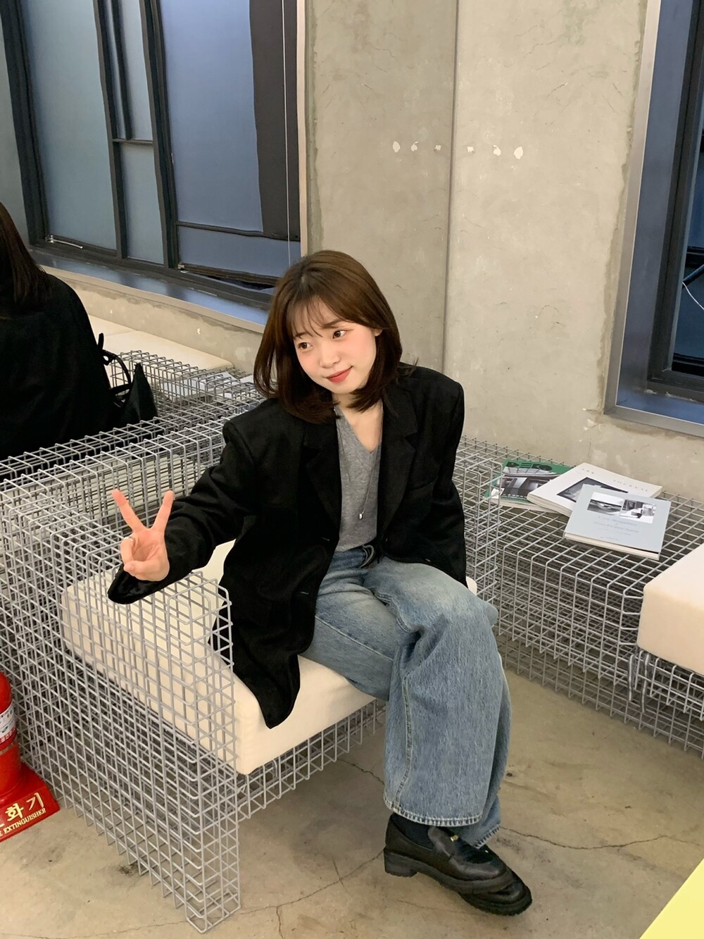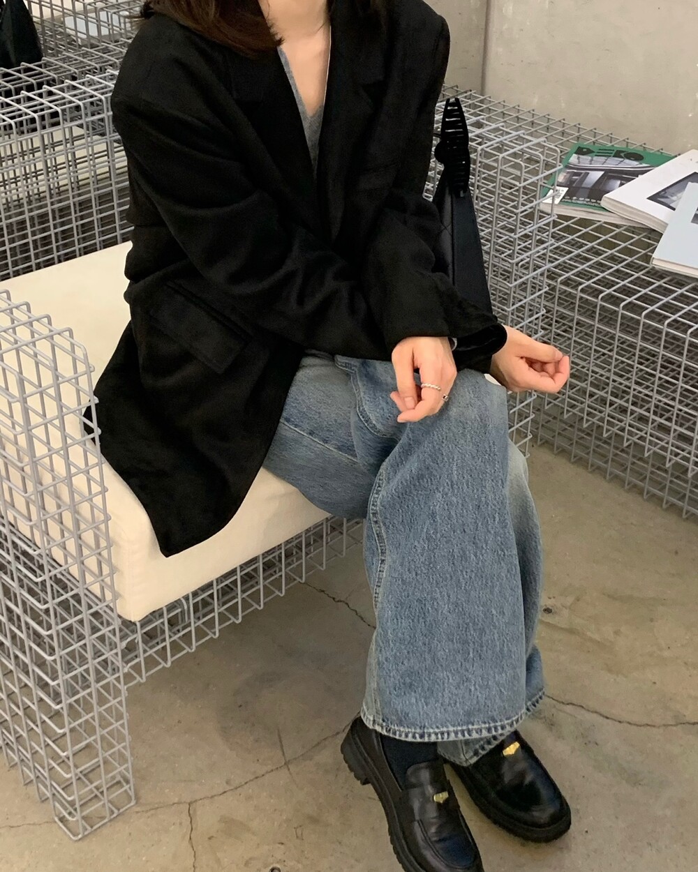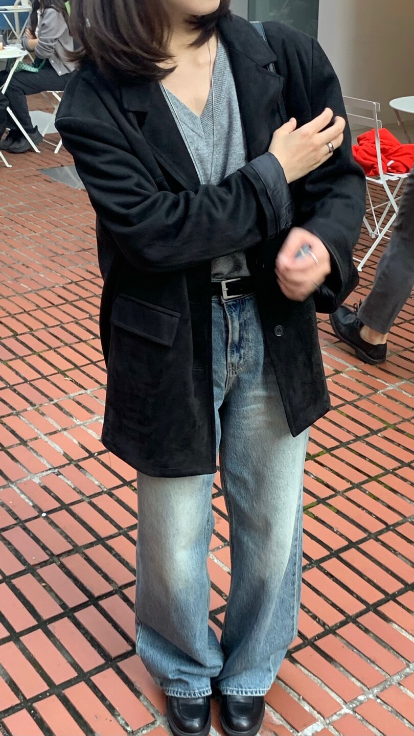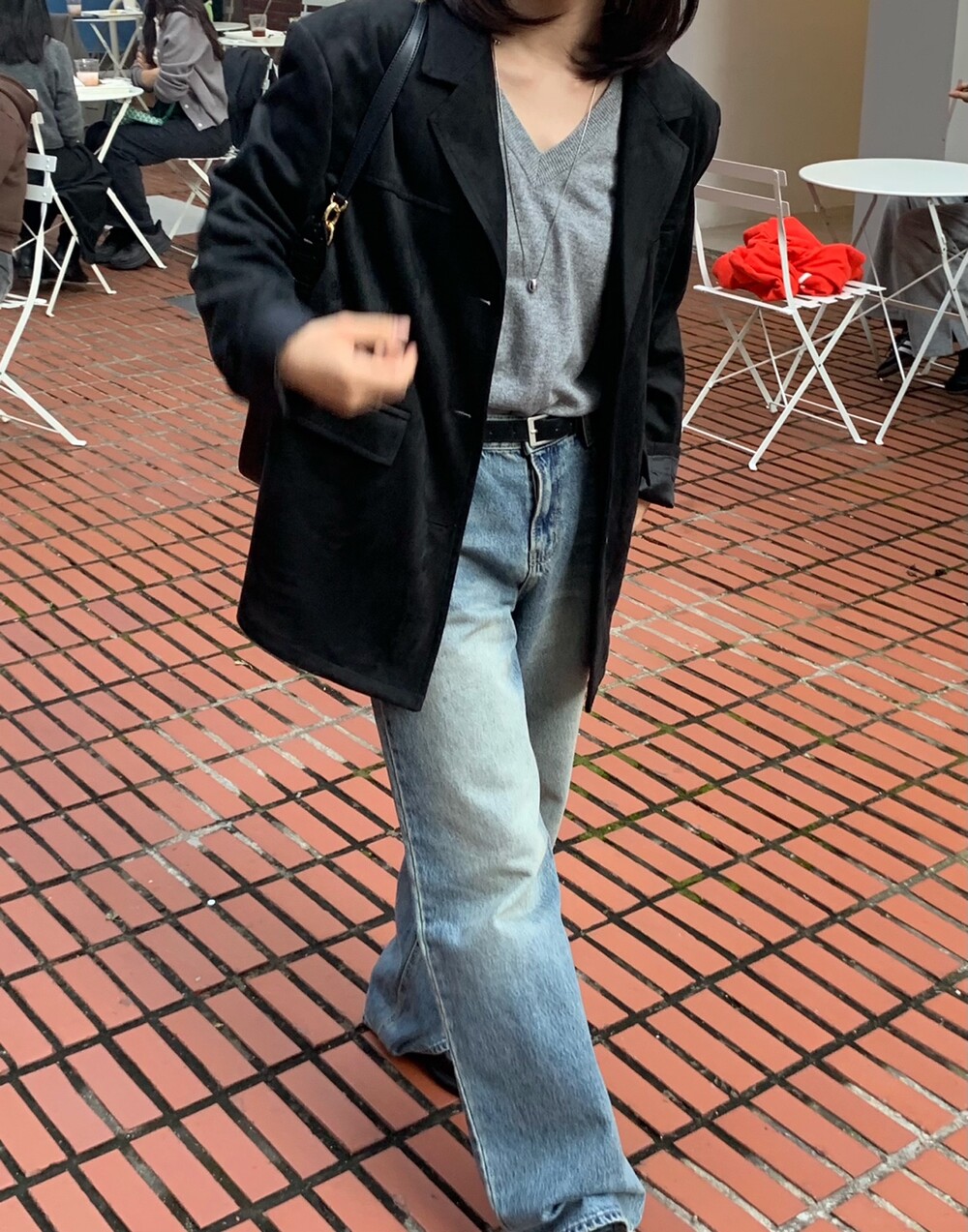 쭈욱 떨어지는 롱한 핏 덕분에 다리가 *진짜* 길어보이게 연출되구요