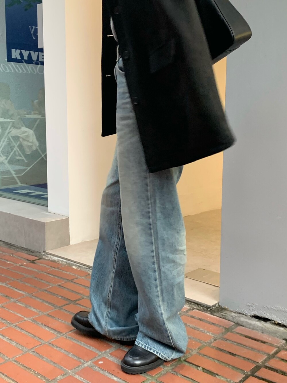 오묘하게 빈티지한 색감이 매력적인, 롱롱한 데님 팬츠에요!